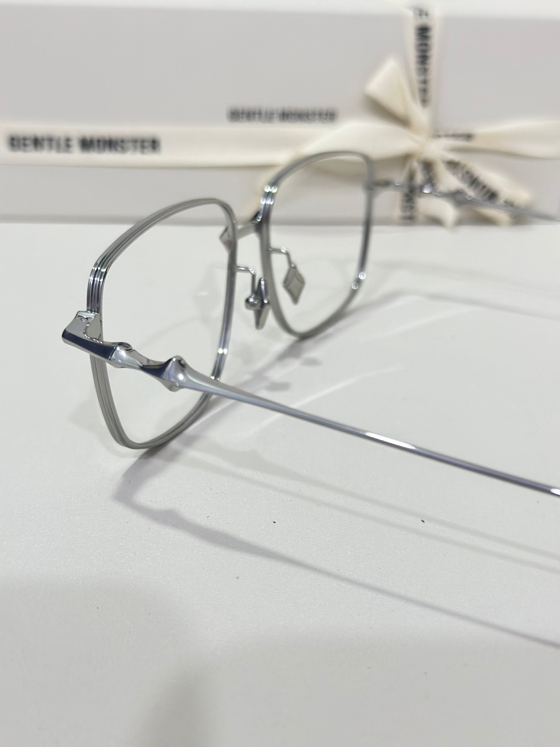Discover the Academya 02 glasses from the BOLD Collection, enriched with audacious and daring designs from Gentle Monster. Featuring an oversized square shape in a silver color, this piece is a modern interpretation of a classic design. The titanium temples ensure a light and comfortable fit, while the BOLD symbol on the nose pads and temples showcases the collection's identity. The clear lenses block blue light and 99.9% of UV rays.