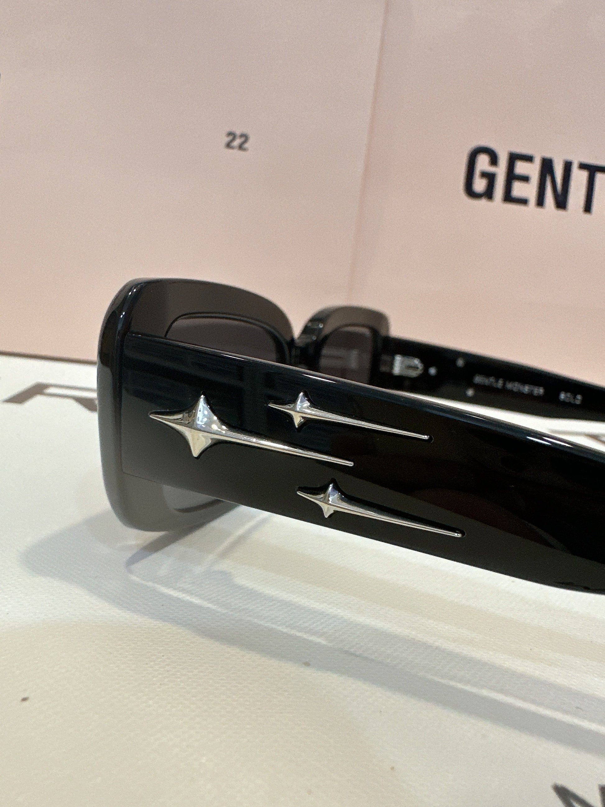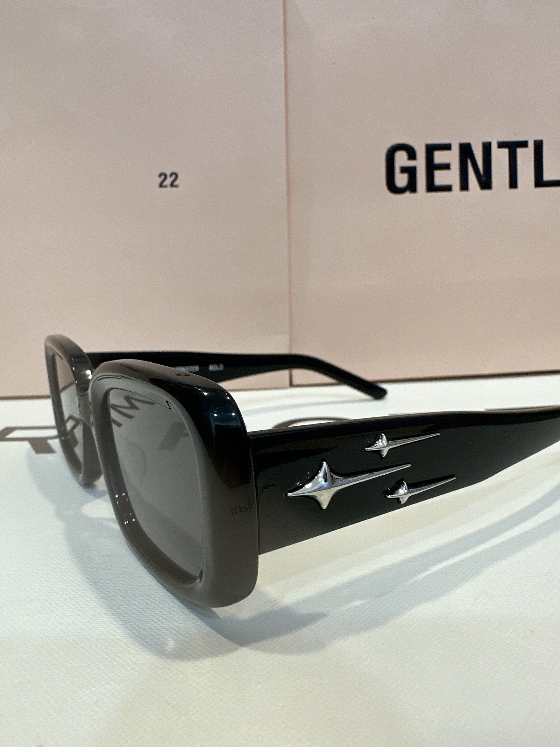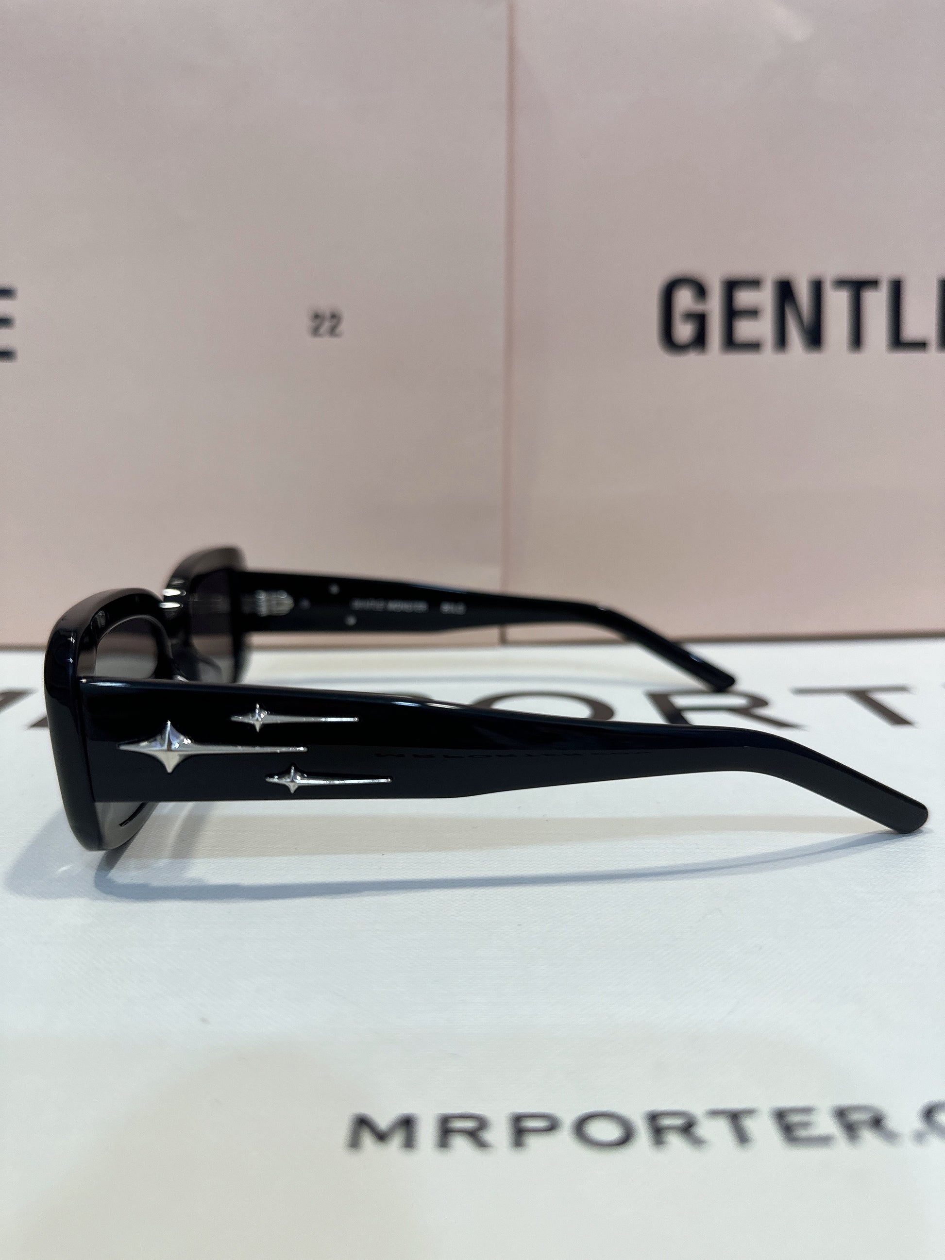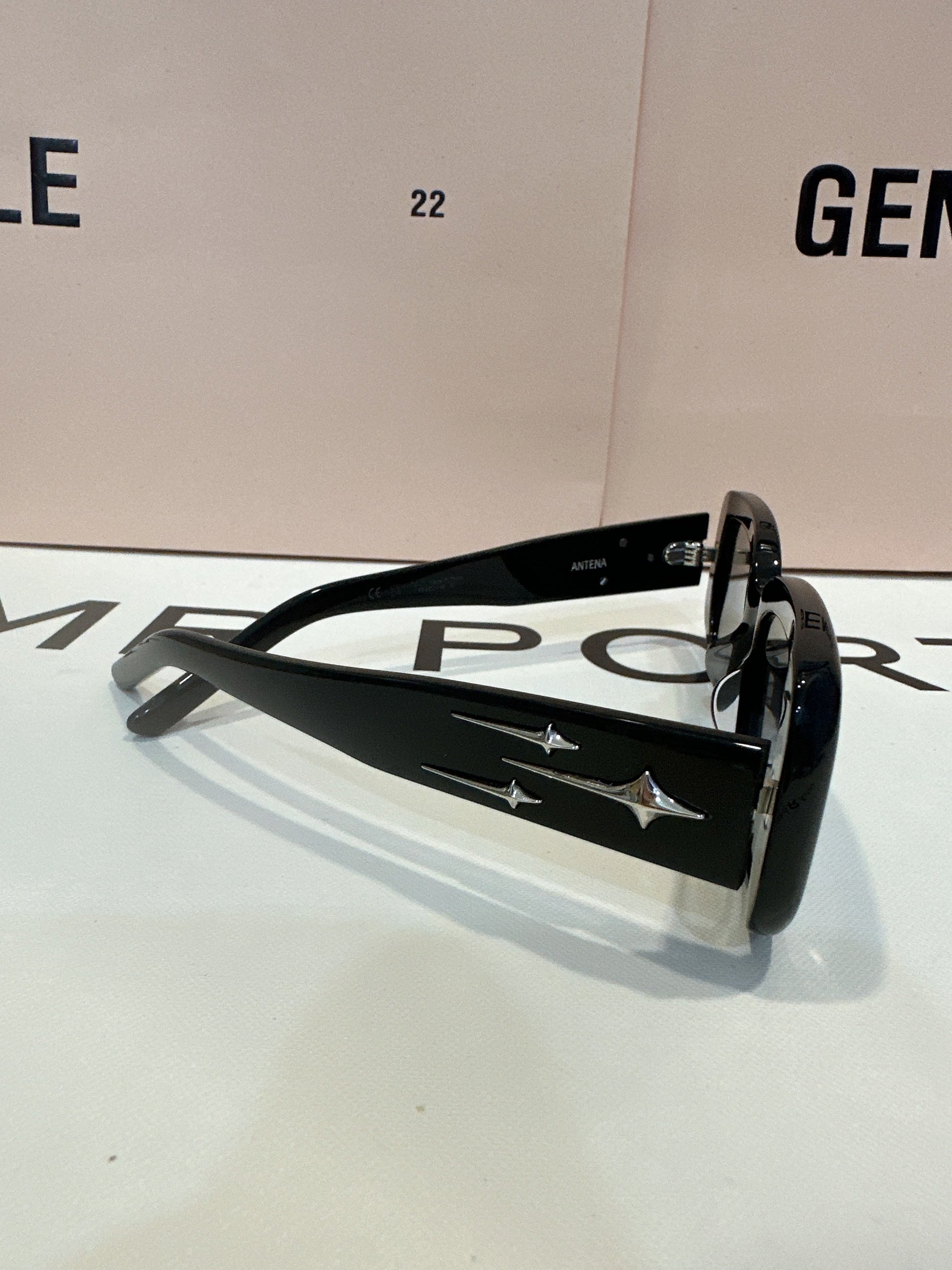 Discover the Antena 01 sunglasses from Gentle Monster's BOLD collection, a collection inspired by the stars in the galaxy. Featuring a simple black frame and a contemporary rectangular silhouette, this model embodies the sophistication of the BOLD collection. The signature BOLD symbol on the temples is a delicate, eye-catching detail that showcases Gentle Monster’s unique aesthetic. The bold temples and flat tips enhance the refined silhouette of this piece.