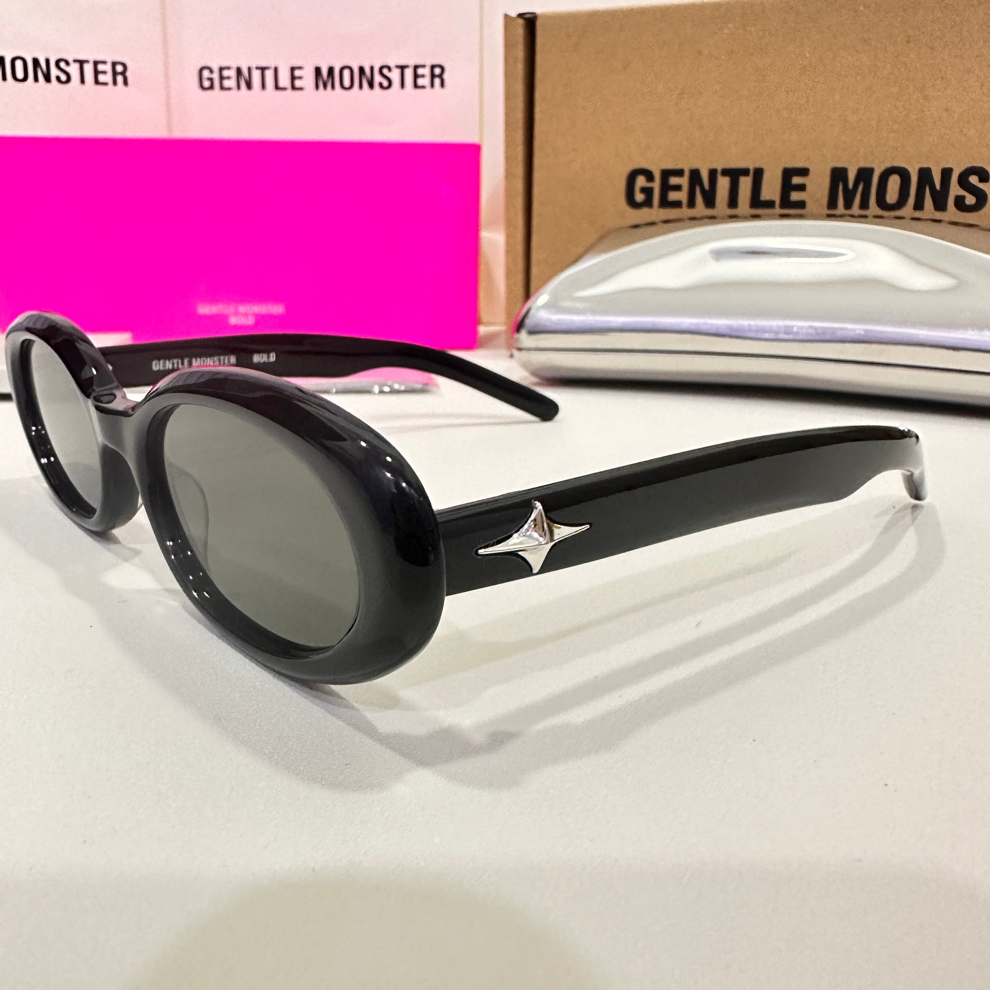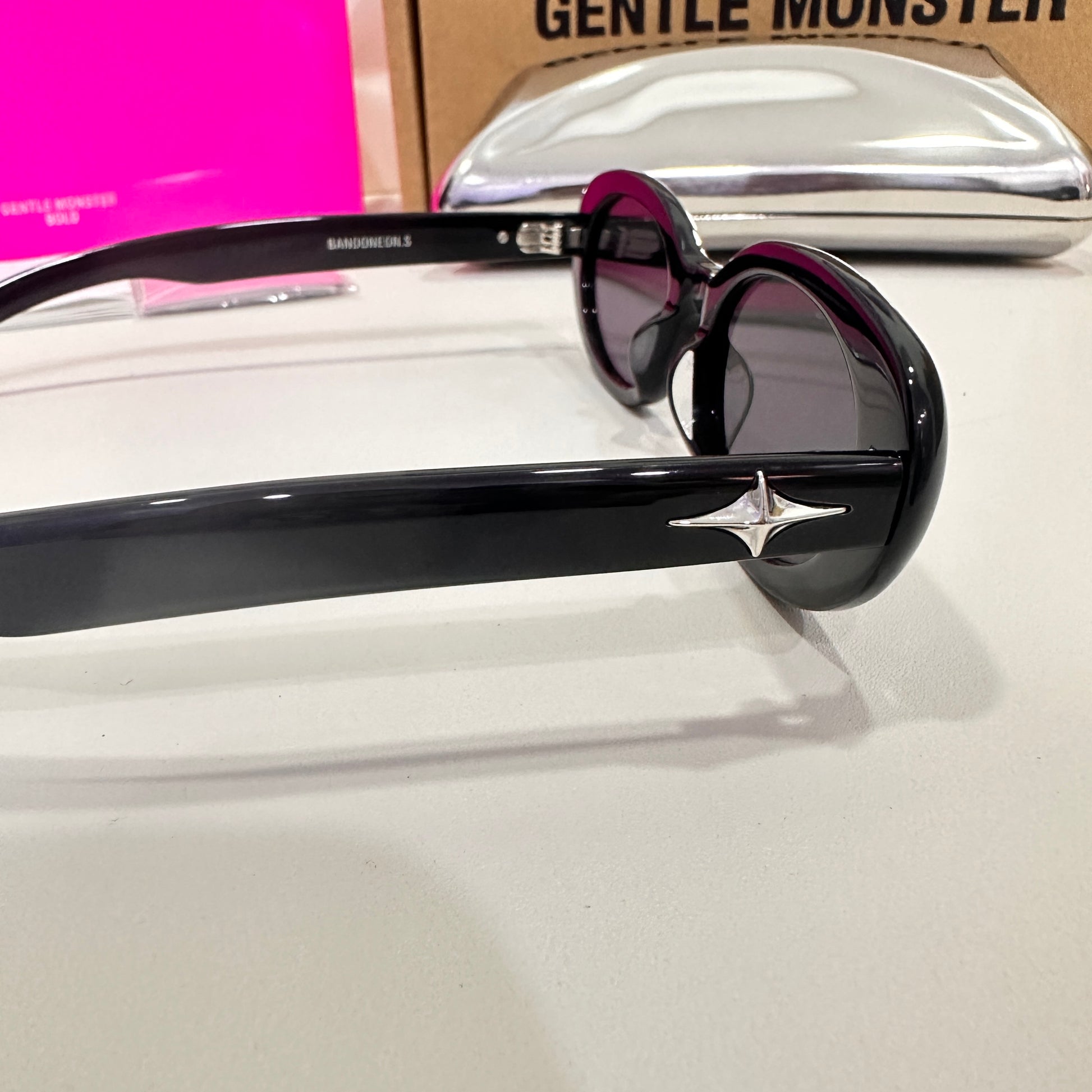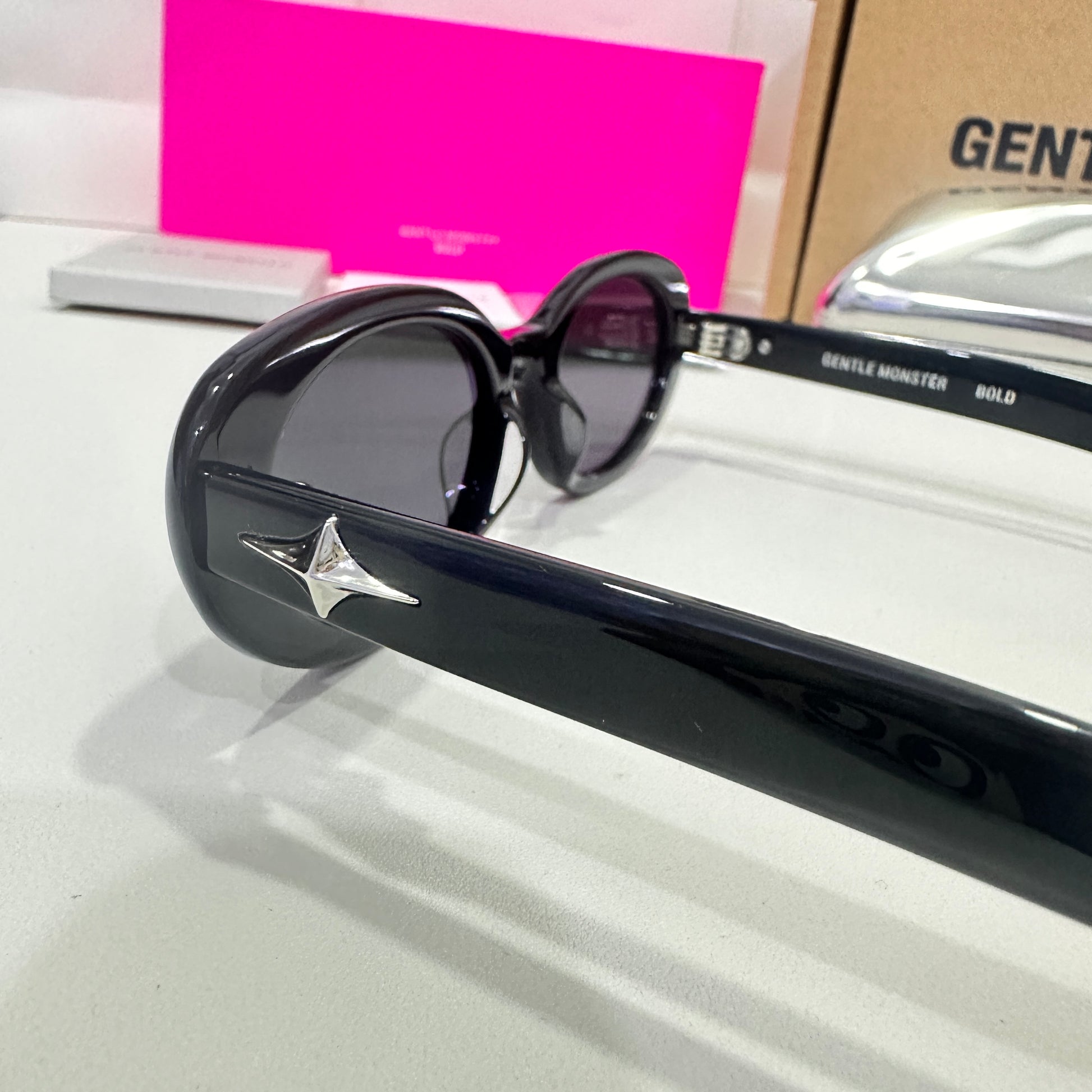 Discover the Bandoneon.S 01 sunglasses from Gentle Monster's BOLD collection, a collection inspired by the stars in the galaxy. Featuring a simple black frame and a modern, voluminous oval silhouette, this model embodies the uniqueness of the BOLD collection. The signature BOLD symbol on the temples is a delicate, eye-catching detail that showcases Gentle Monster’s unique aesthetic. The bold temples and flat tips enhance the refined silhouette of this piece.