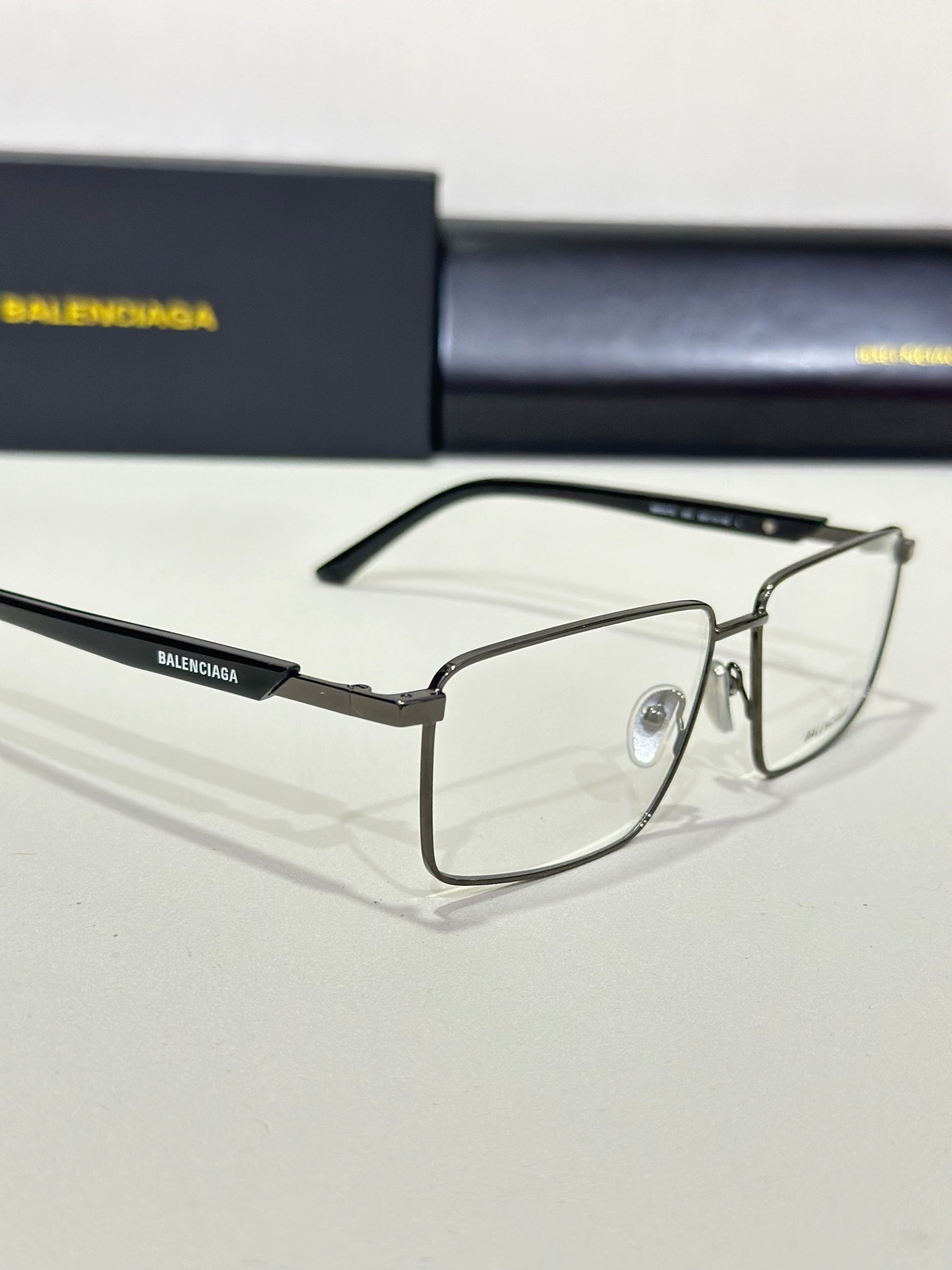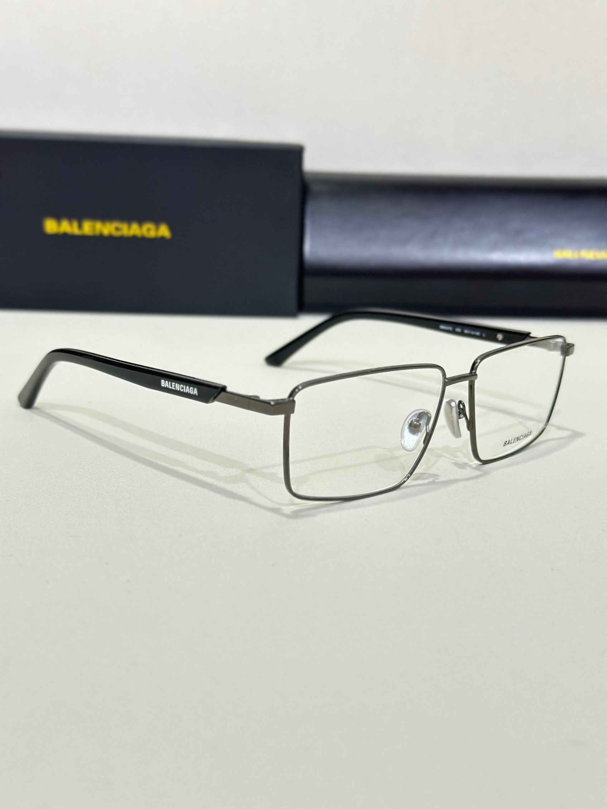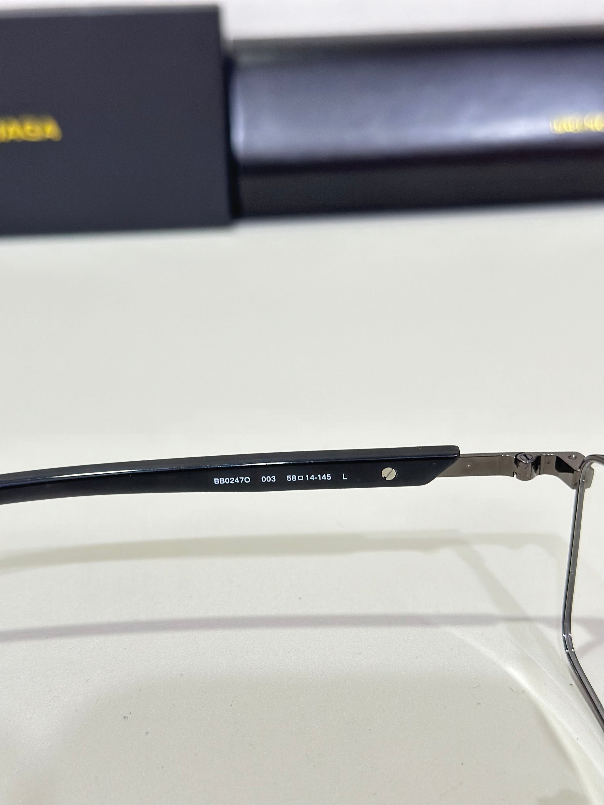 Balenciaga Everyday optical collection model BB0247O 003 featuring shiny gun metal frame and black temple.