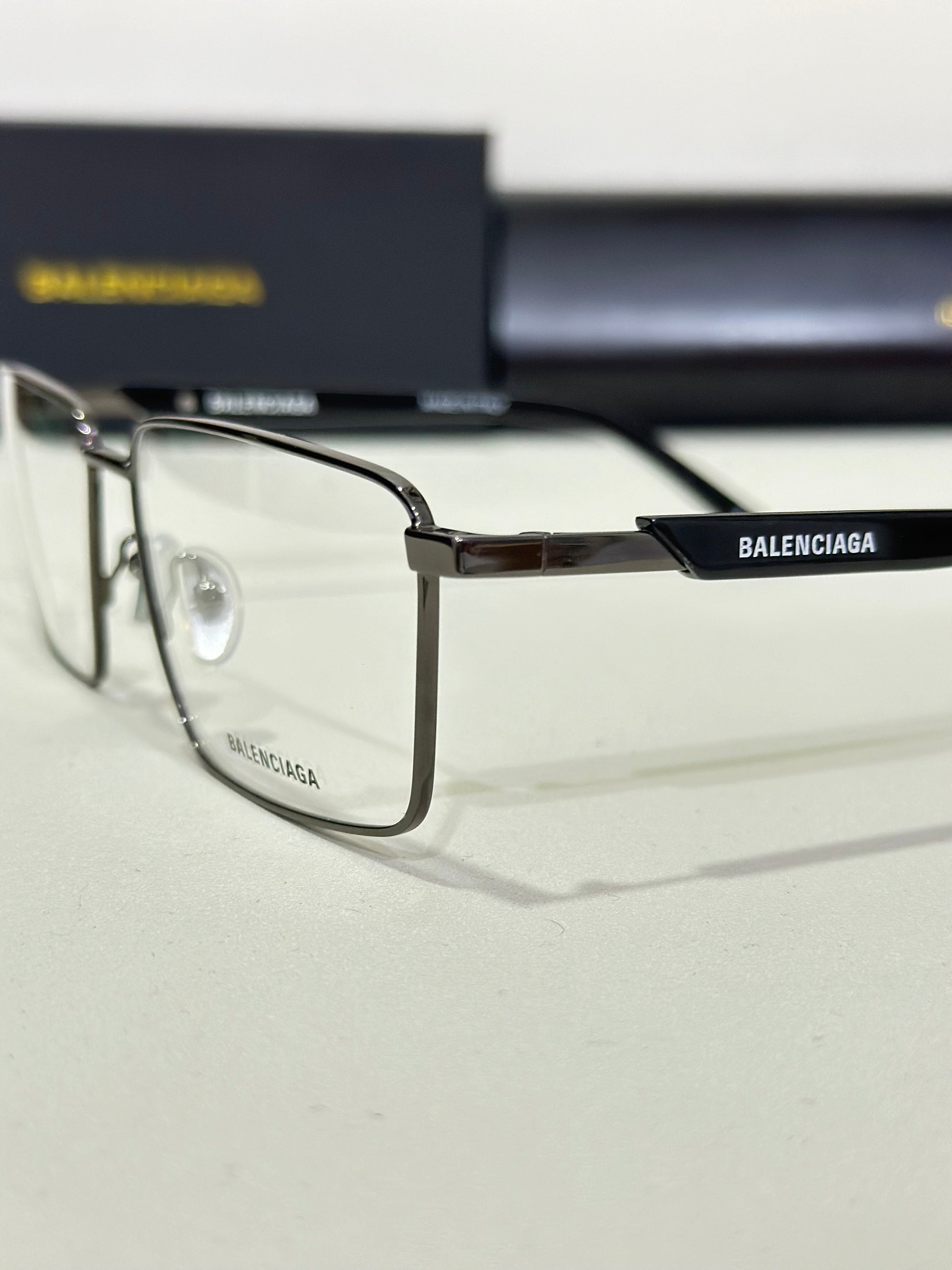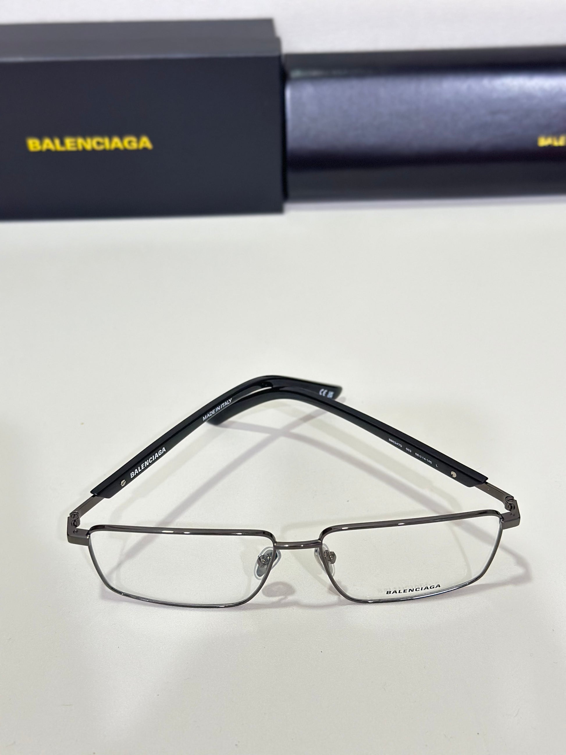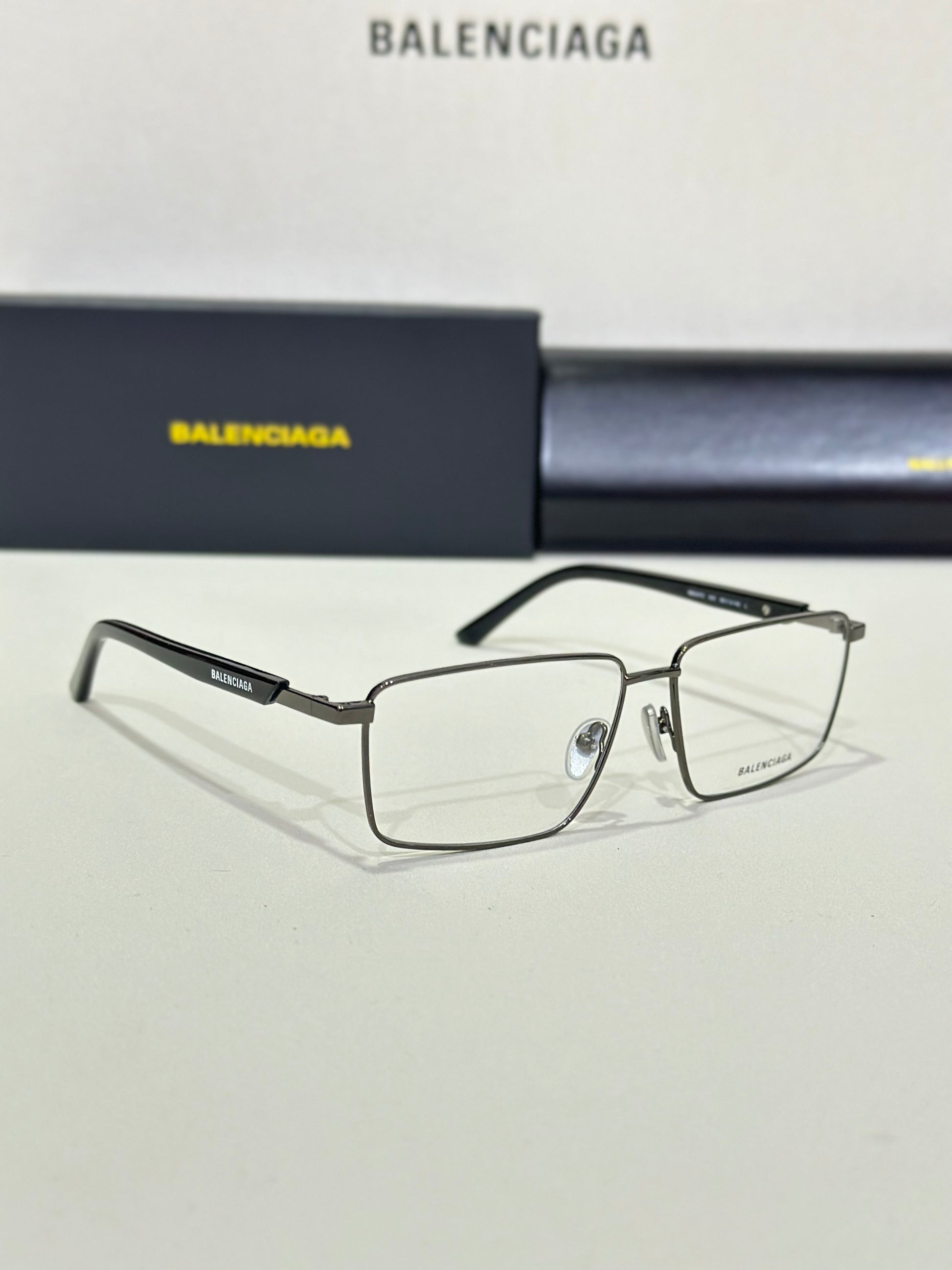 Balenciaga Everyday optical collection model BB0247O 003 featuring shiny gun metal frame and black temple.