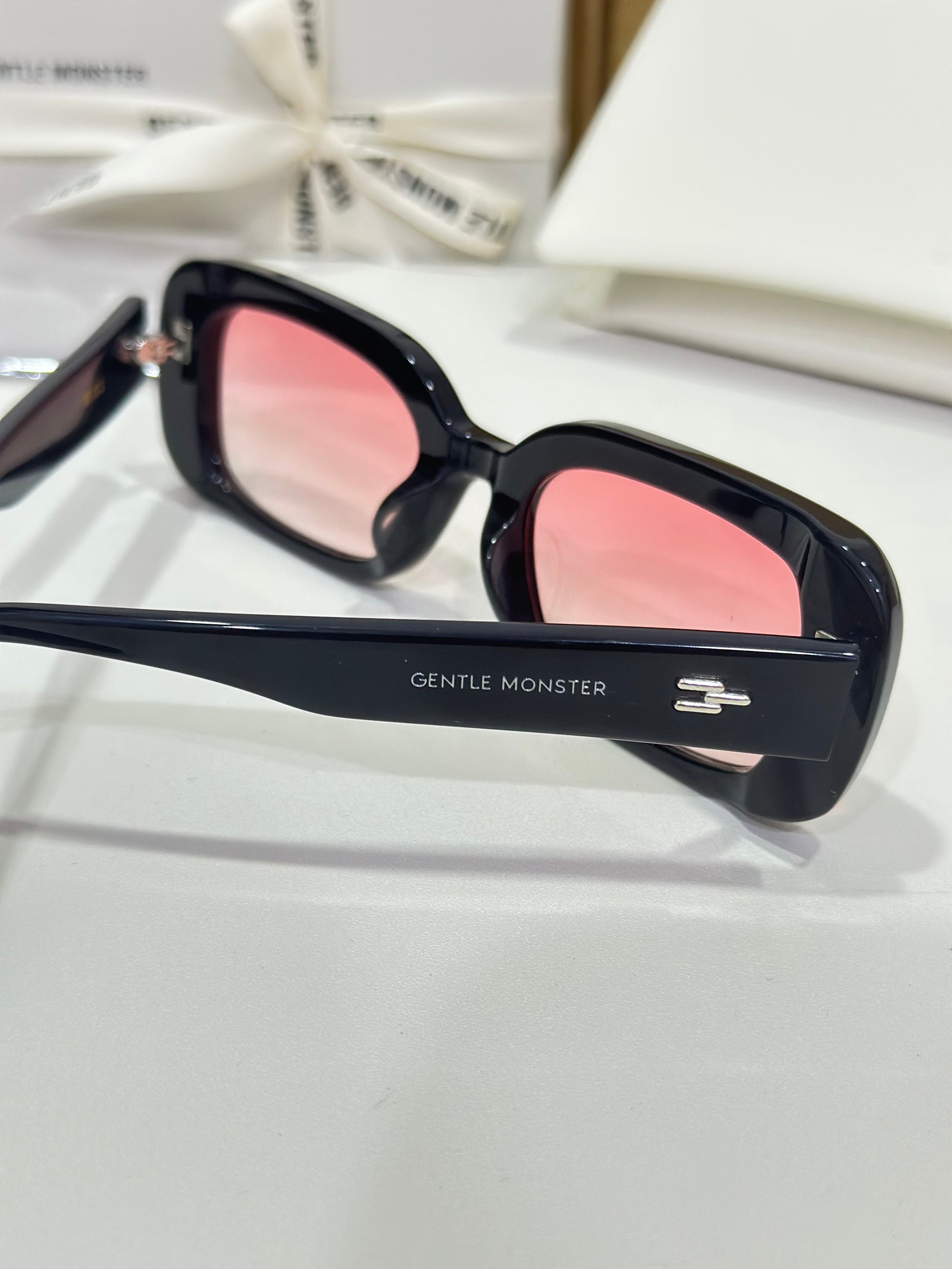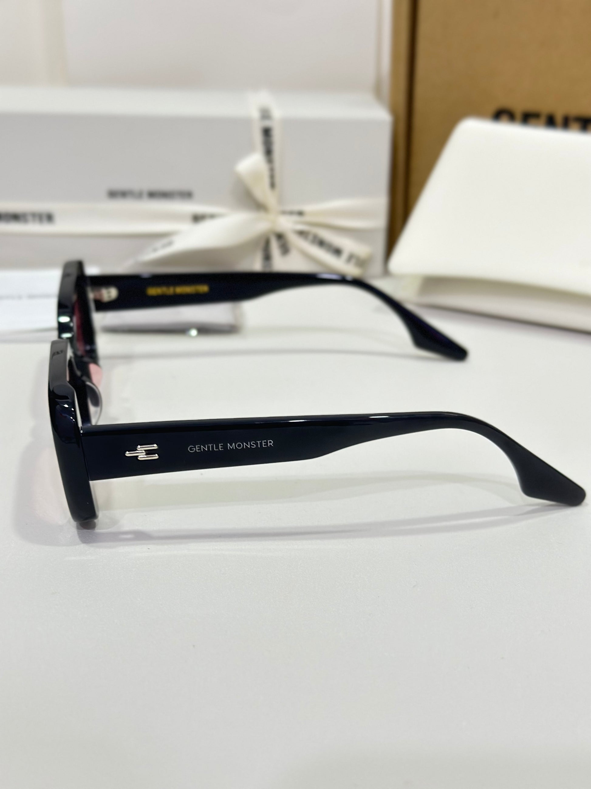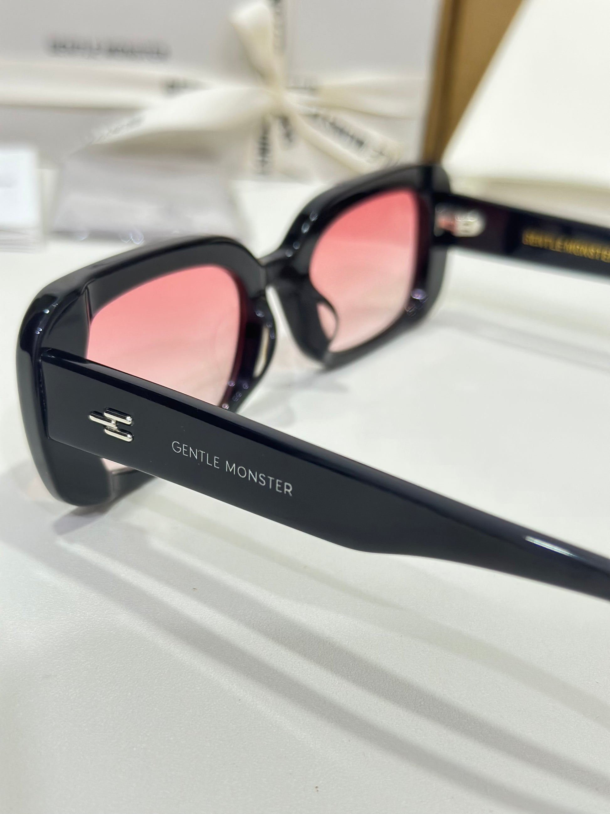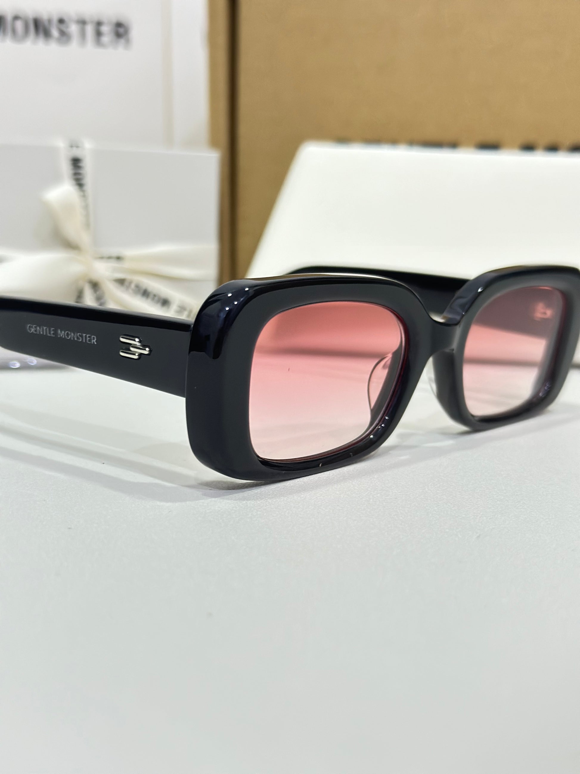 Bliss 01(RG) is a rectangular black acetate frame. The wide and voluminous front is balanced by the temples featuring new metal details, and fitted with 99.9% UV protected red gradient lenses.
