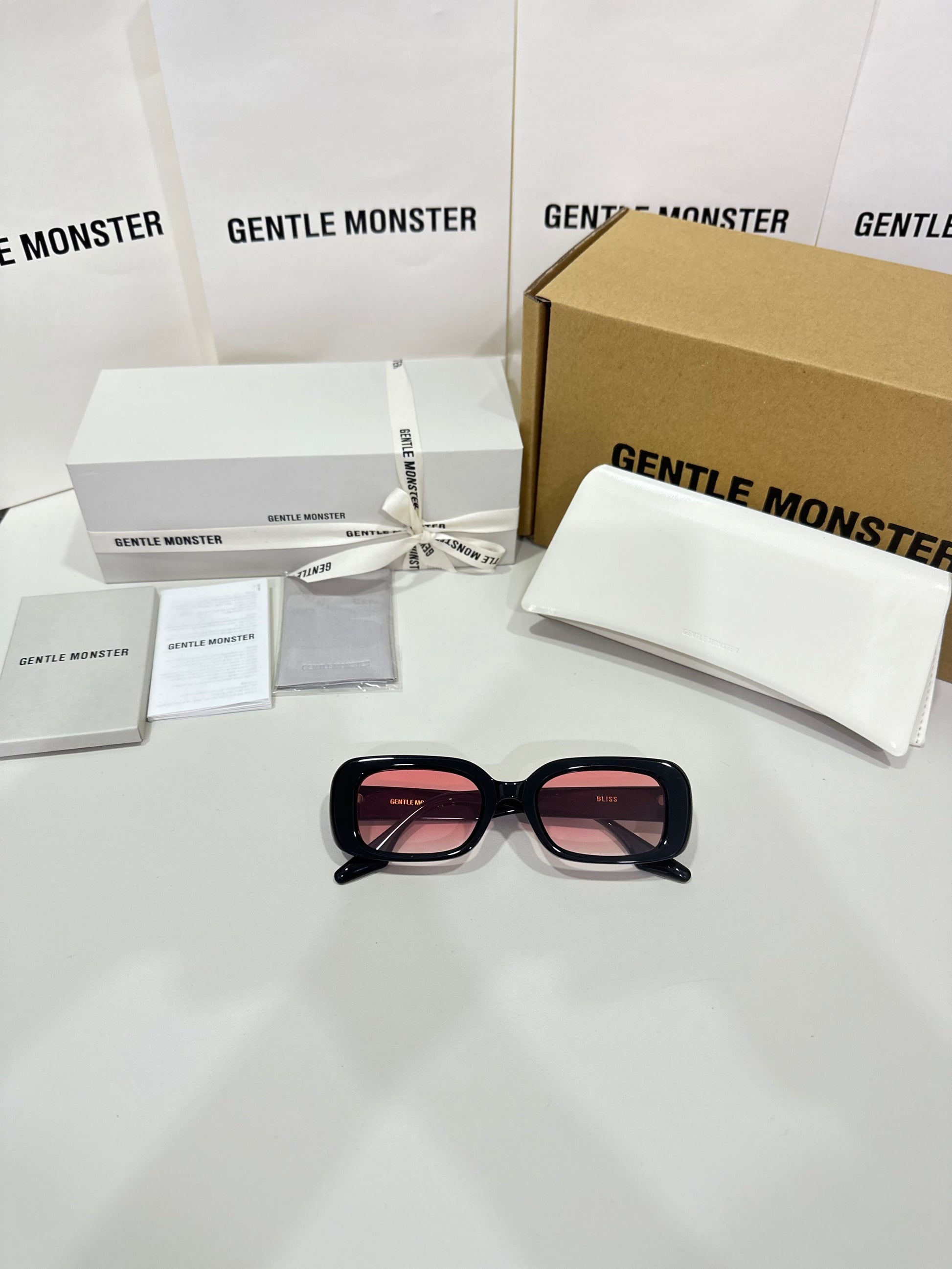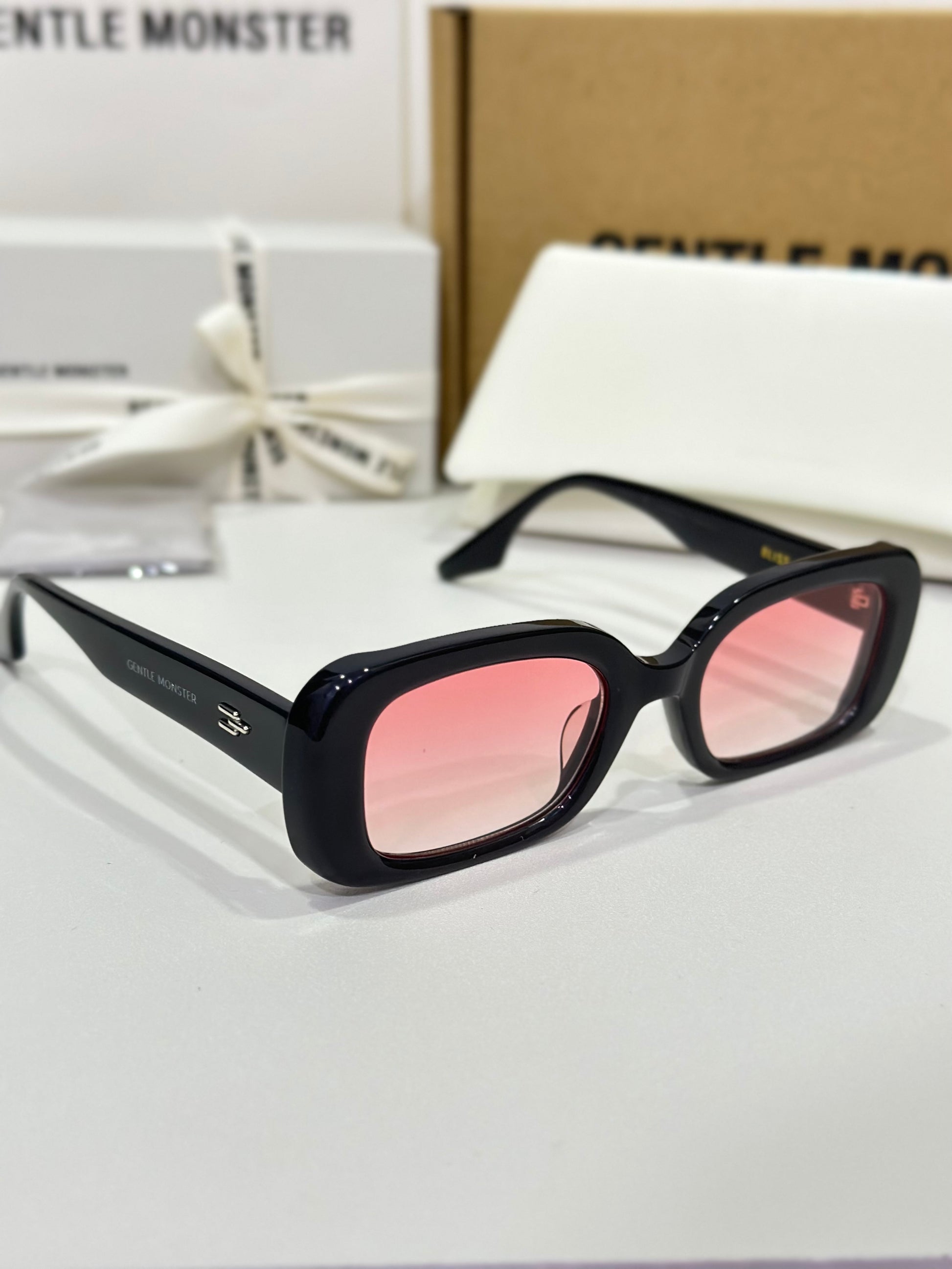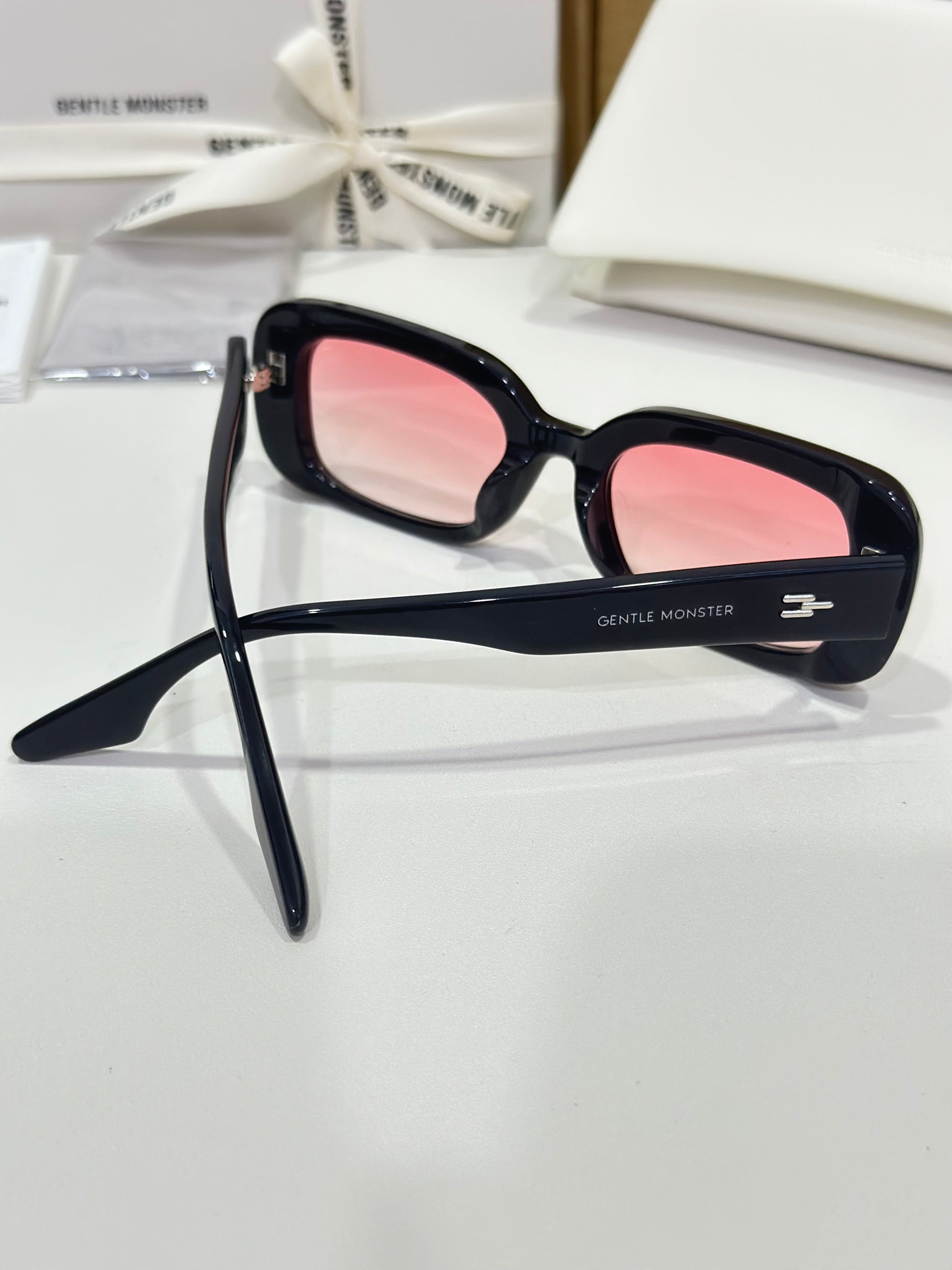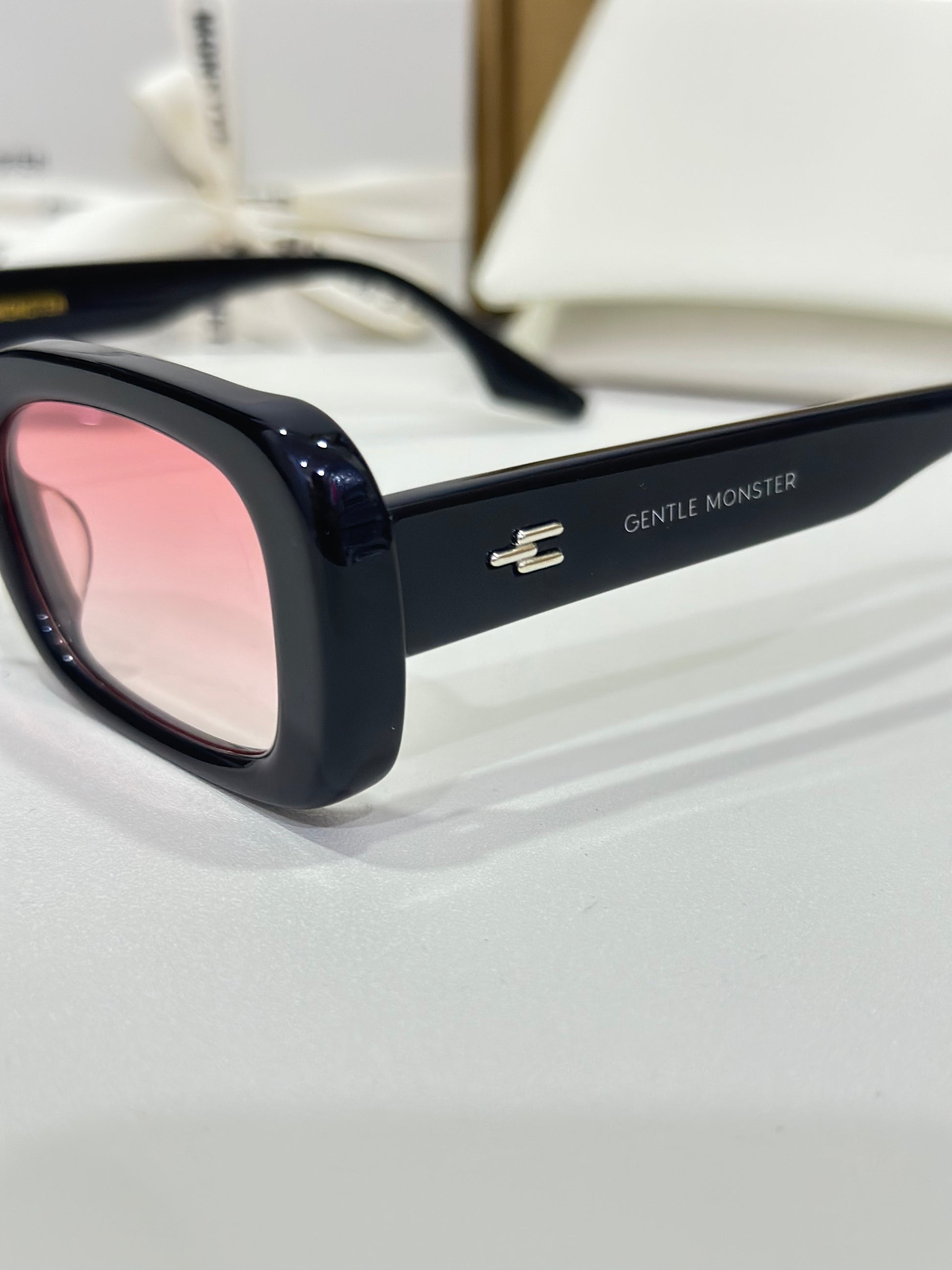 Bliss 01(RG) is a rectangular black acetate frame. The wide and voluminous front is balanced by the temples featuring new metal details, and fitted with 99.9% UV protected red gradient lenses.
