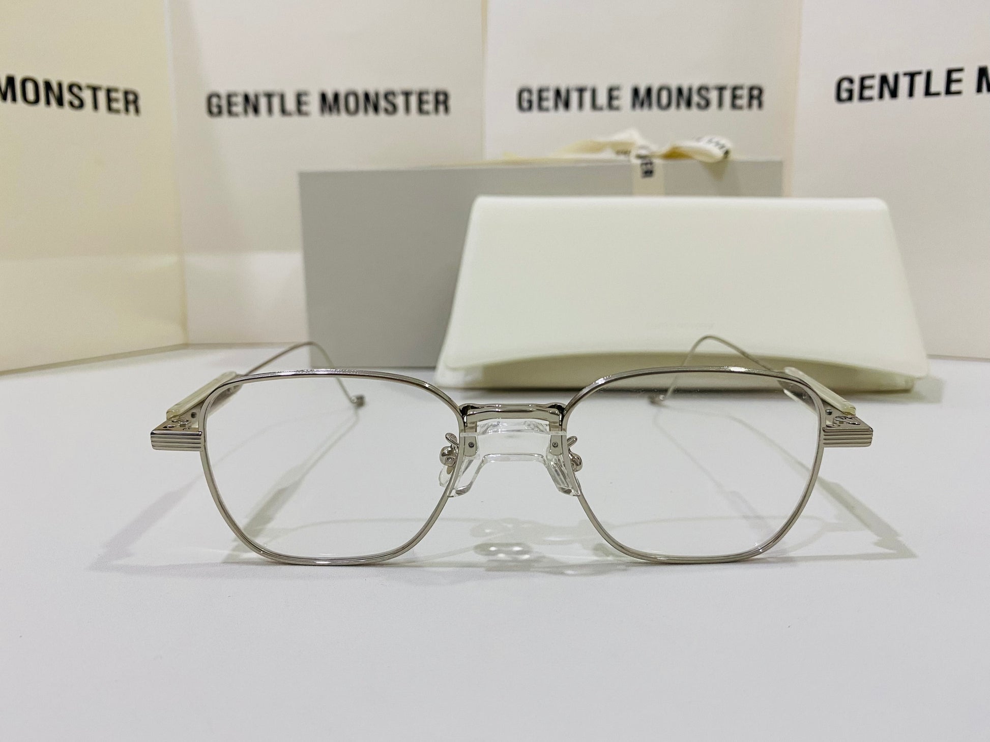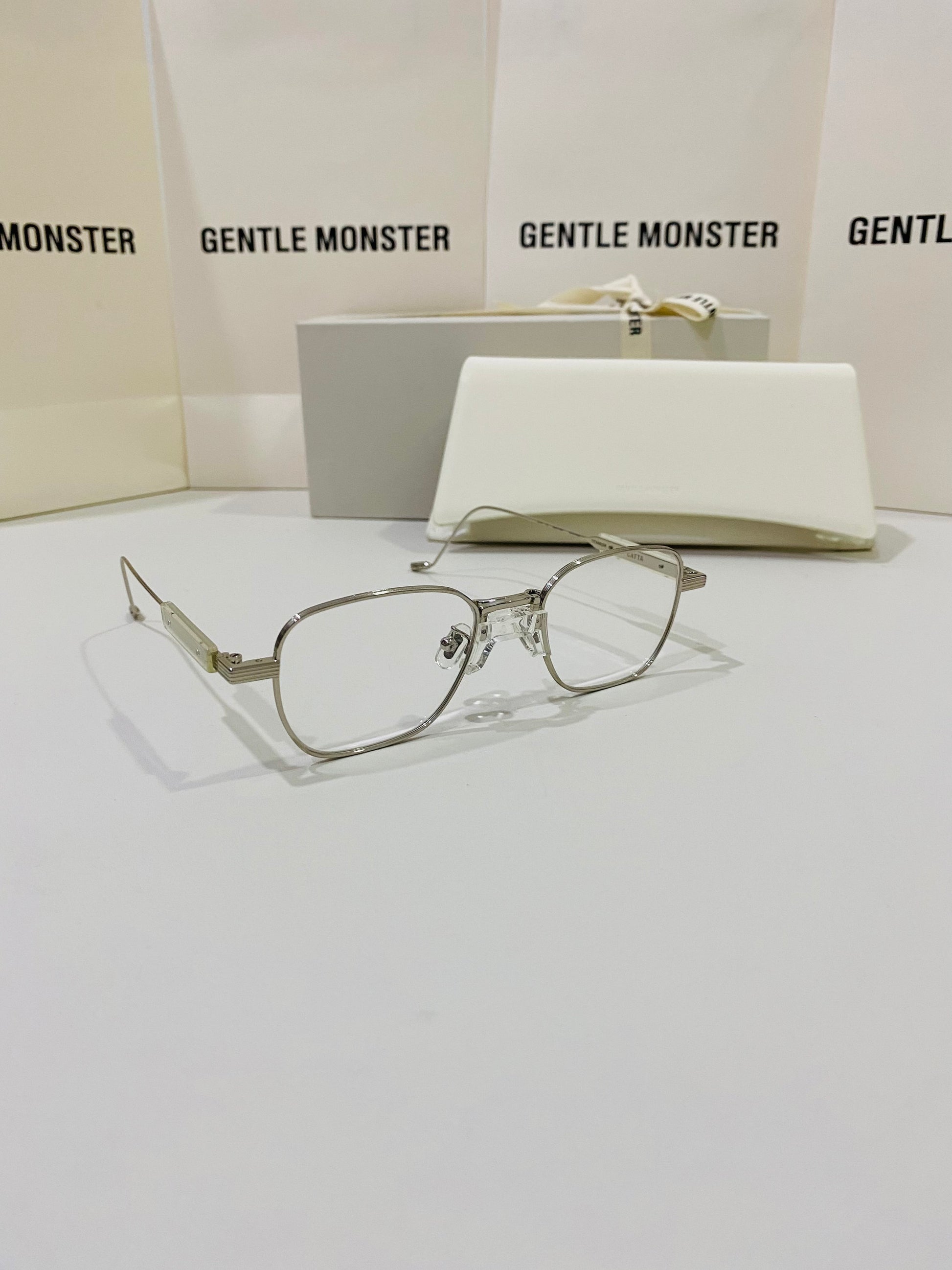 Catta C2 is a silver square frame with a yellow acetate accent on the bridge. Apart from the stainless-steel screws, these glasses feature fully titanium temples and frame front, making it lightweight and compact. This frame is also highlighted by a grooved metal detailing on the rims, endpieces, as well as the temples, and also fitted with 99.9% UV protection and blue light filtering clear lenses.