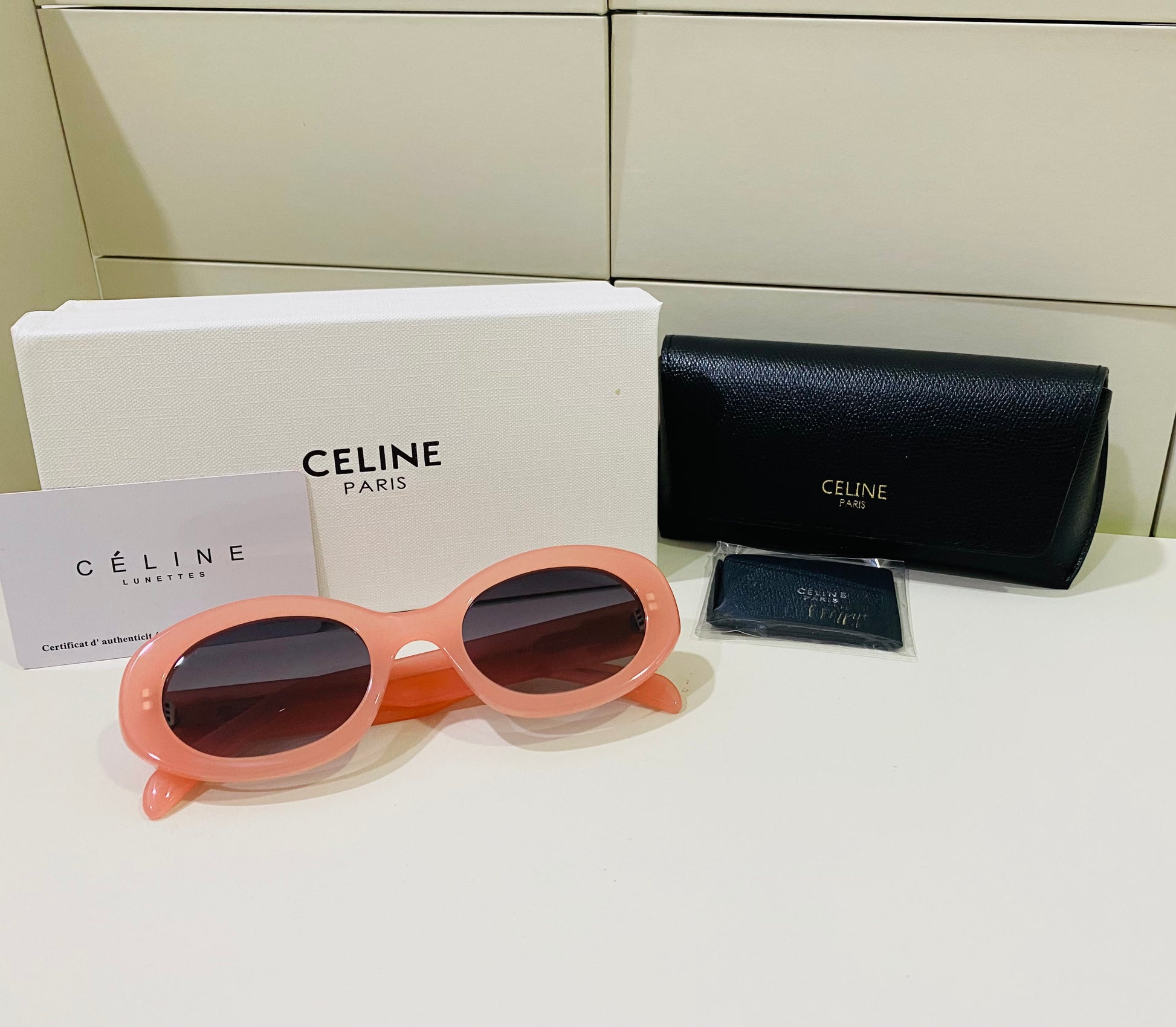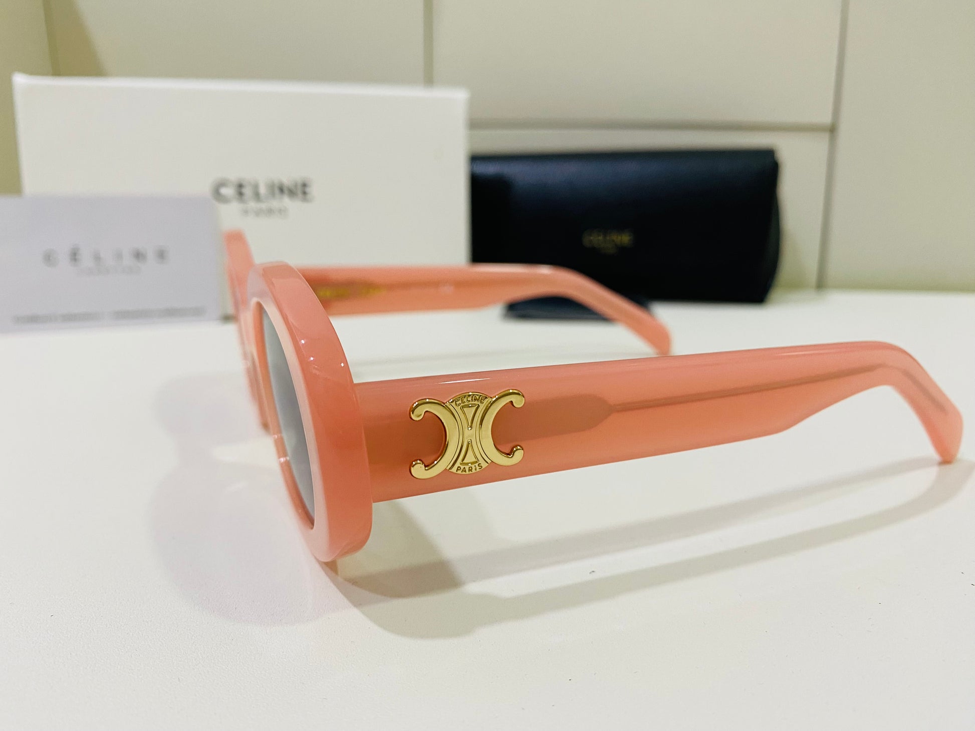 DESCRIPTION : Temple length 5.7 in, lens width 2 in, nose bridge length 0.9 in, acetate frame, oval frame, smoke lenses, universal fit, protects from uva and uvb, triomphe signature on temples, reference : 4s194cplb.19bv.