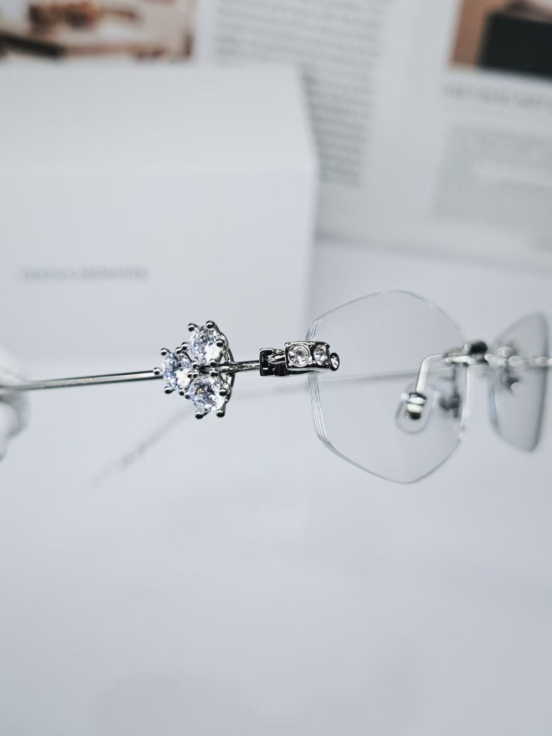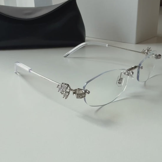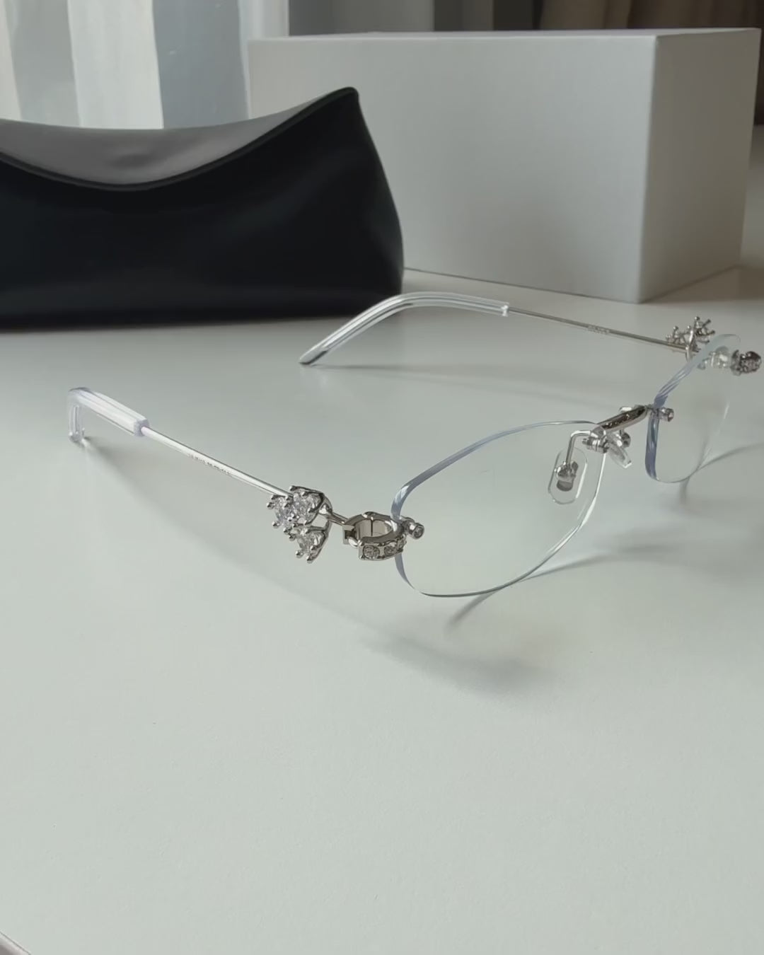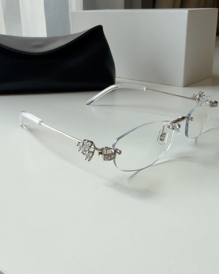 Oval Sunglasses in Silver Metal, Reminiscent of Precious Jewelry