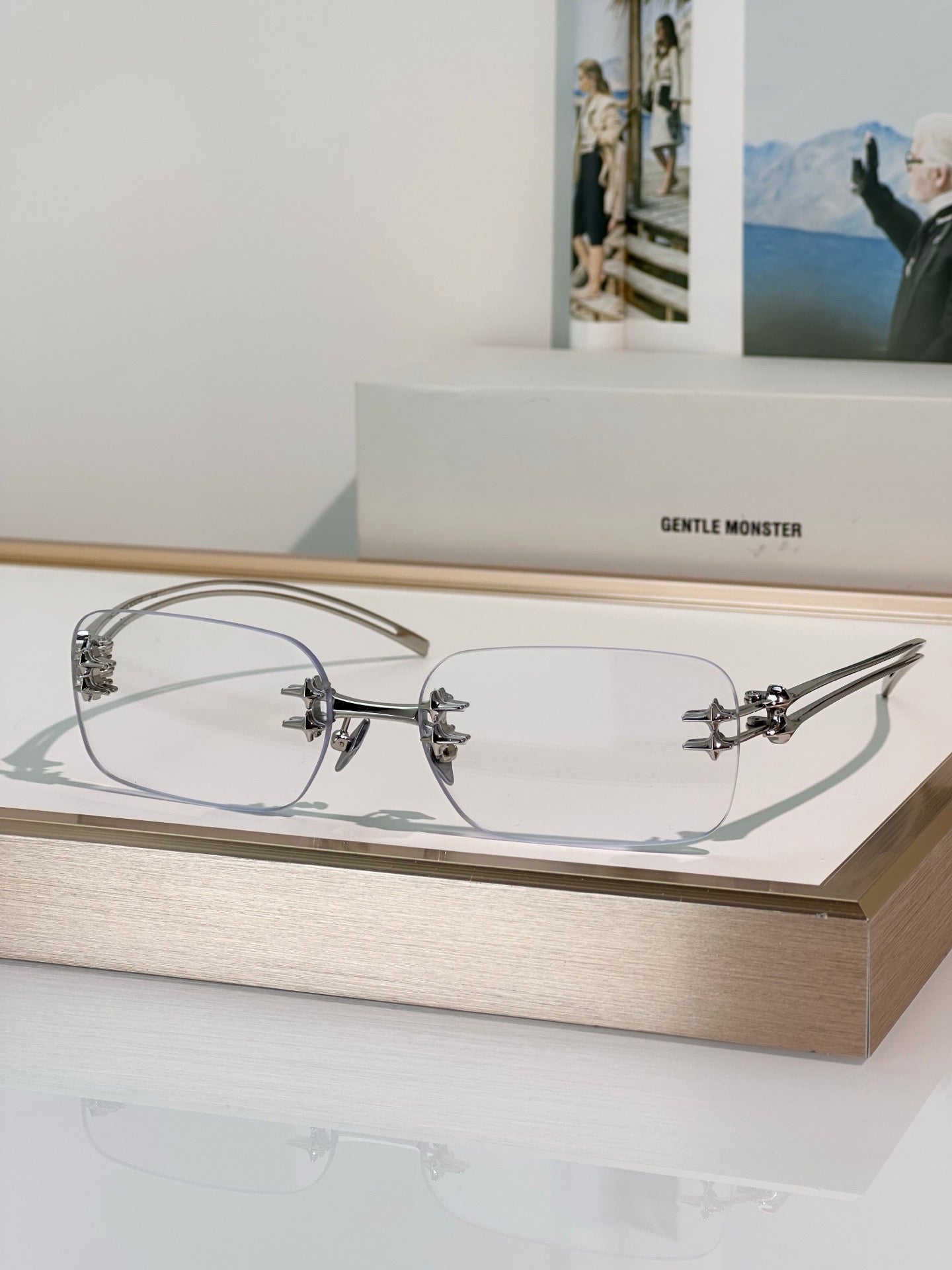 Square Sunglasses in Glossy Silver Metal