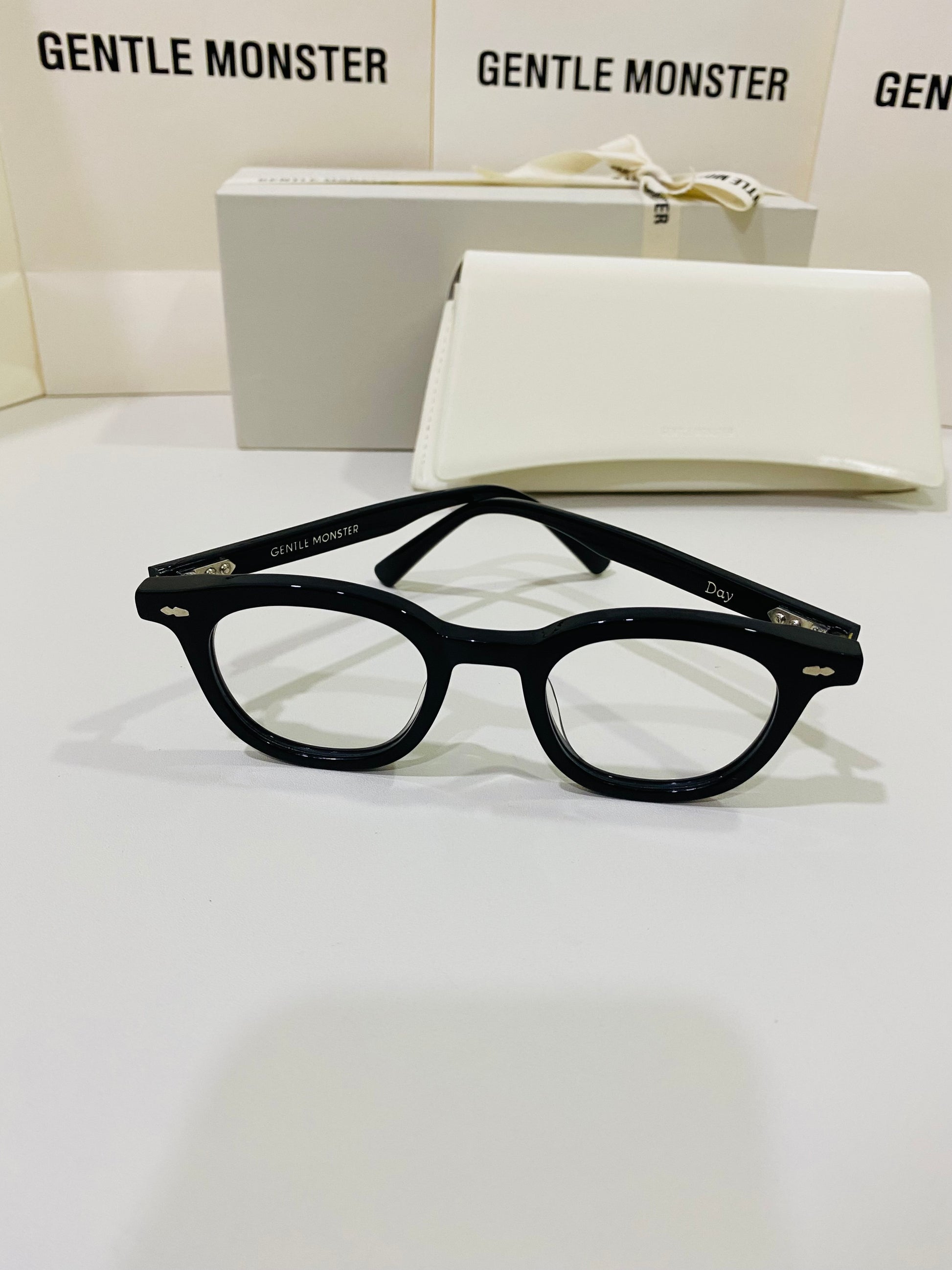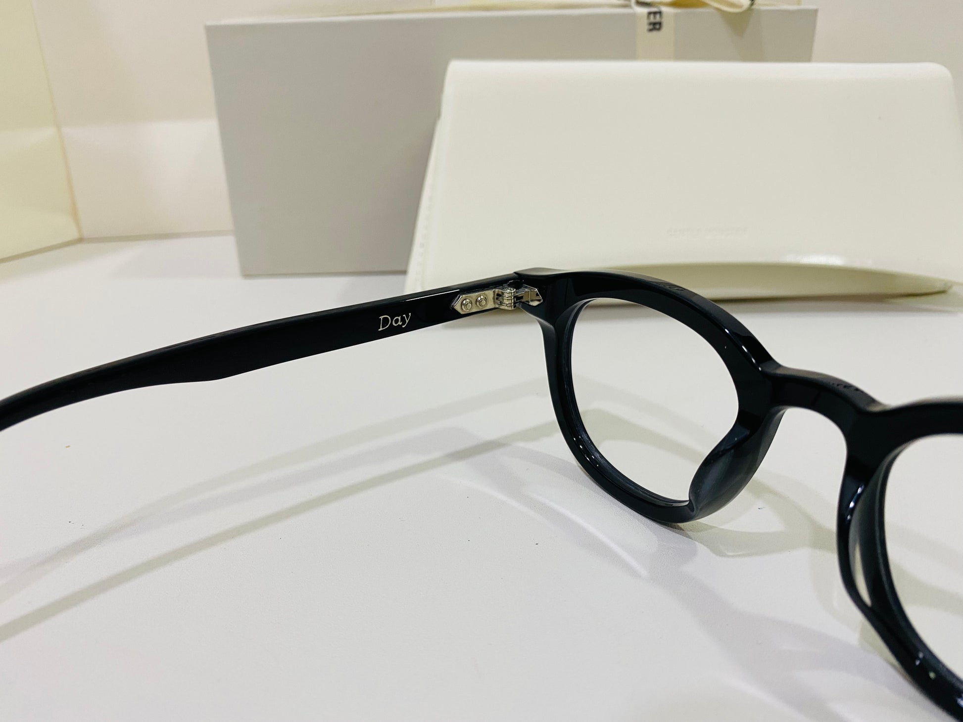Day 01(OG) features a square acetate frame in black. With 99.9% UV protected wine-colored lenses, this classic design is accented with arrow shaped studs at each corner, complemented with temples engraved with Gentle Monster.