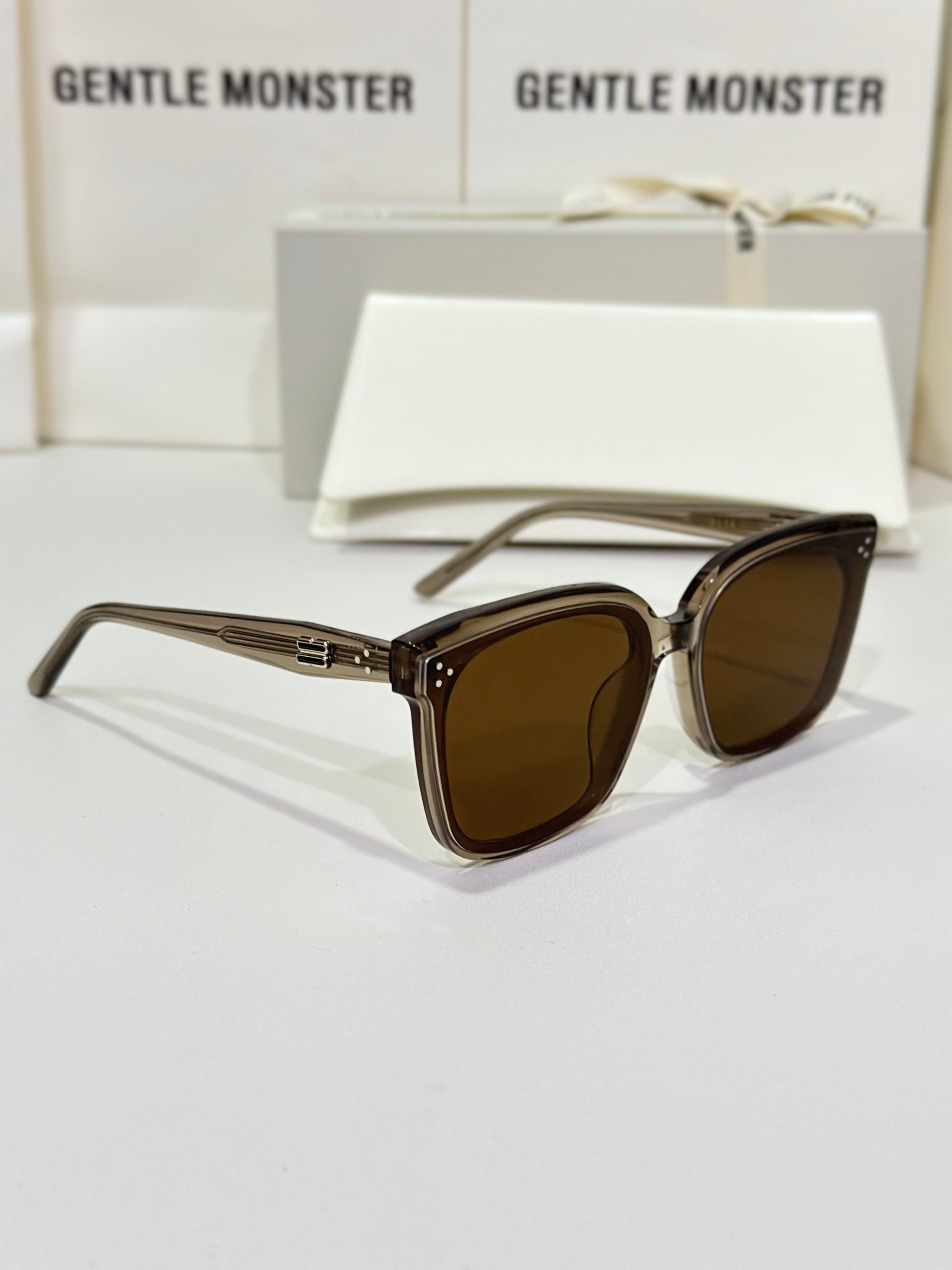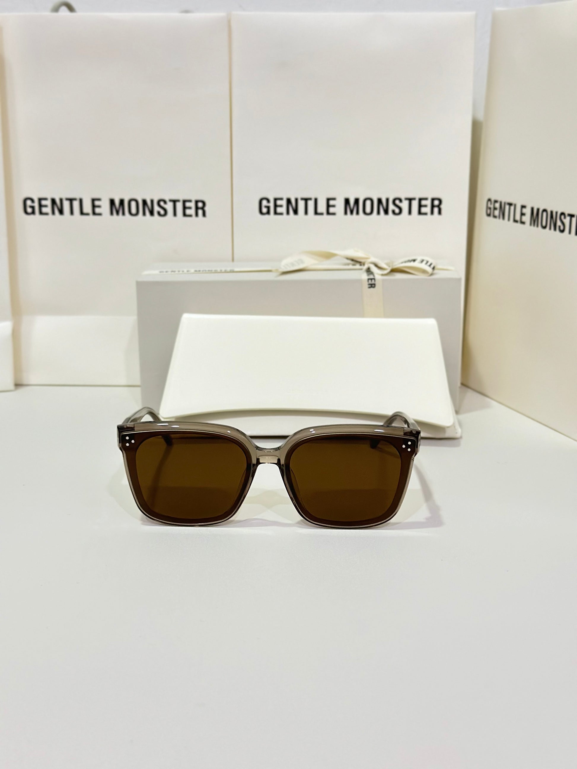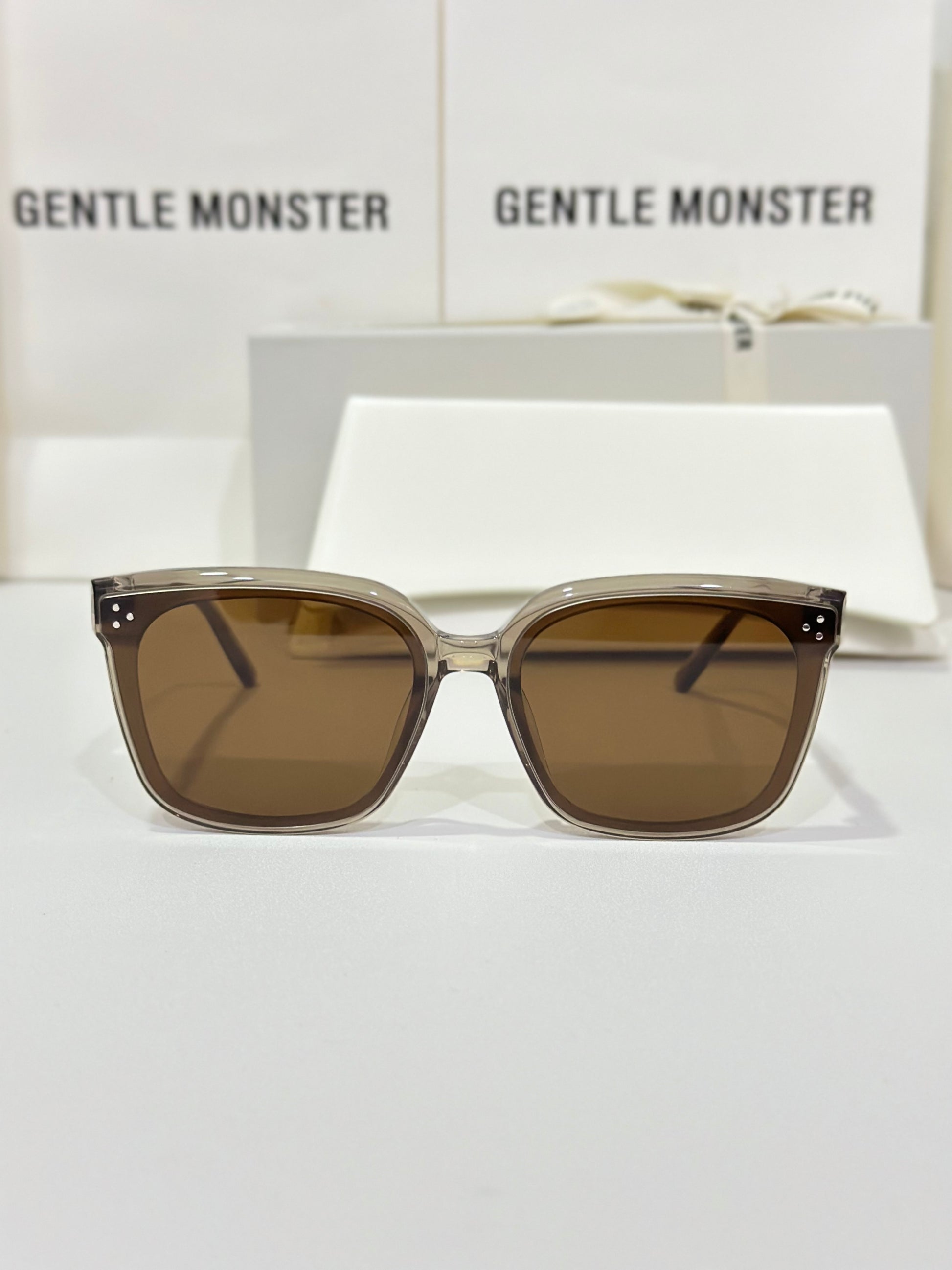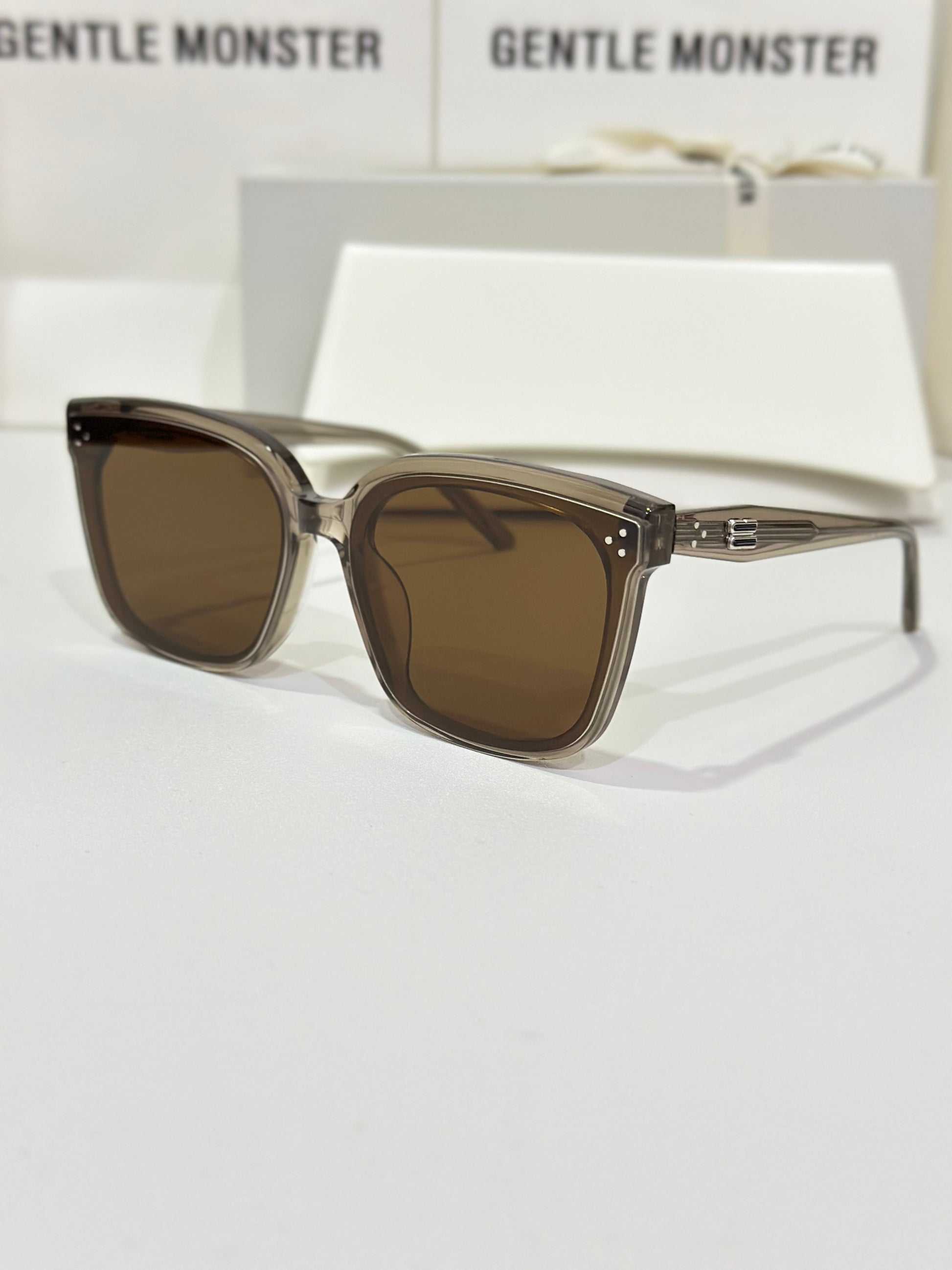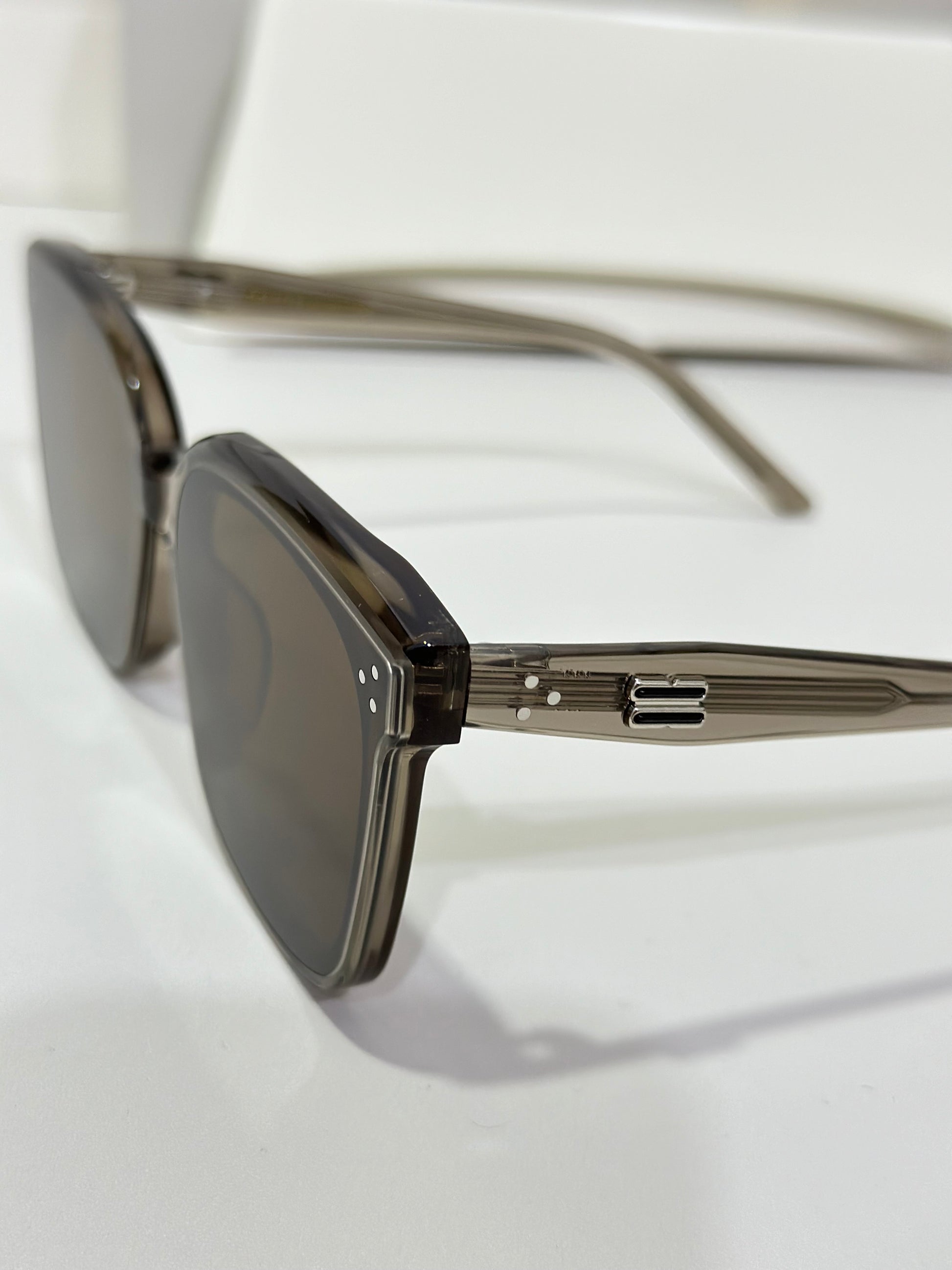 Discover the Dear KC6 sunglasses from Gentle Monster’s 2024 Collection. This piece features a square shape highlighted with straight line details, an alluring khaki frame, and an iconic metal detail on the translucent temples.