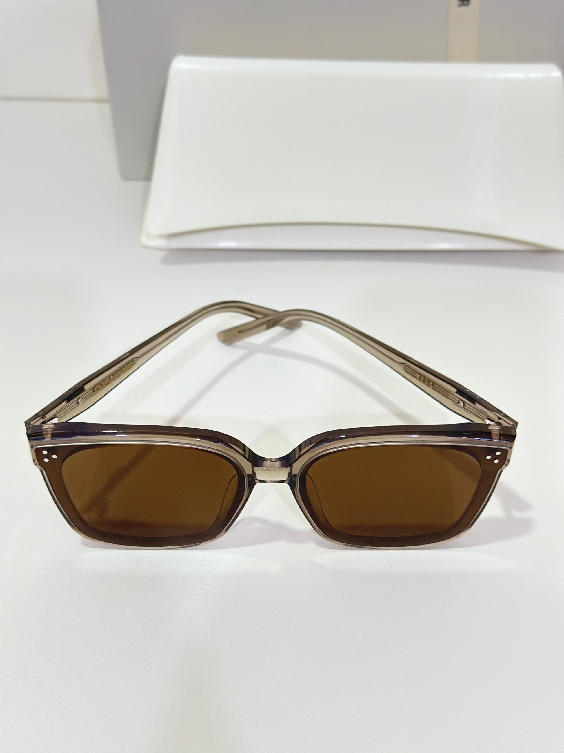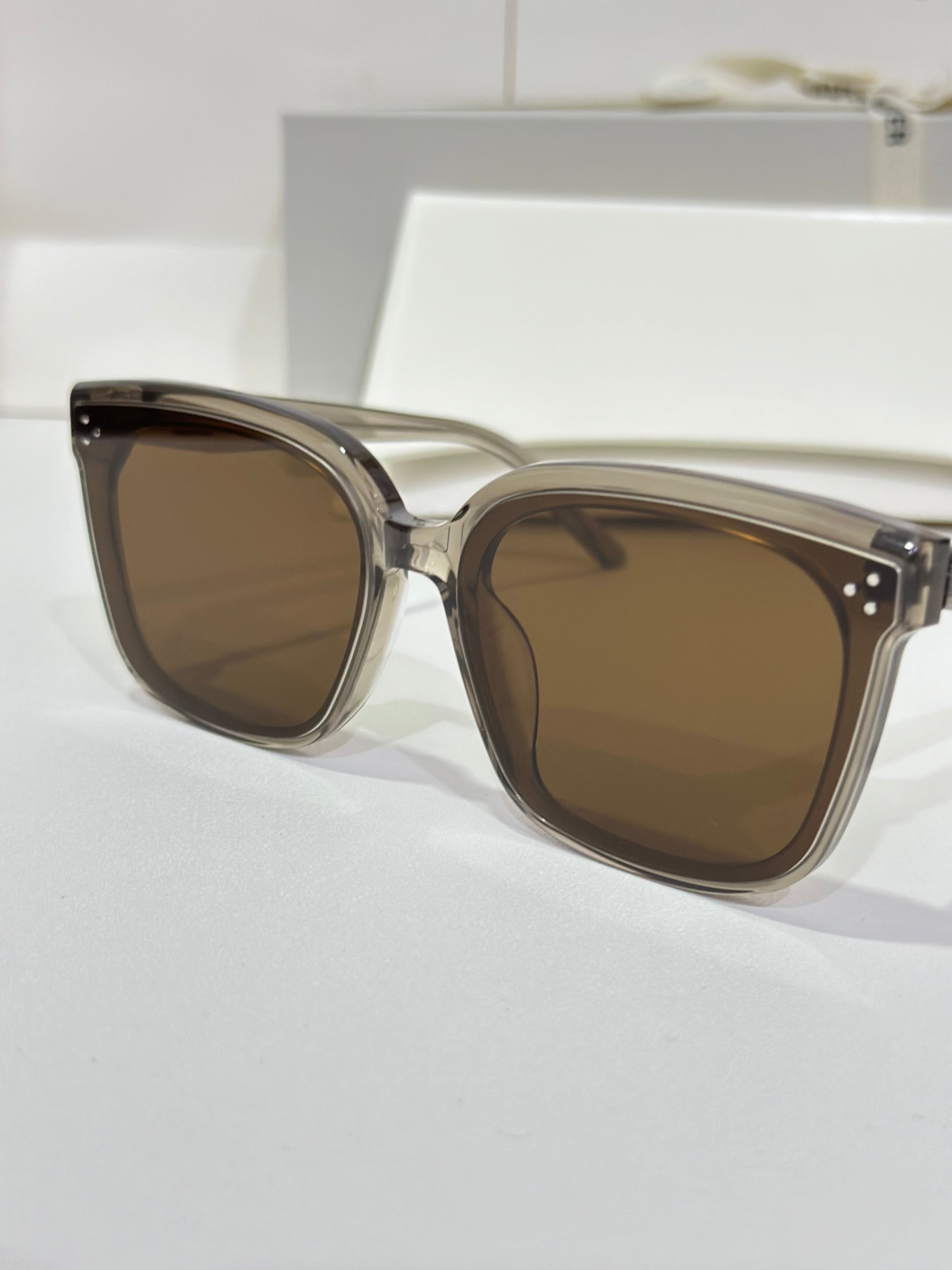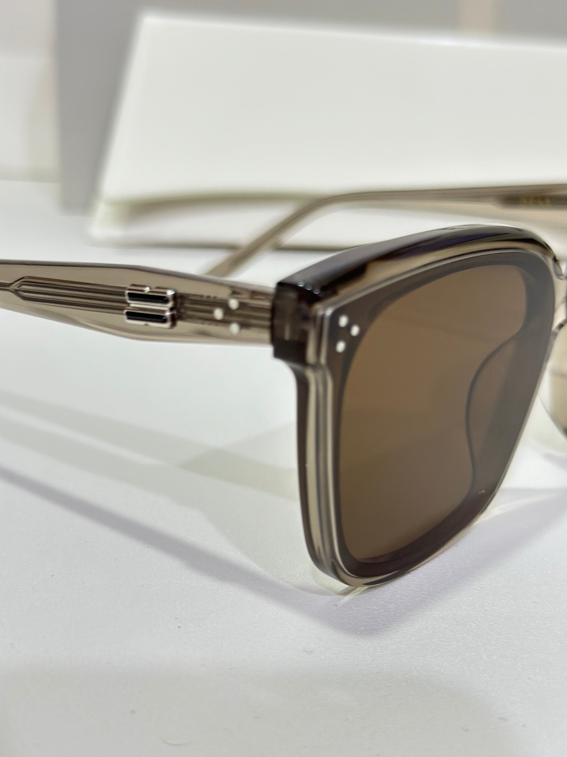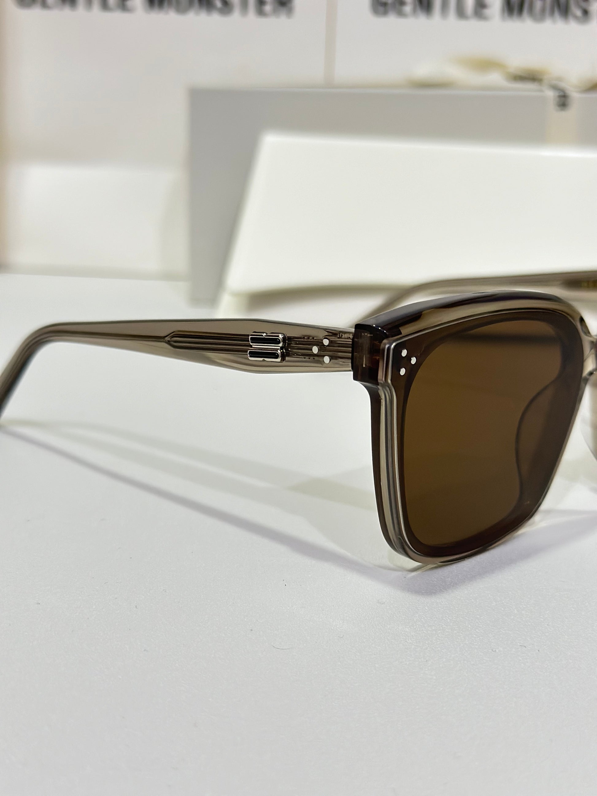 Translucent khaki acetate frameBrown lensesSquare shapeIconic metal detail on the templesFrame Front: 148.7mm, Frame Side: 147.1mm