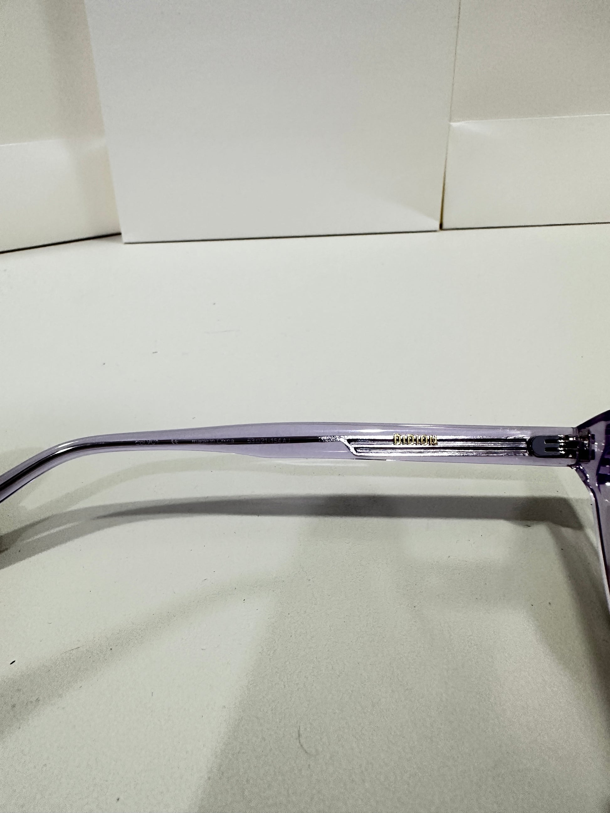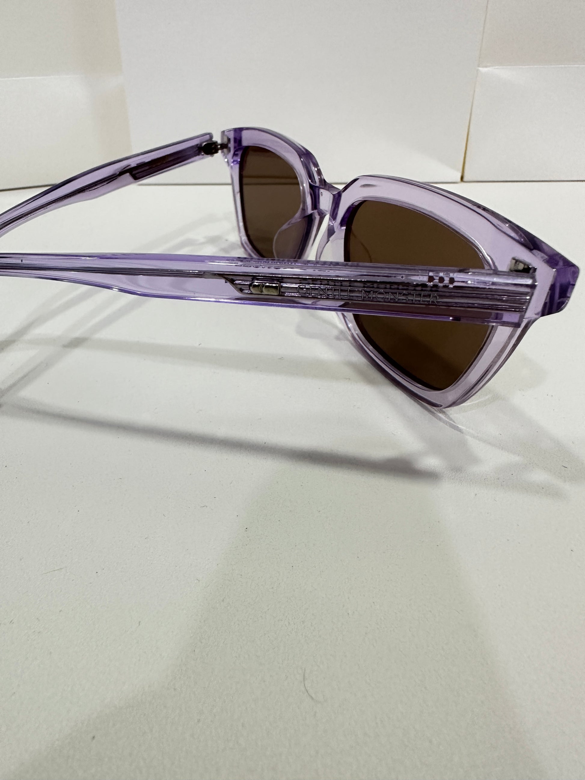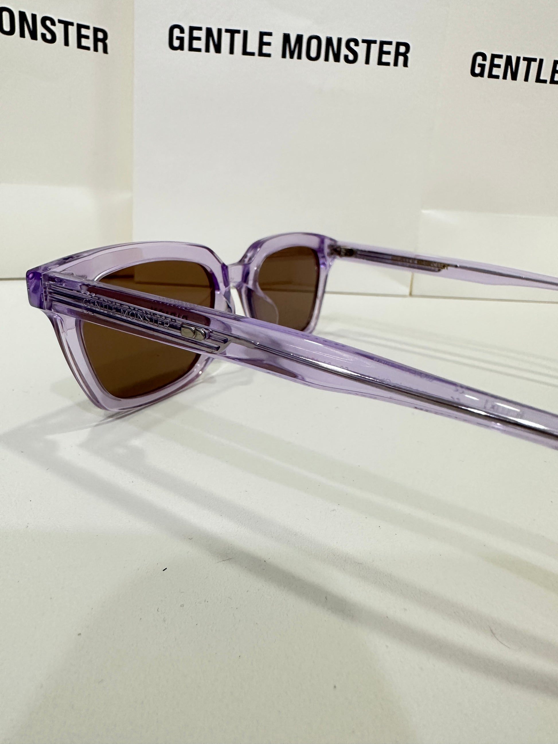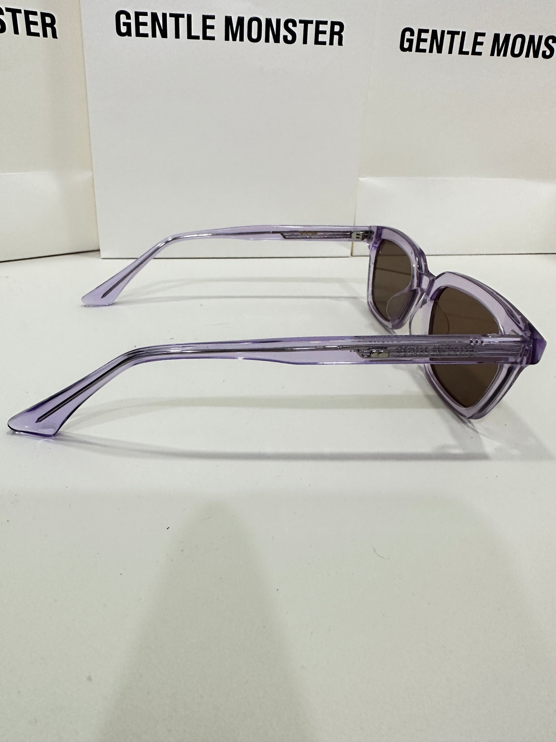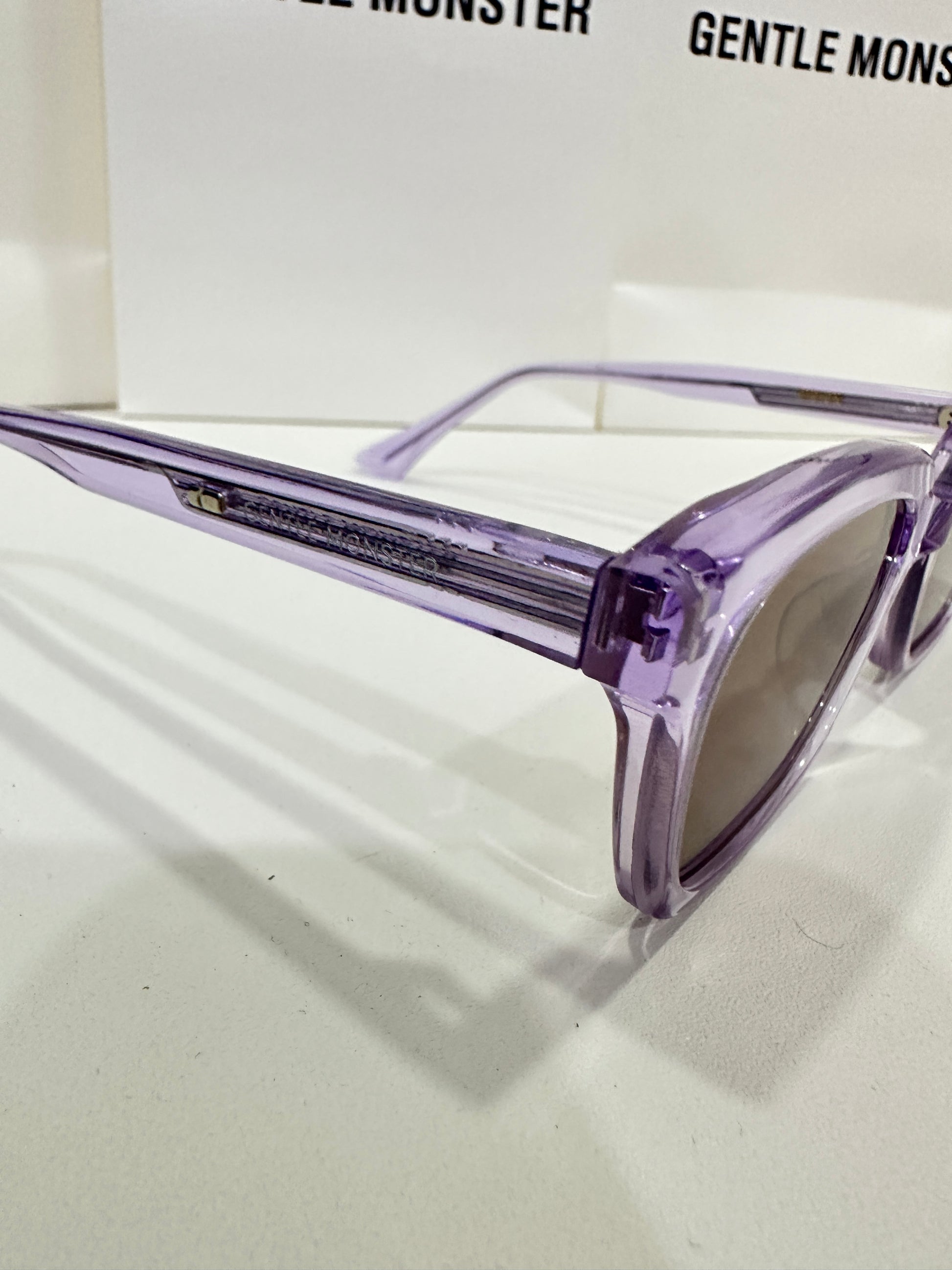 Didion VC1 is a slim rectangular frame crafted of clear violet acetate, fitted with 99.9% UV protected brown lenses. The soft and refined front is balanced by the temples.
