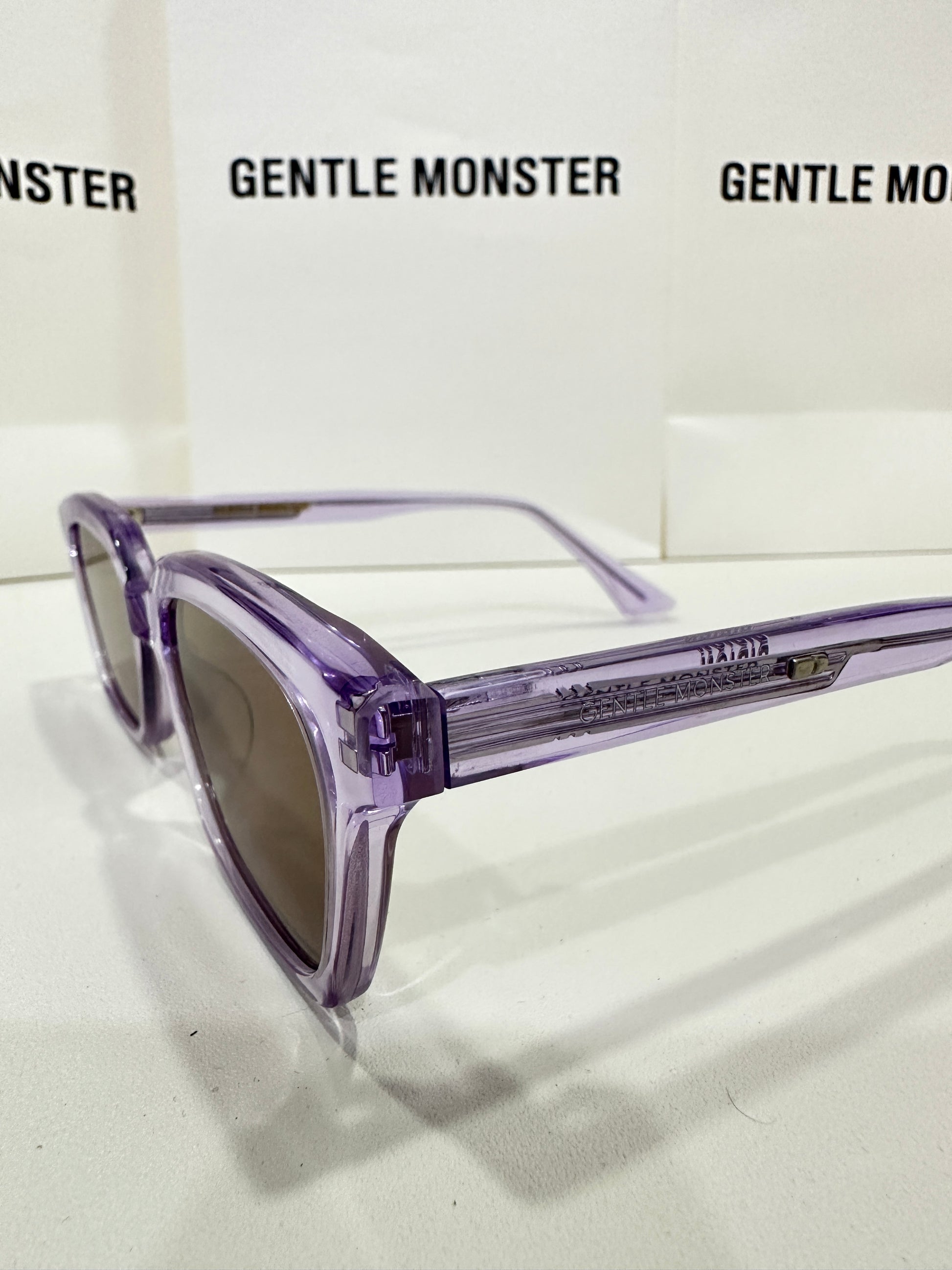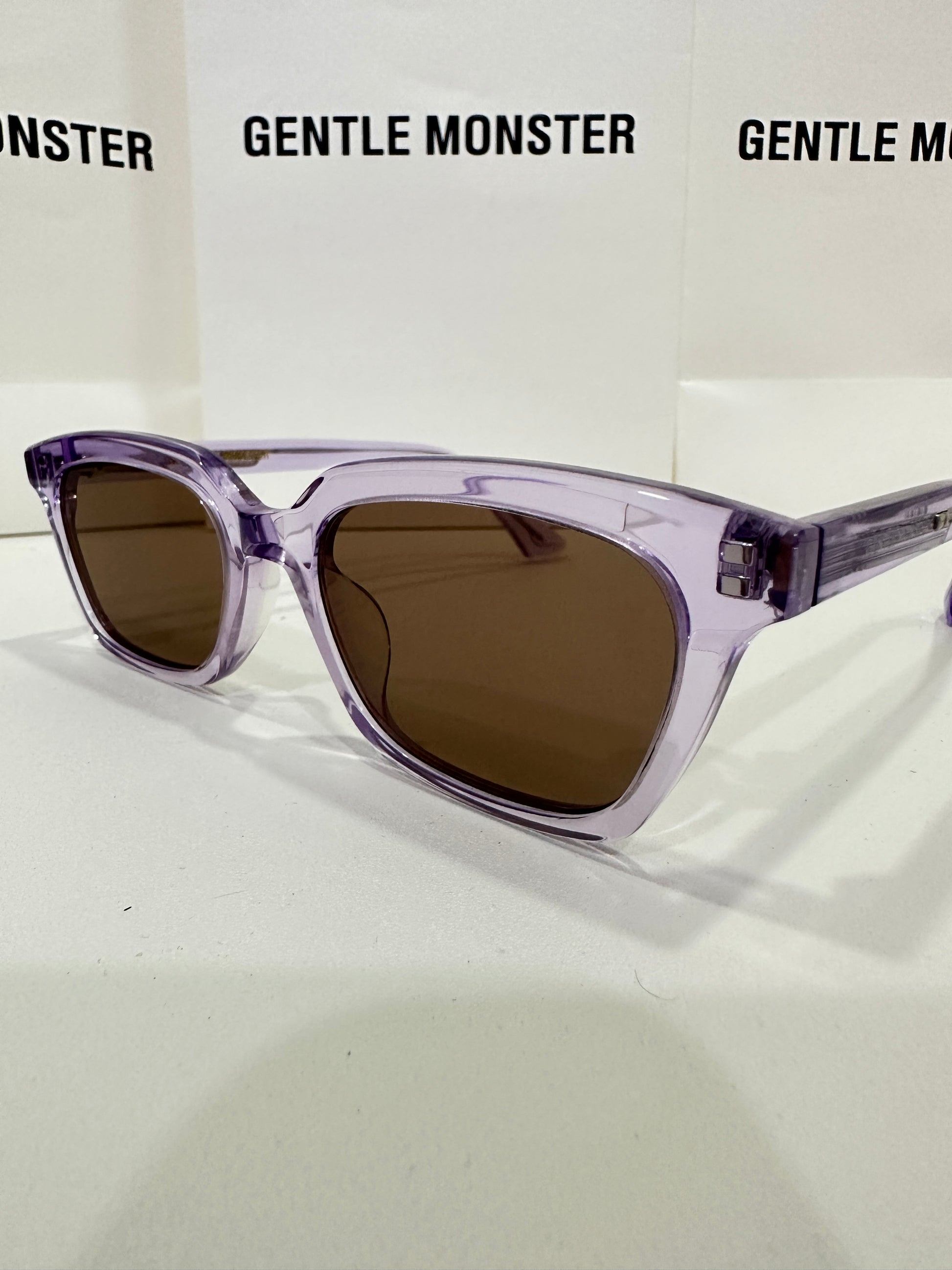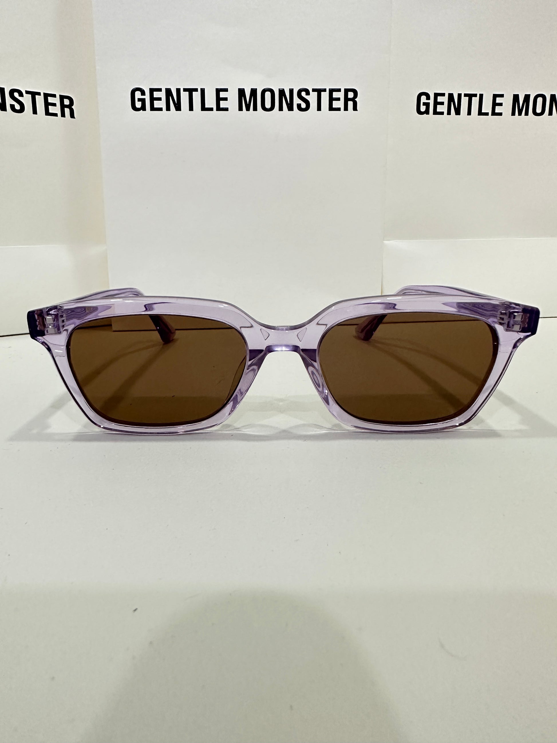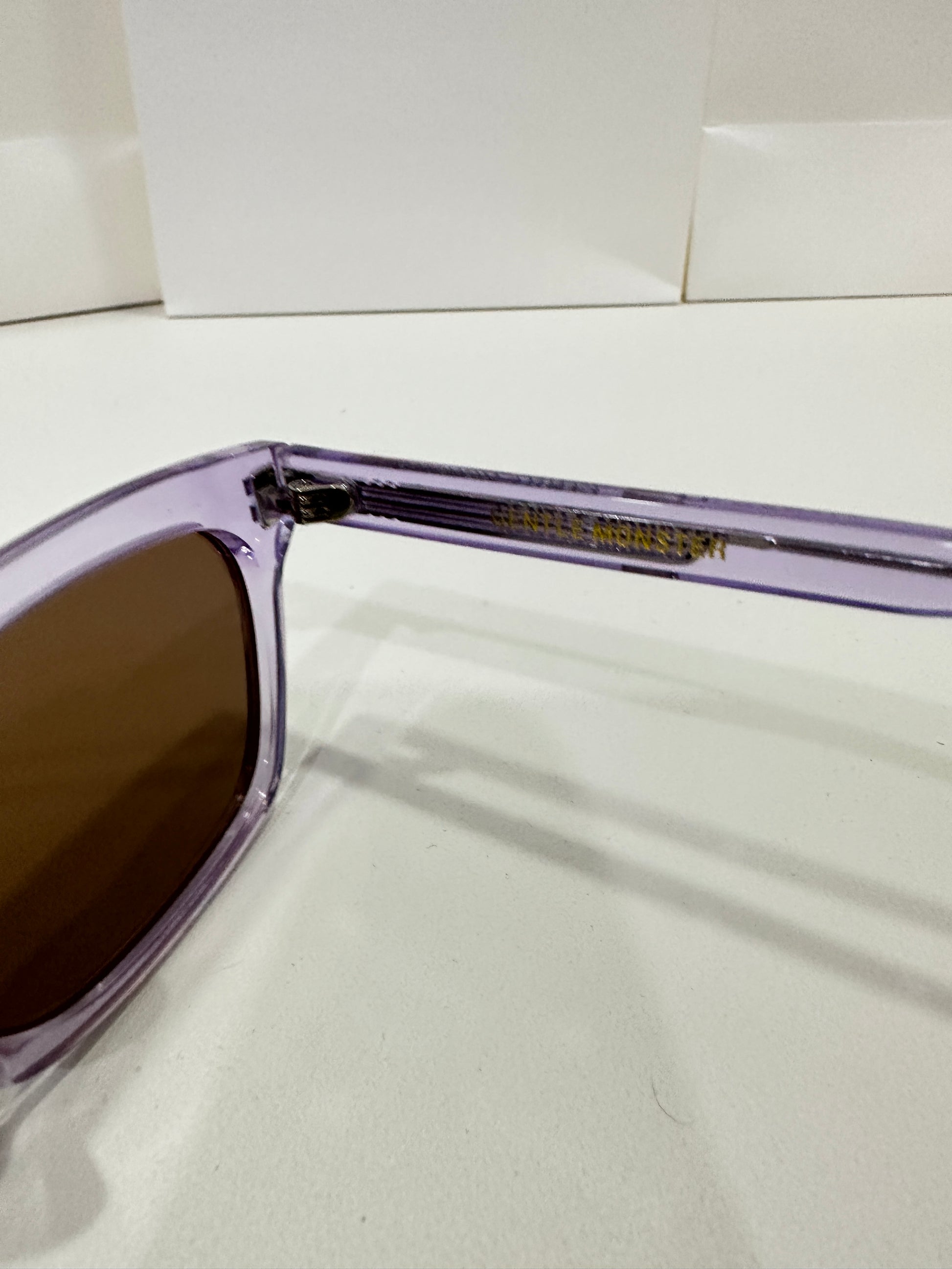 Didion VC1 is a slim rectangular frame crafted of clear violet acetate, fitted with 99.9% UV protected brown lenses. The soft and refined front is balanced by the temples.