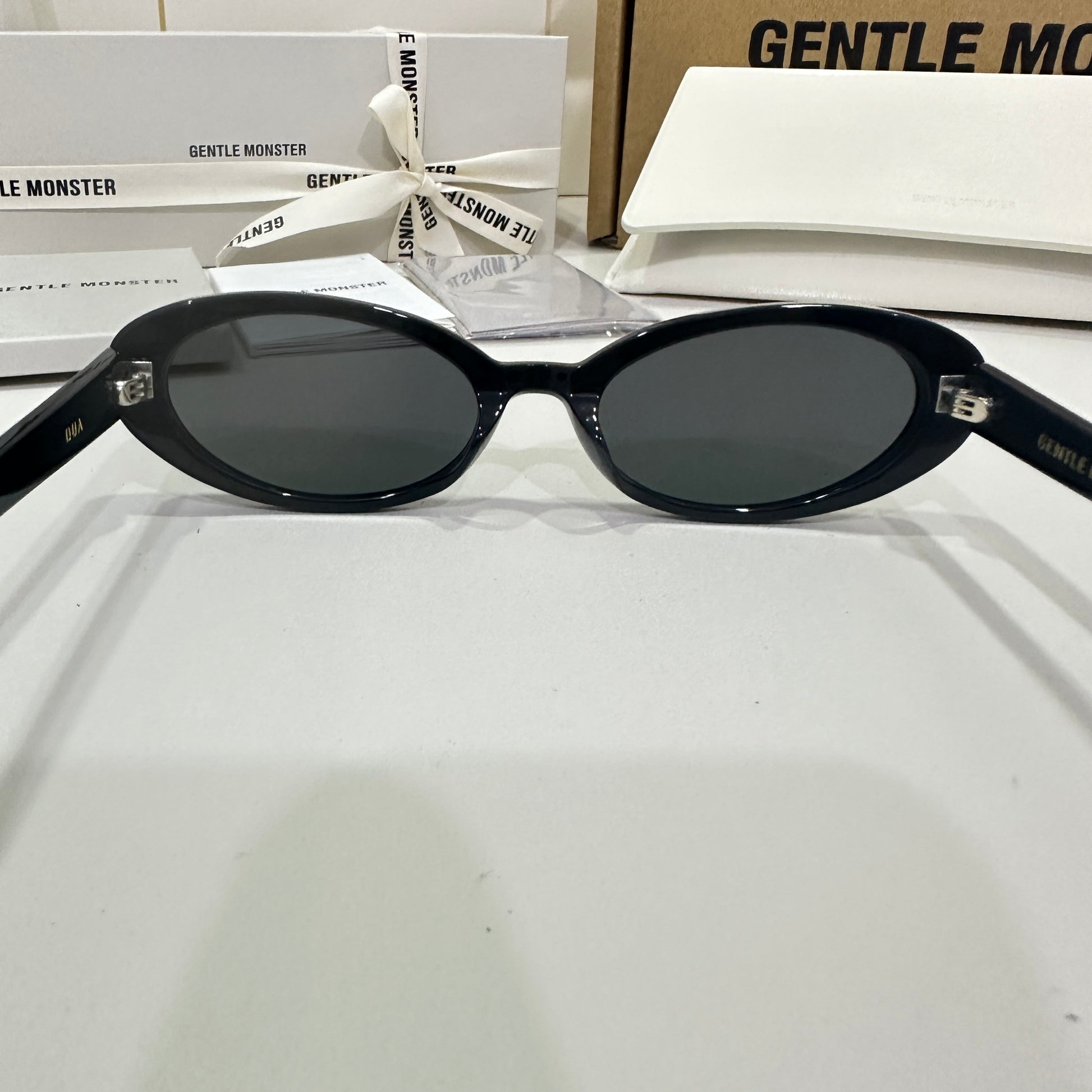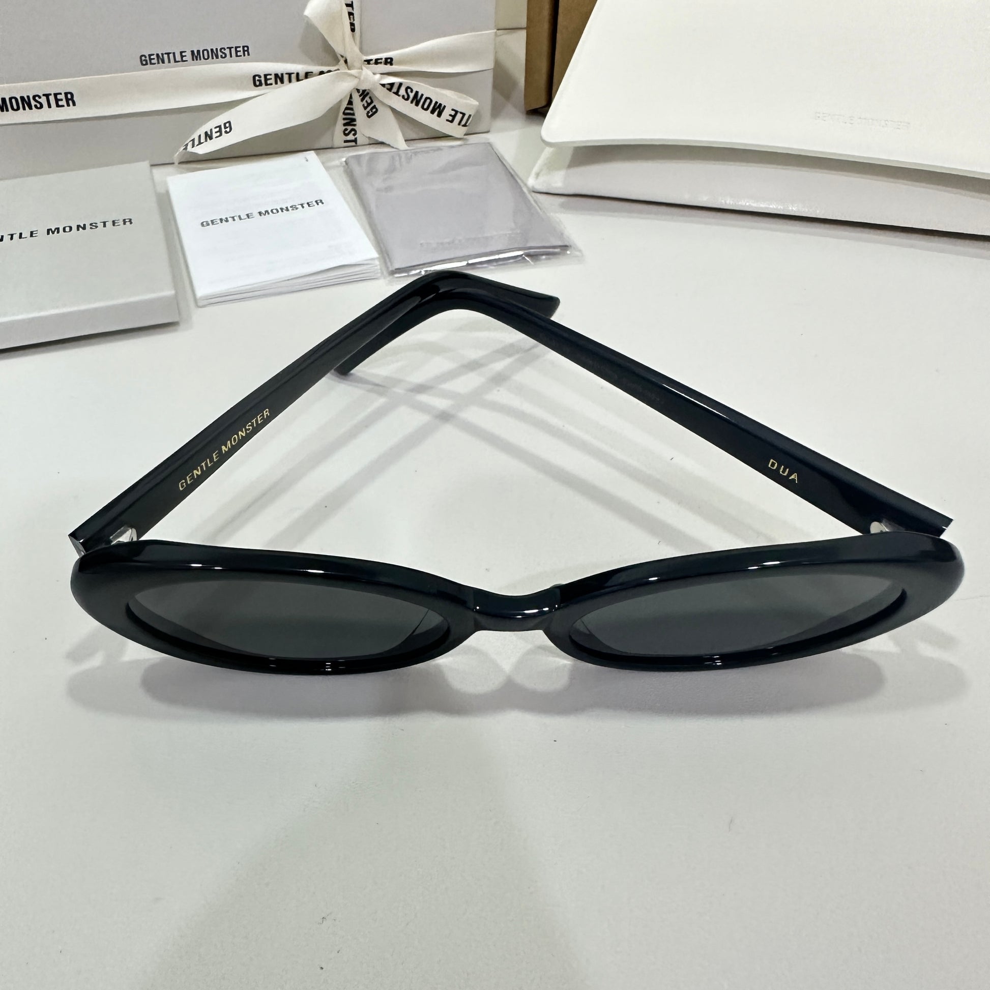 Dua 01 features an oval frame that seamlessly blends with the sleek temples to create a versatile design. This black acetate frame is completed with 99.9% UV protected black lenses.