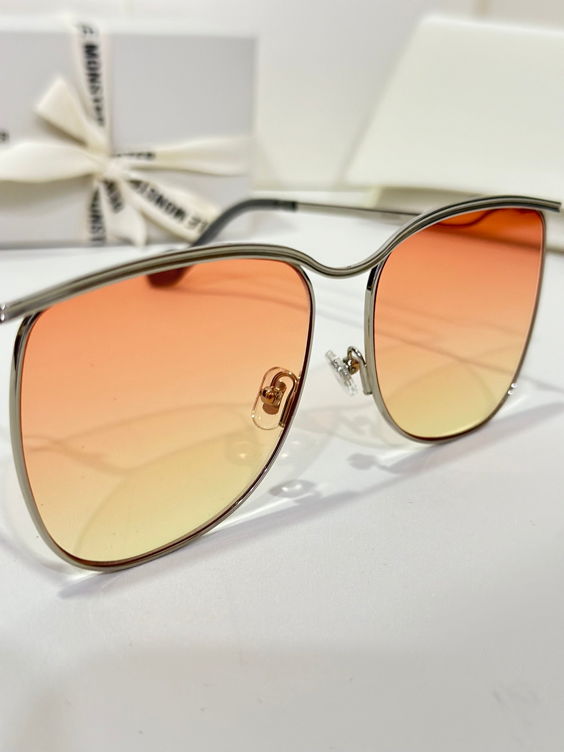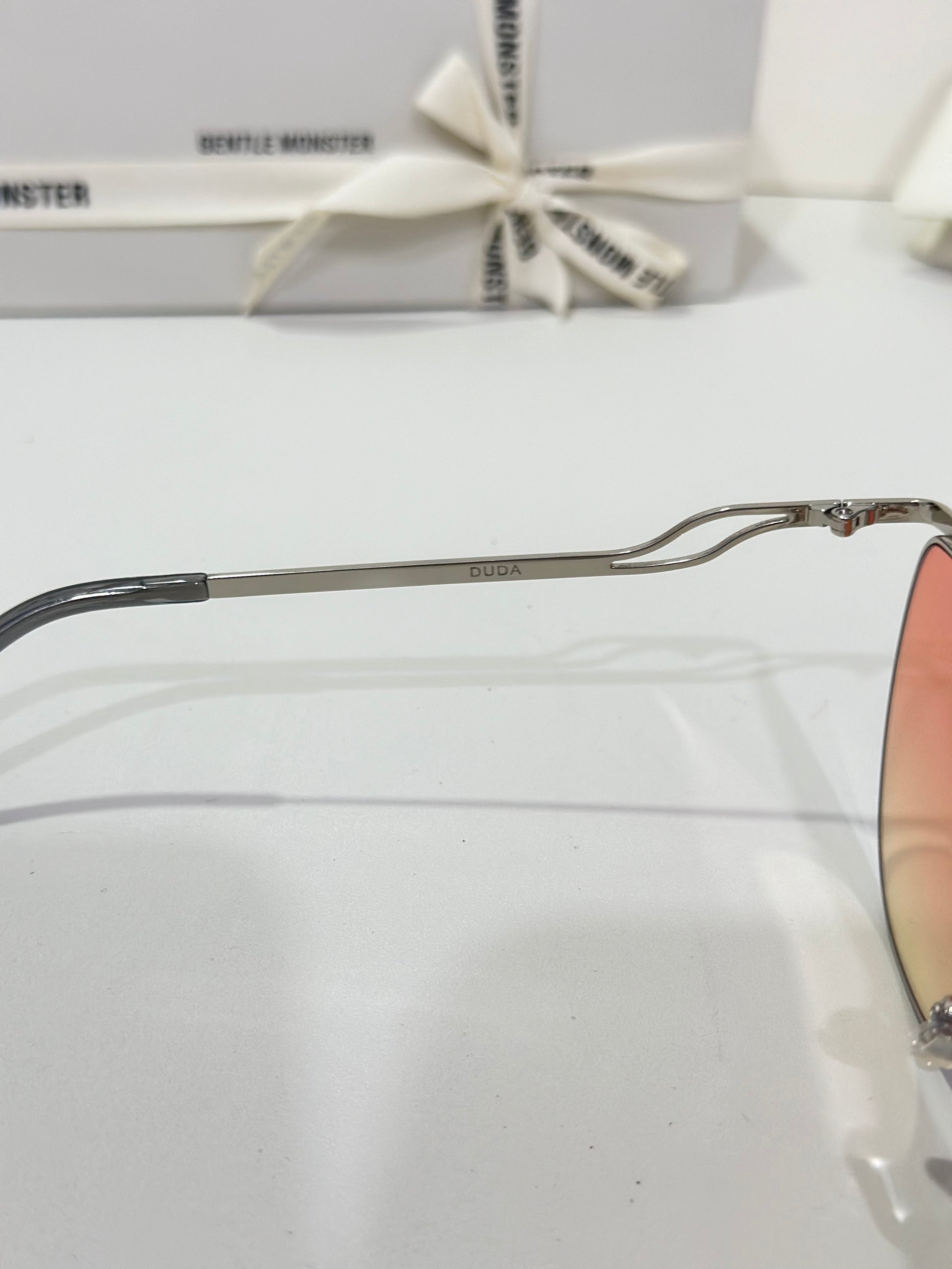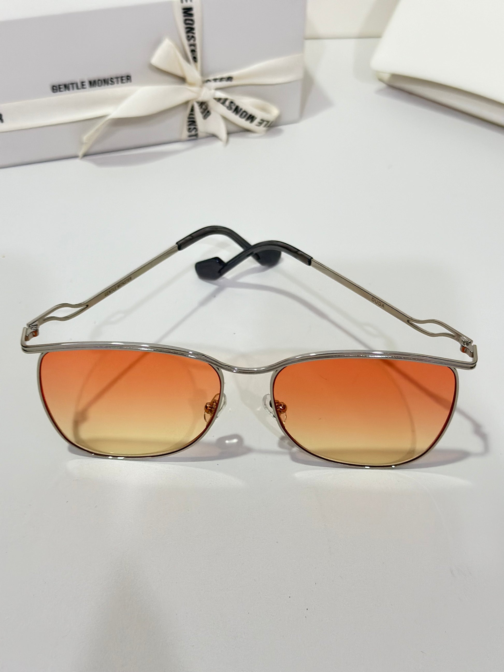 Duda 02 is an aviator silhouetted silver metal frame with 99.9% UV protected orange gradient lenses. The design is highlighted by the elegantly flowing lines of the front and temples.