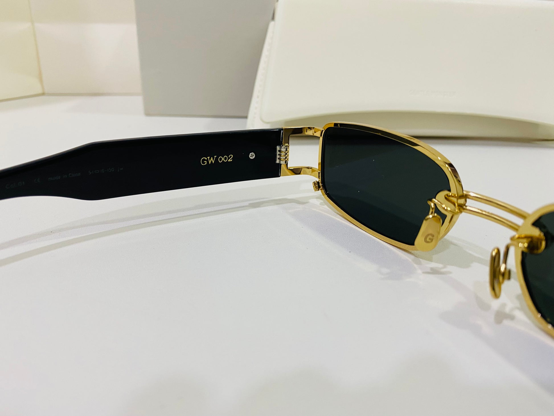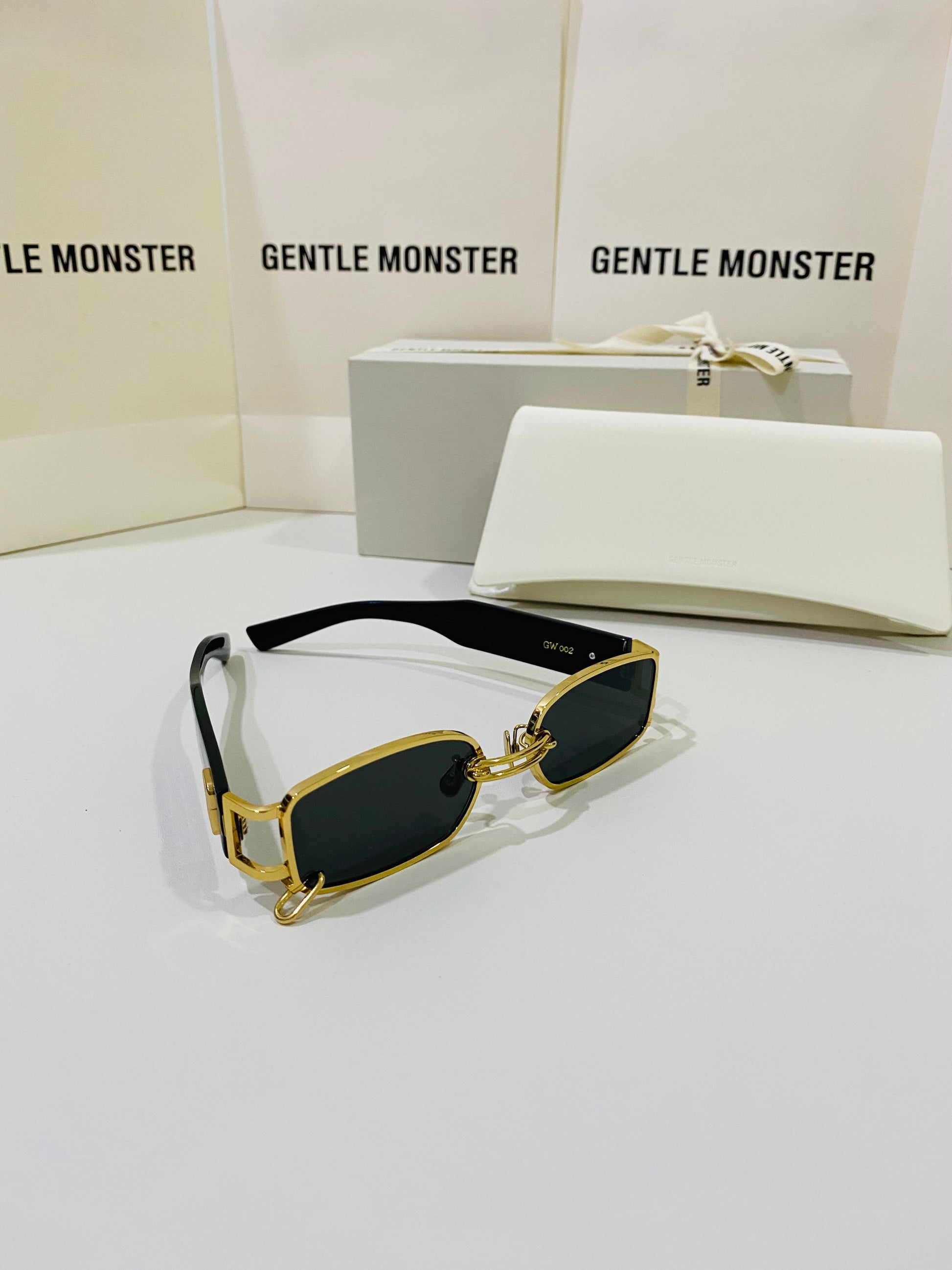 GW 002 03(BK) is a rectangular gold metal frame designed as part of the GENTLE WU collection.