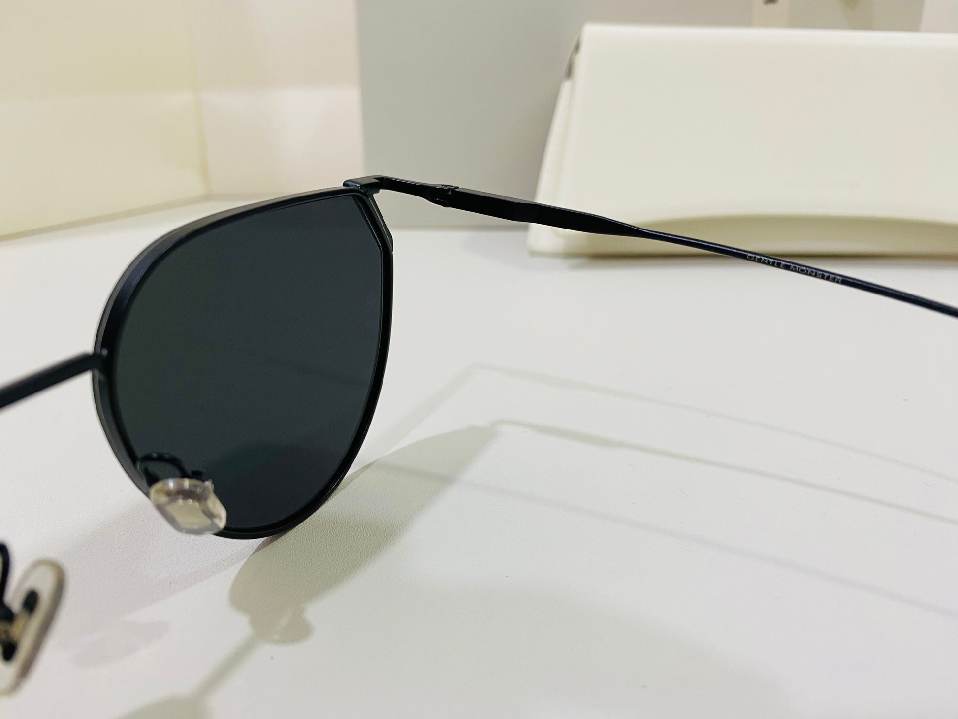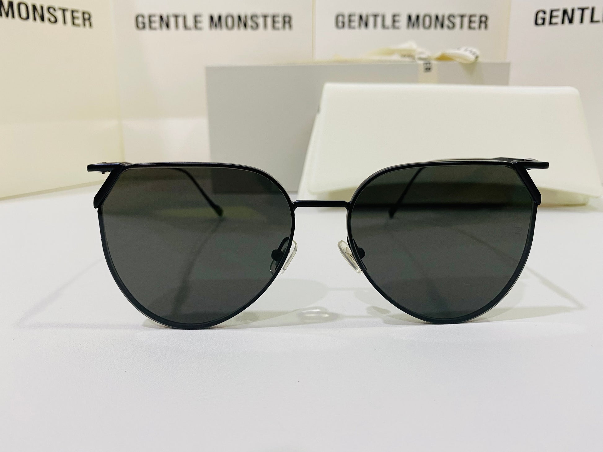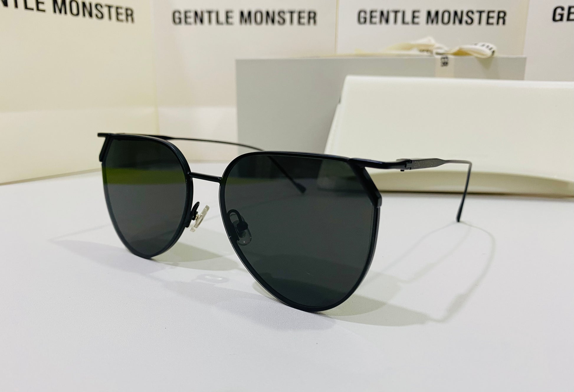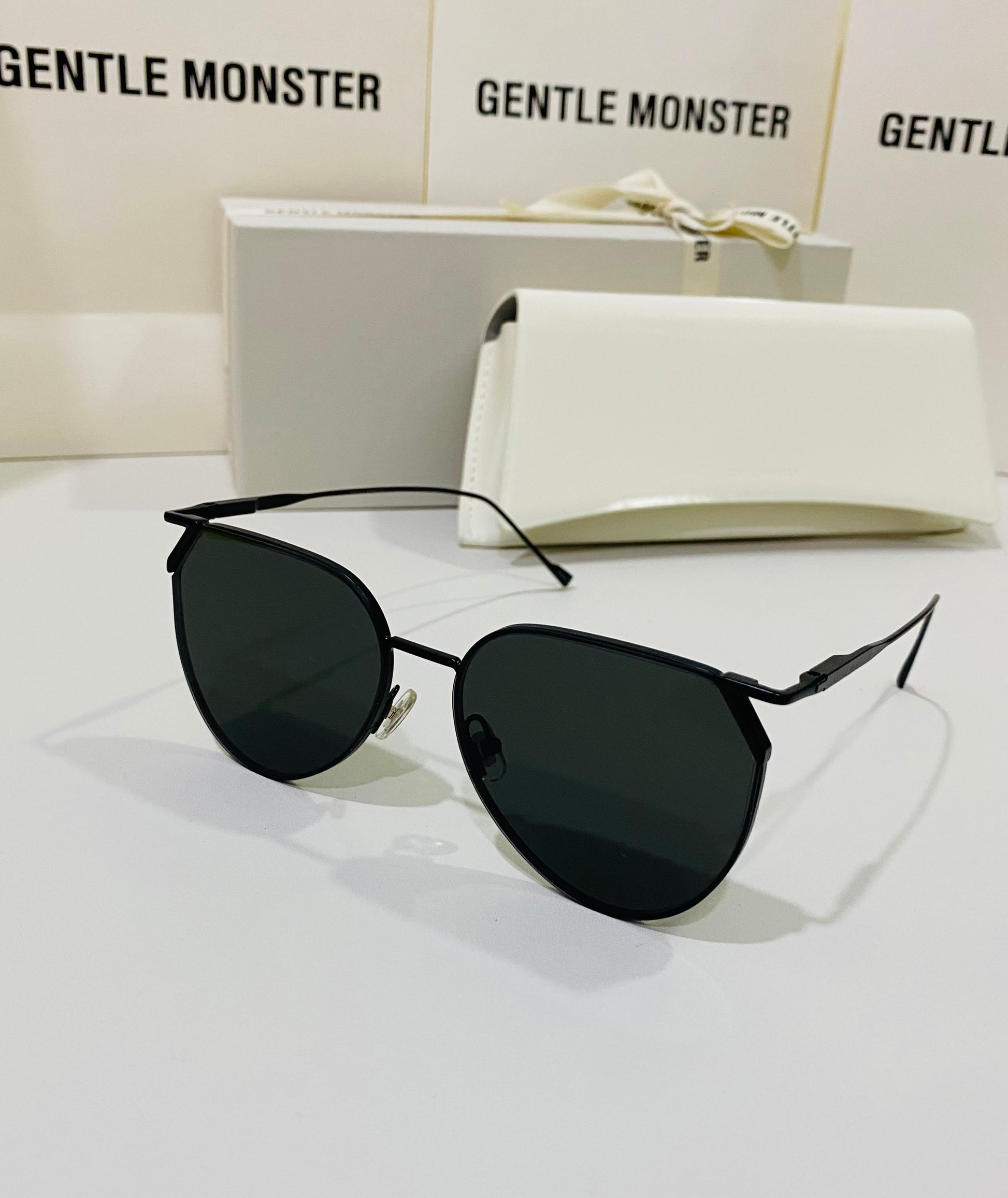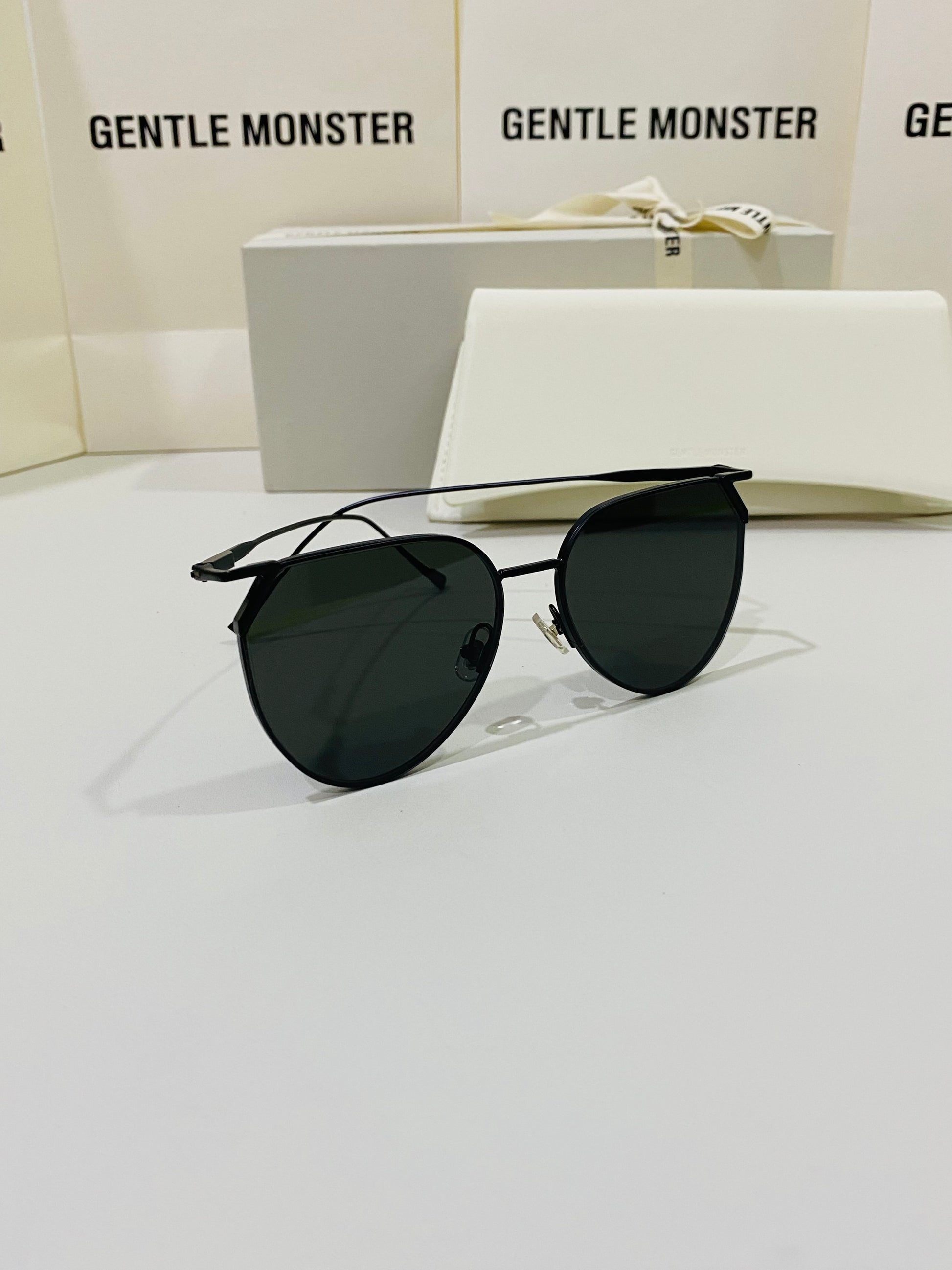 Hady M01 is a reimagined black metal aviator style frame. The frame front is accentuated by the uniquely shaped endpieces that hold the 99.9% UV protected black lenses in place.
