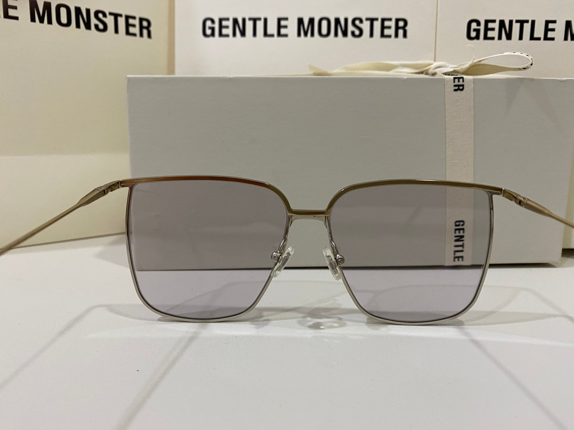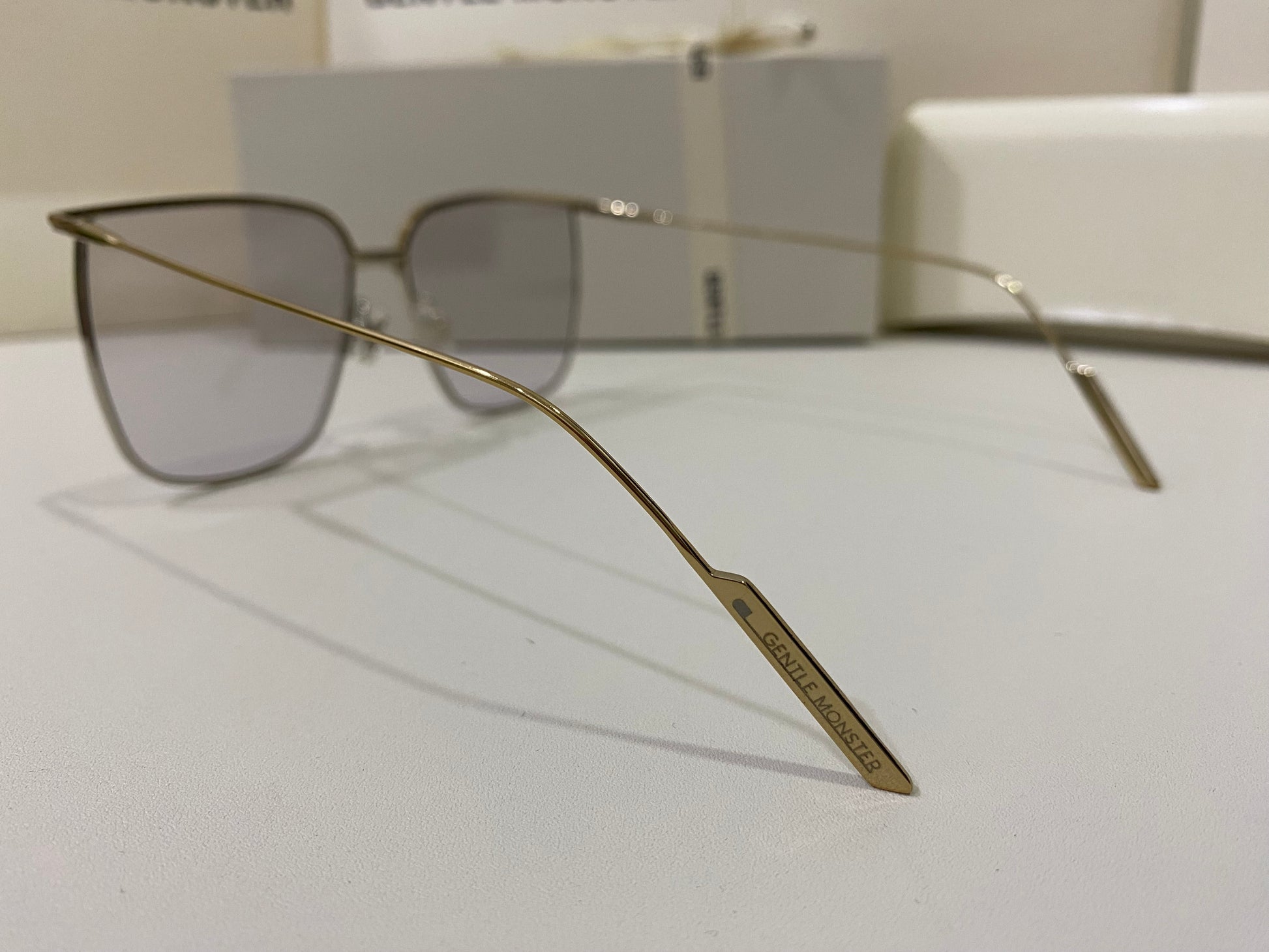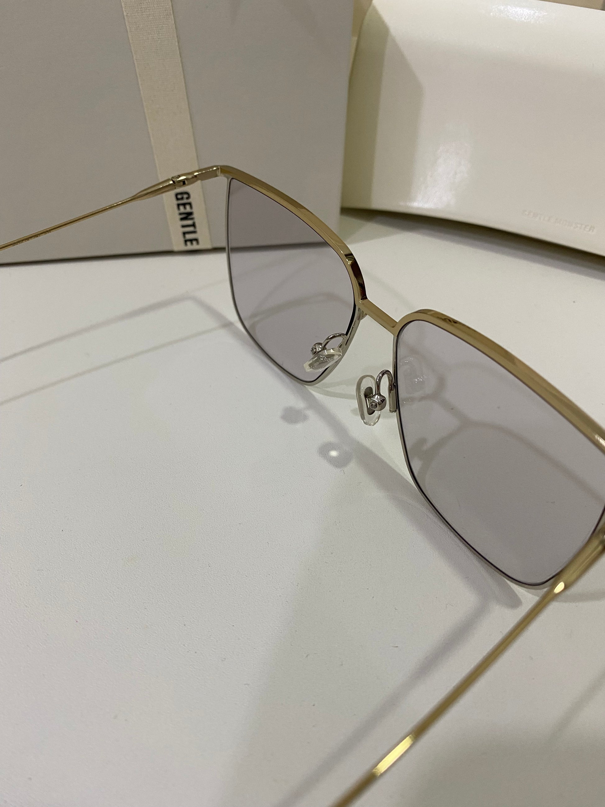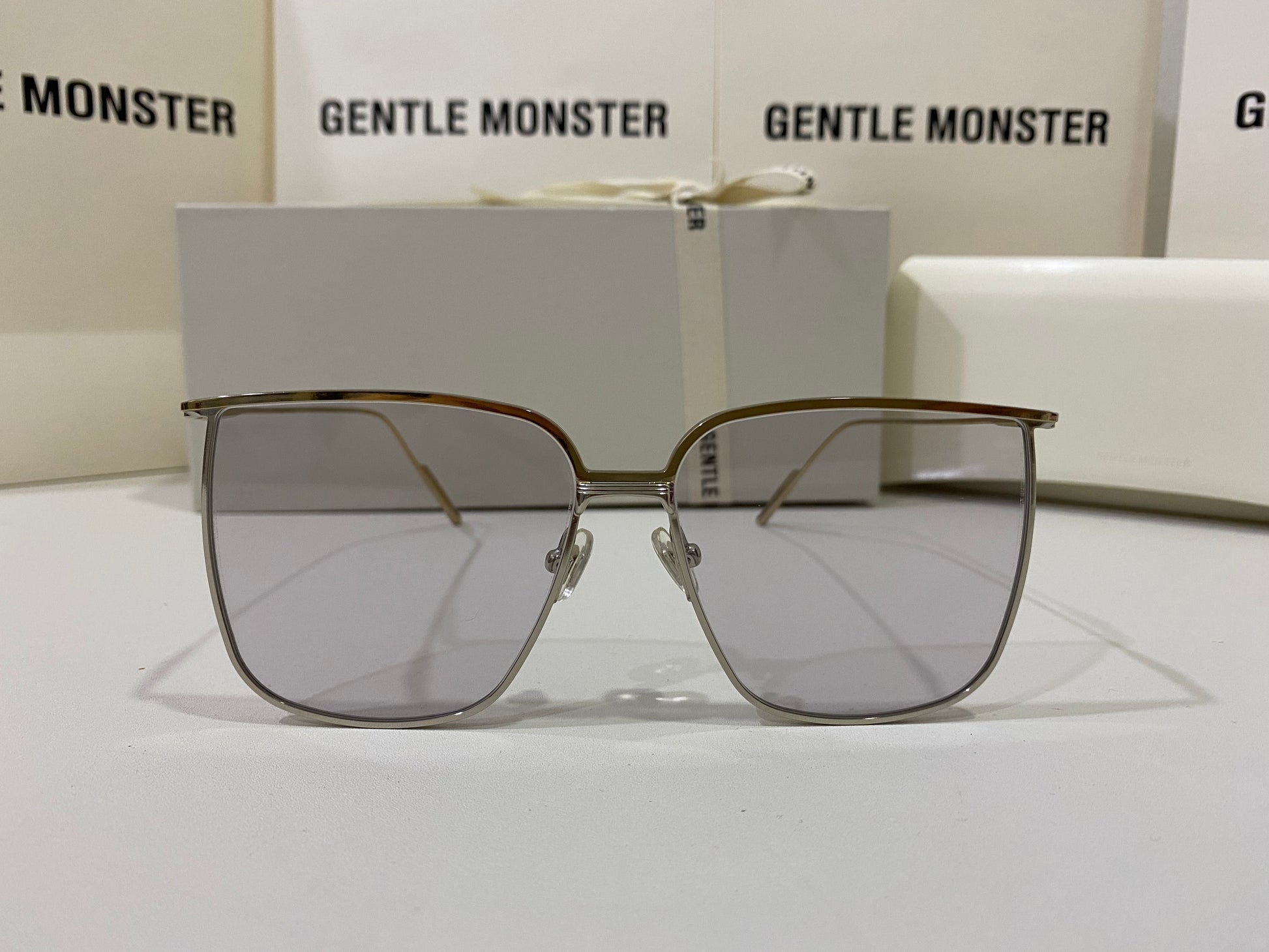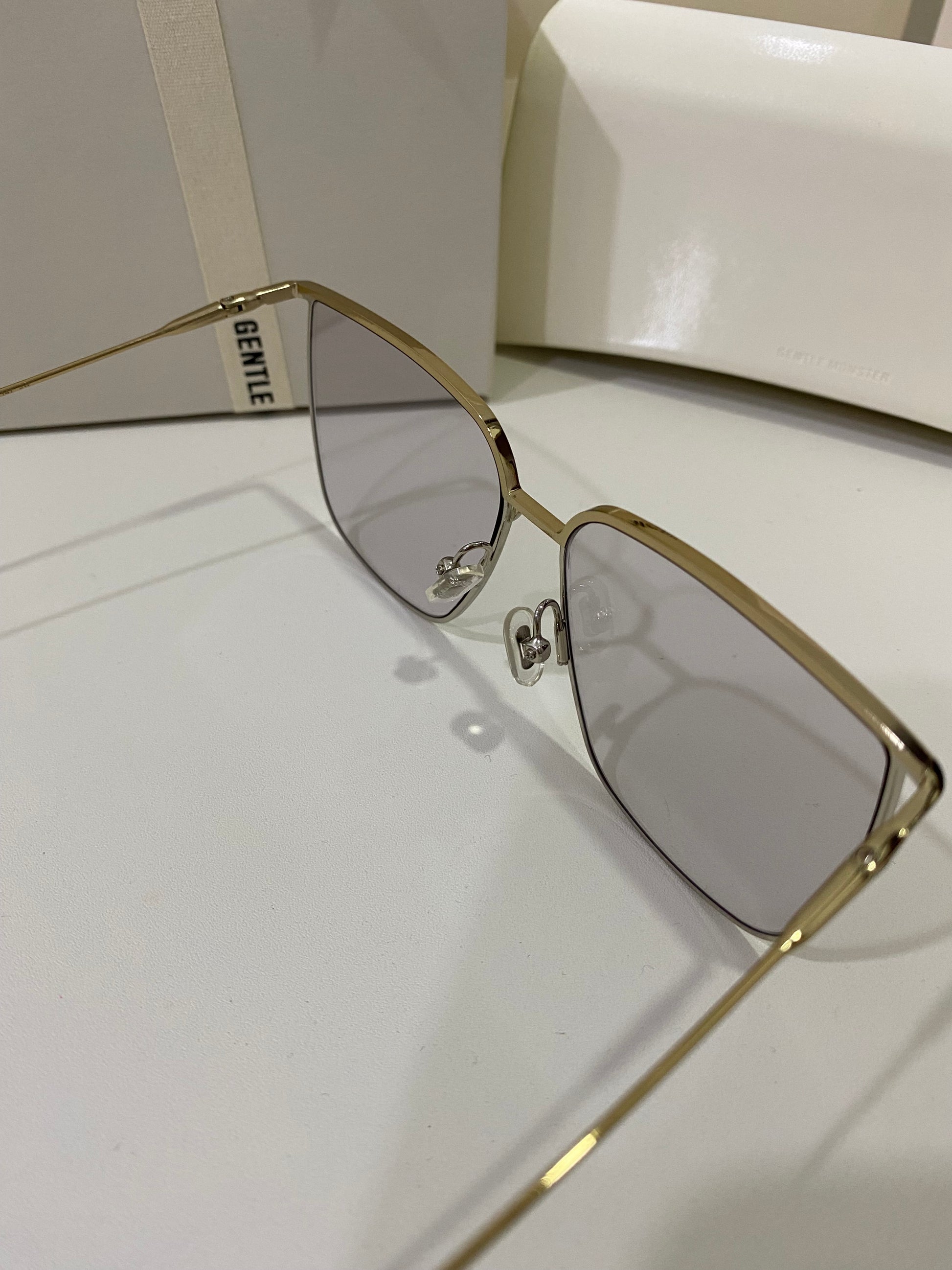 High To Low 032 is an oversized square metal frame. These sunglasses feature a temple tip design newly presented in the 2021 Collection, dual-colored frame front of gold and silver and fitted with 99.9% UV protection blue lenses.