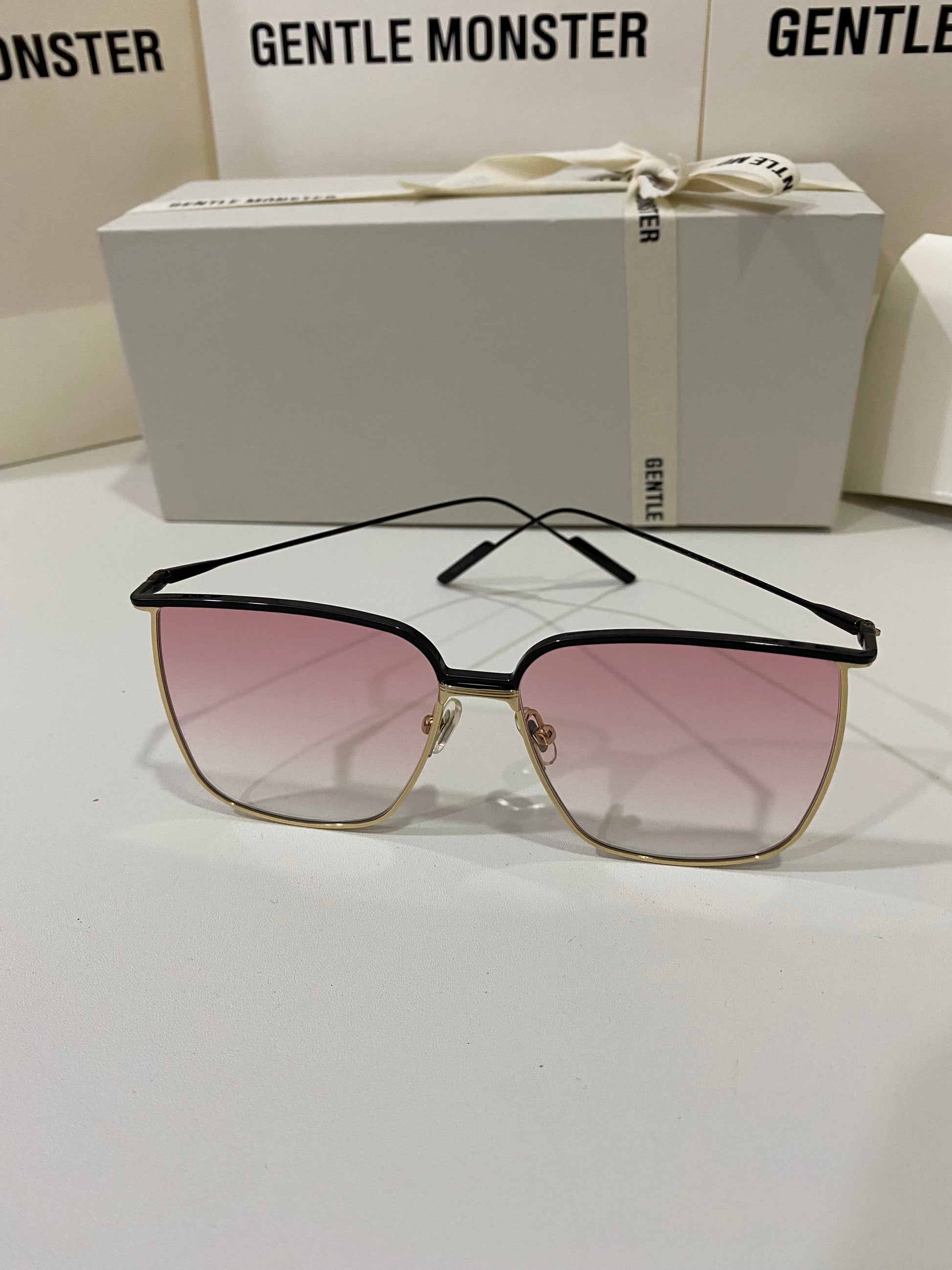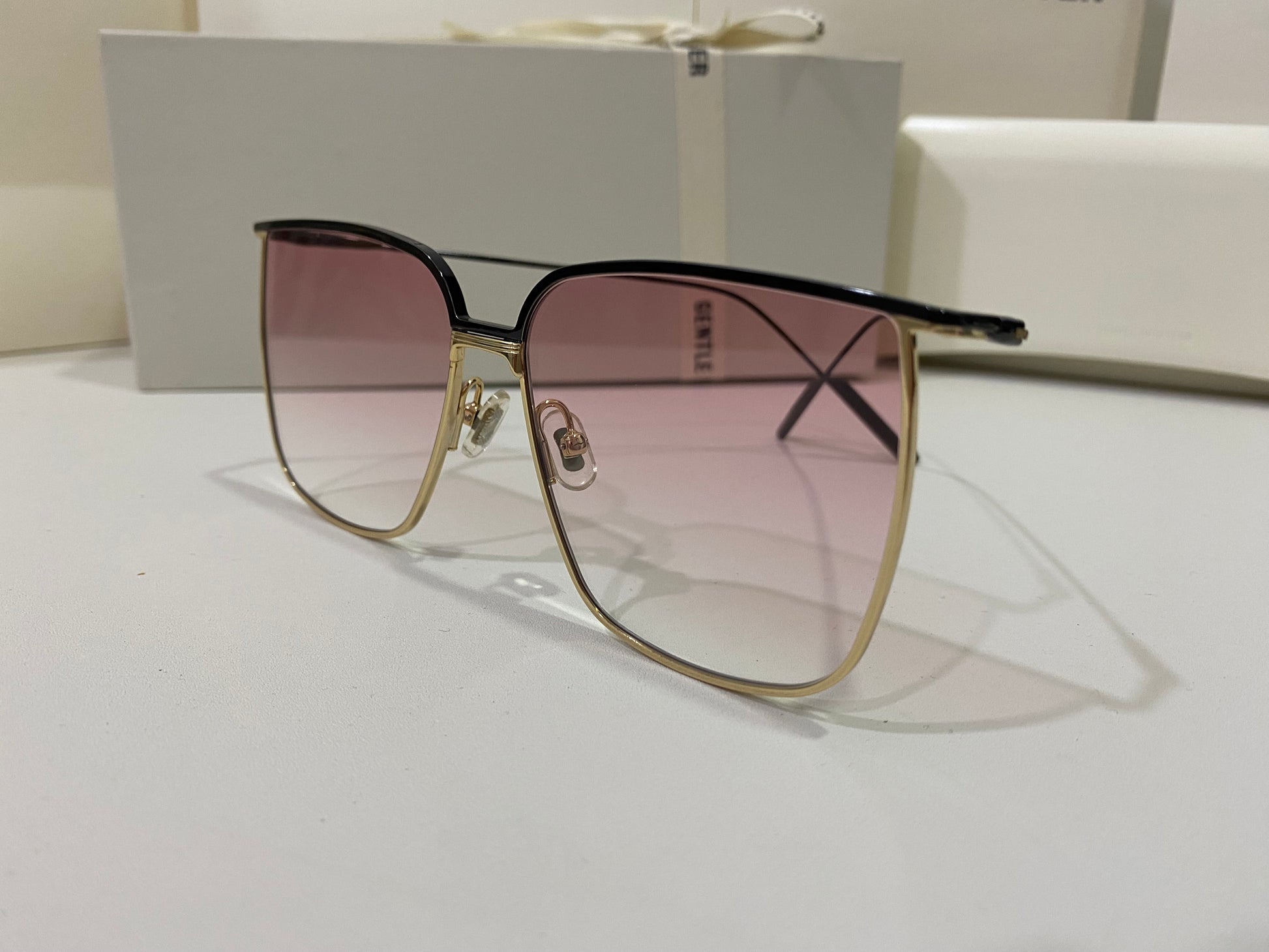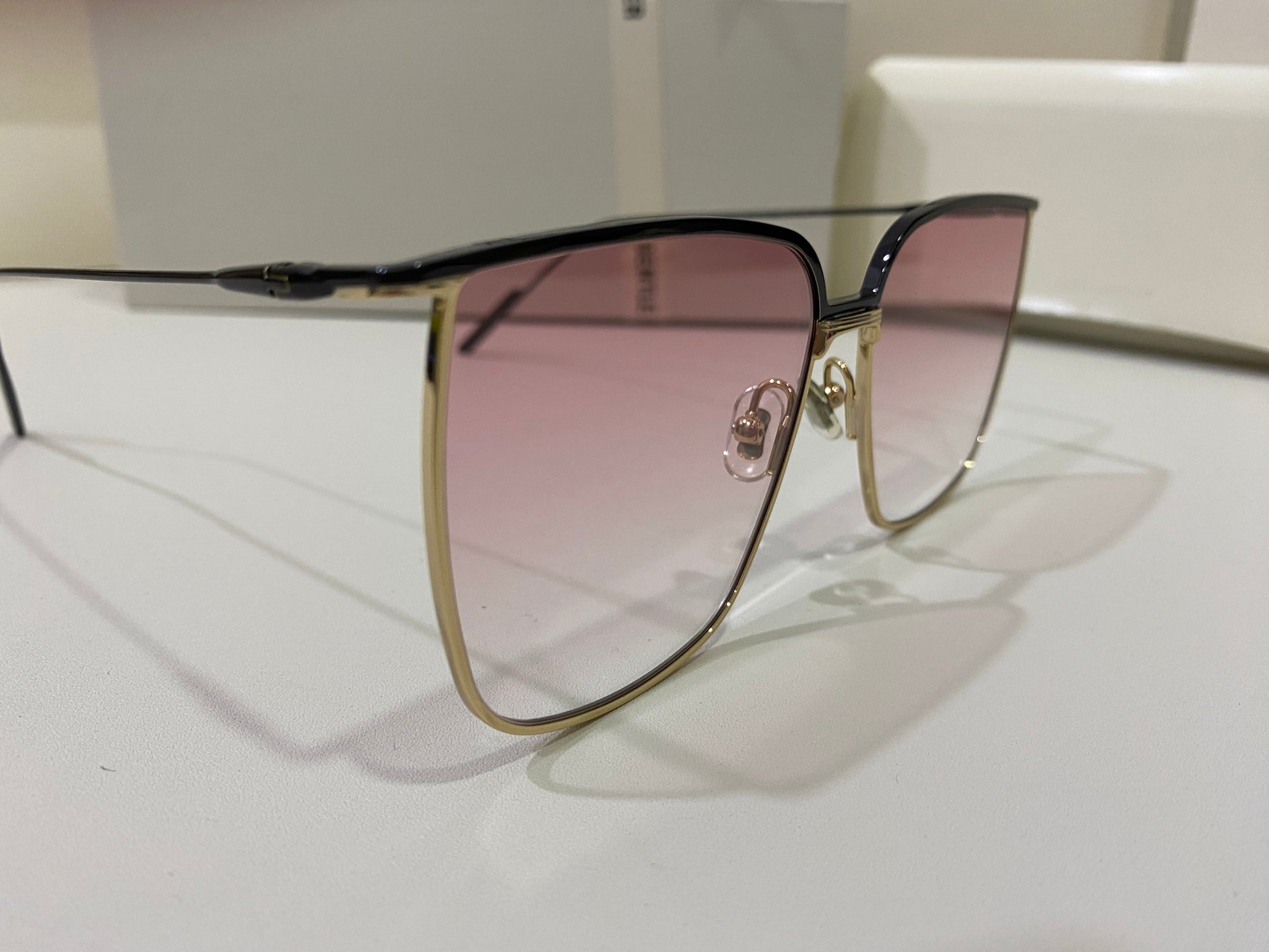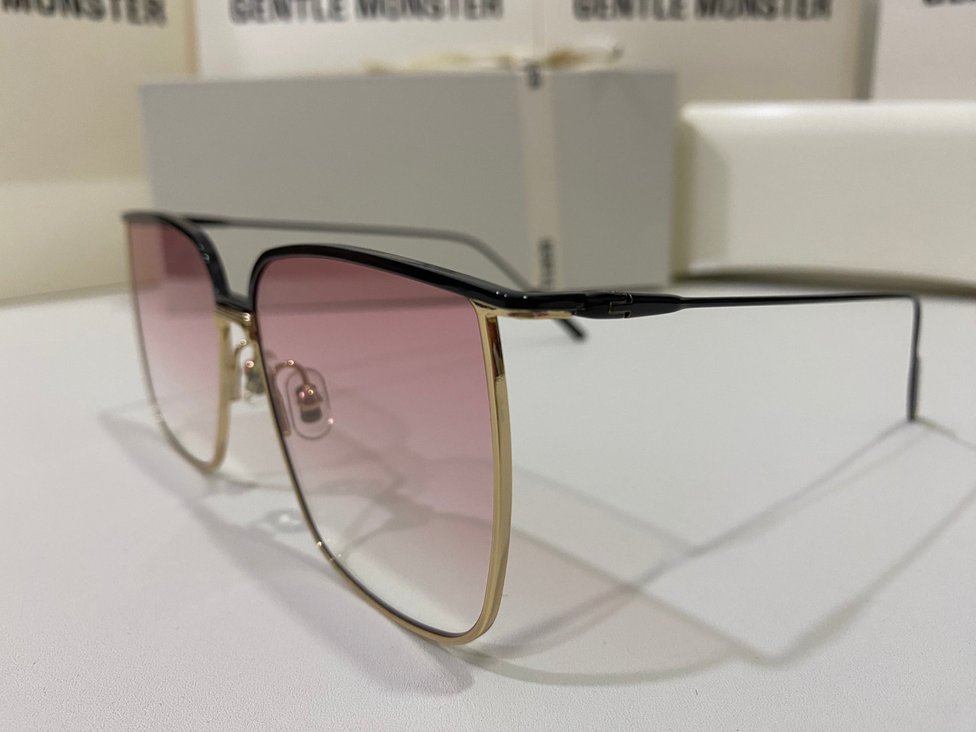 High To Low M02 is an oversized square metal frame. These sunglasses feature a temple tip design newly presented in the 2021 Collection, dual-colored frame front of black and gold and fitted with 99.9% UV protection pink gradient lenses.
