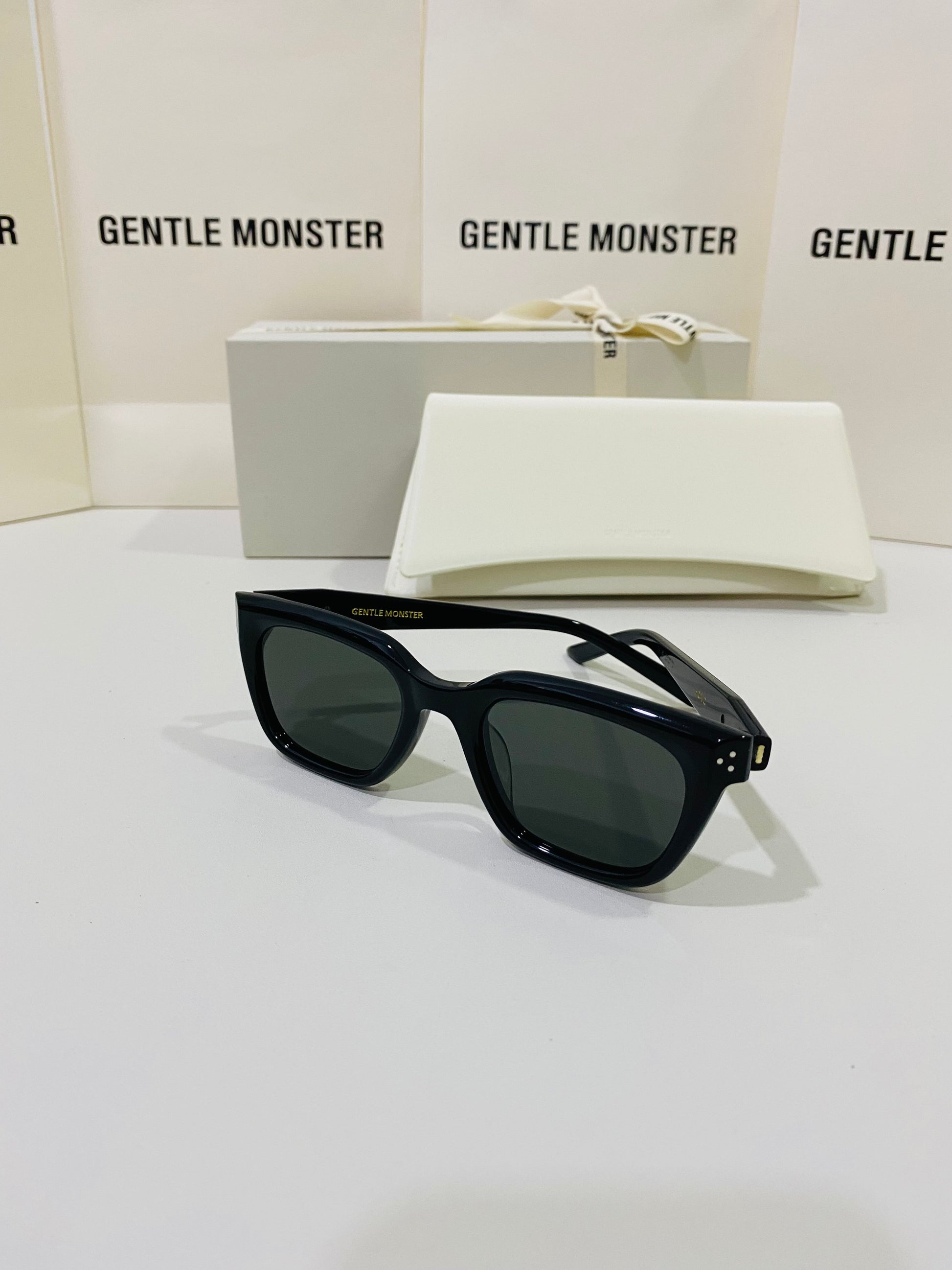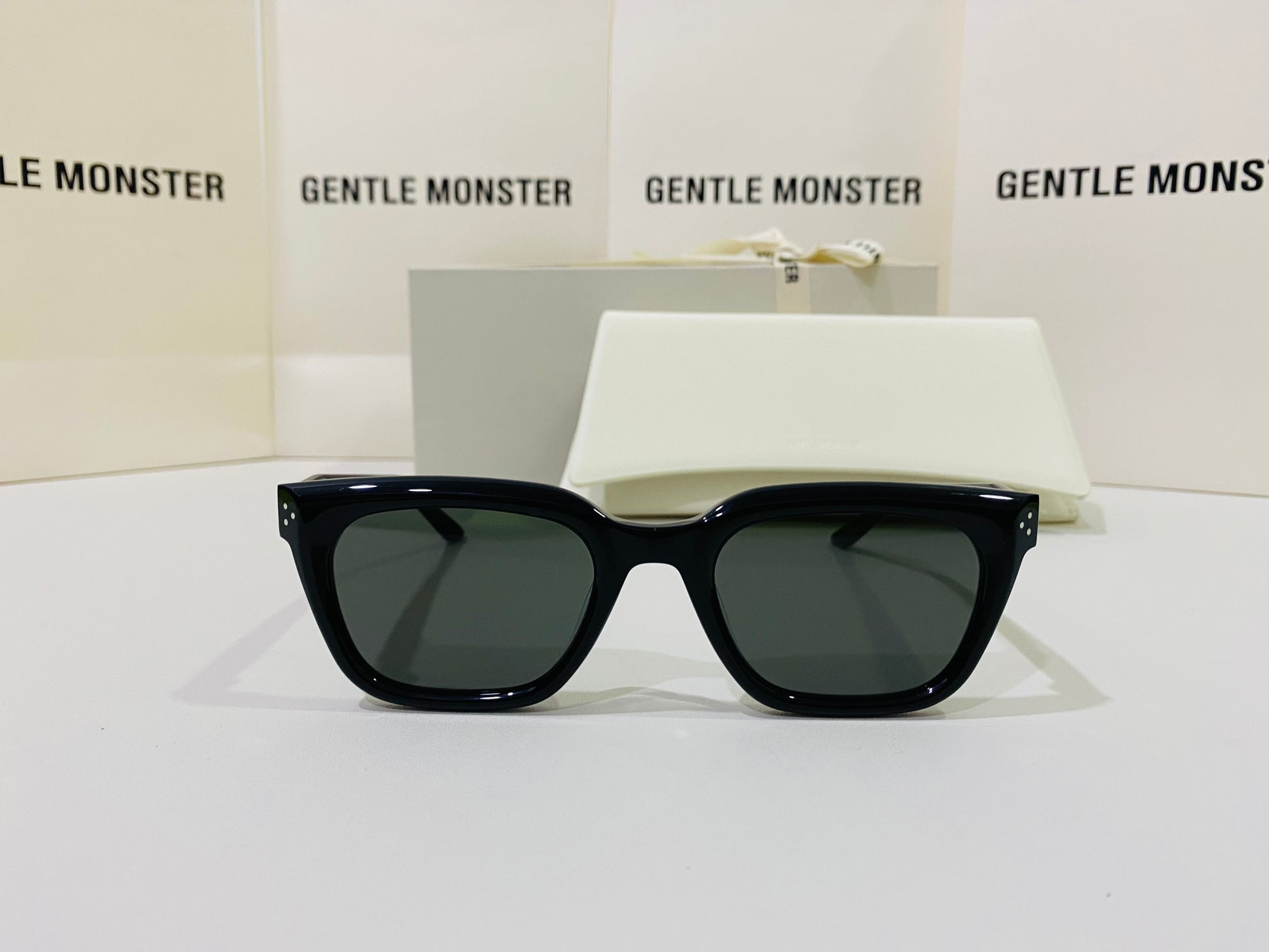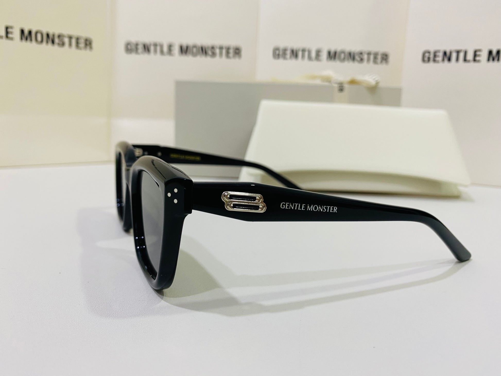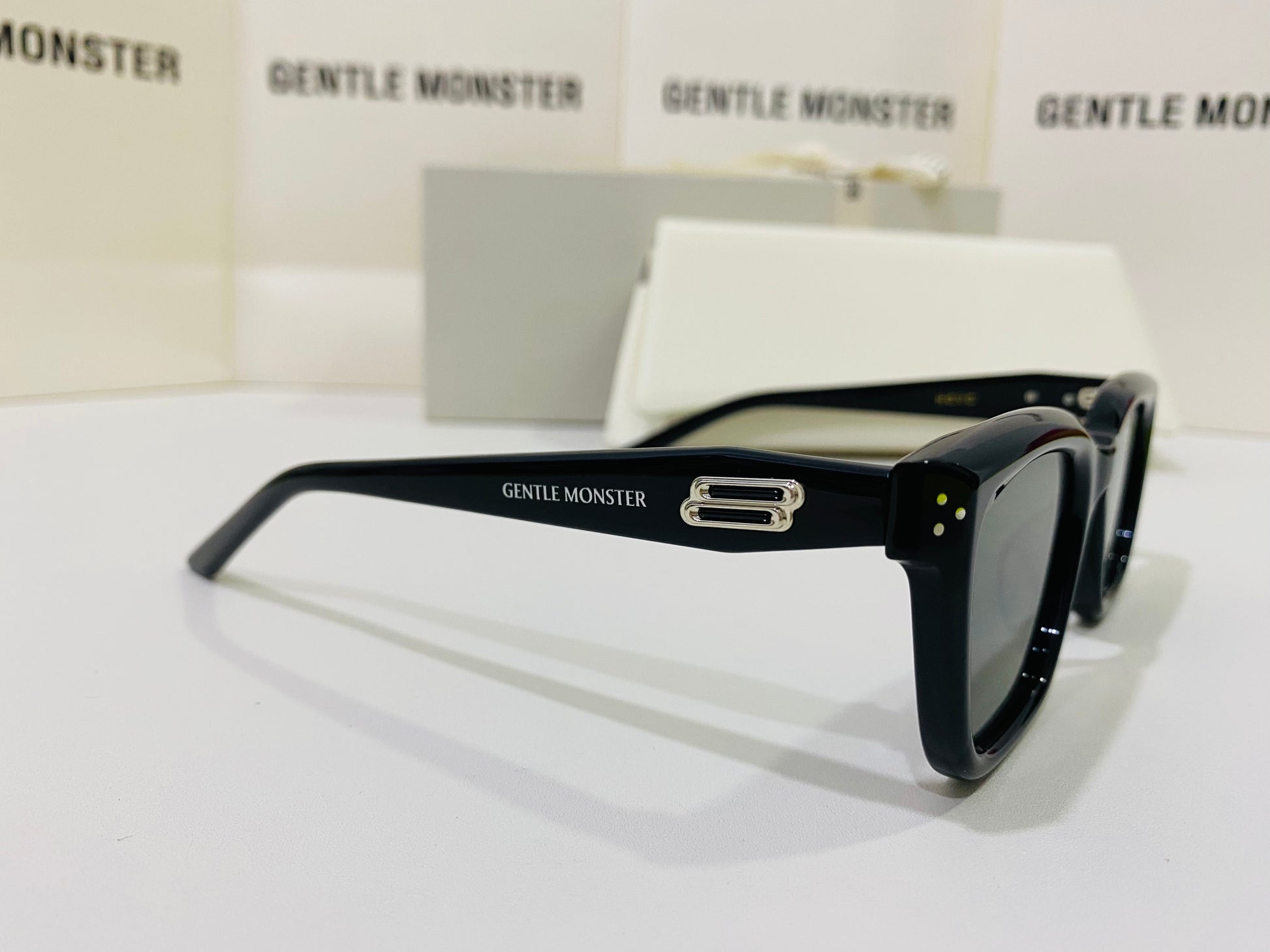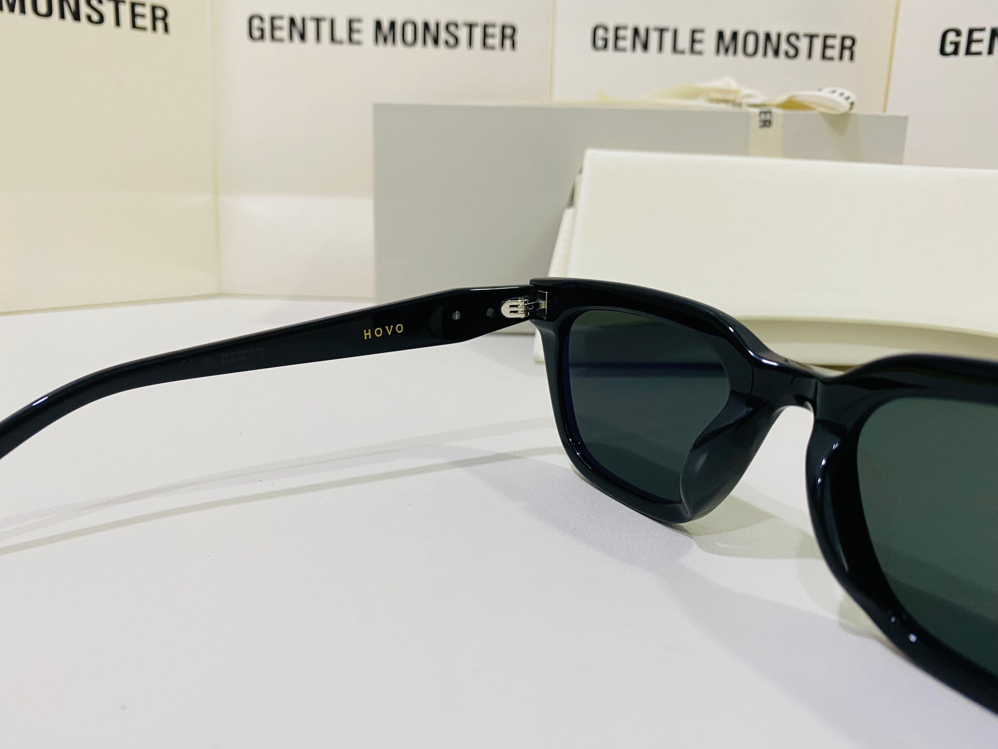 Discover the Hovo 01 sunglasses from Gentle Monster’s 2024 Collection. This piece features a square shape highlighted with straight line details, a simple black frame, and an iconic metal detail on the temples.