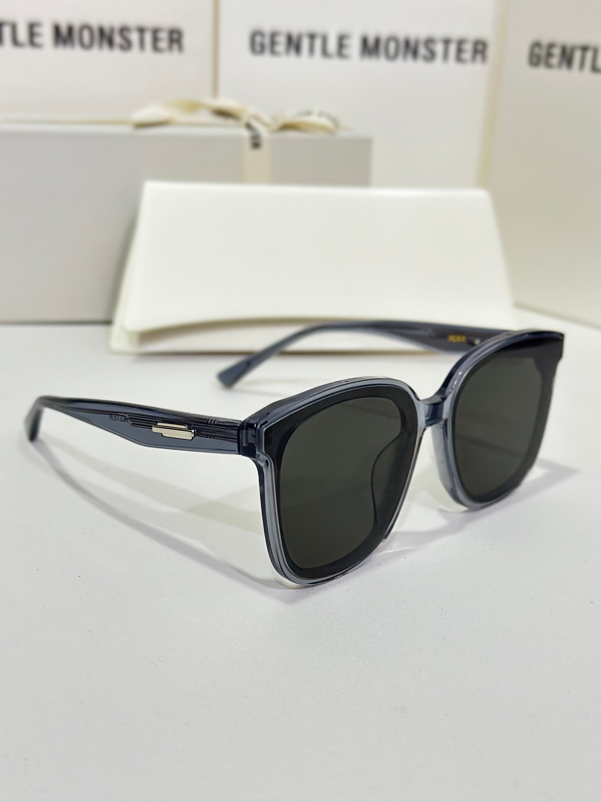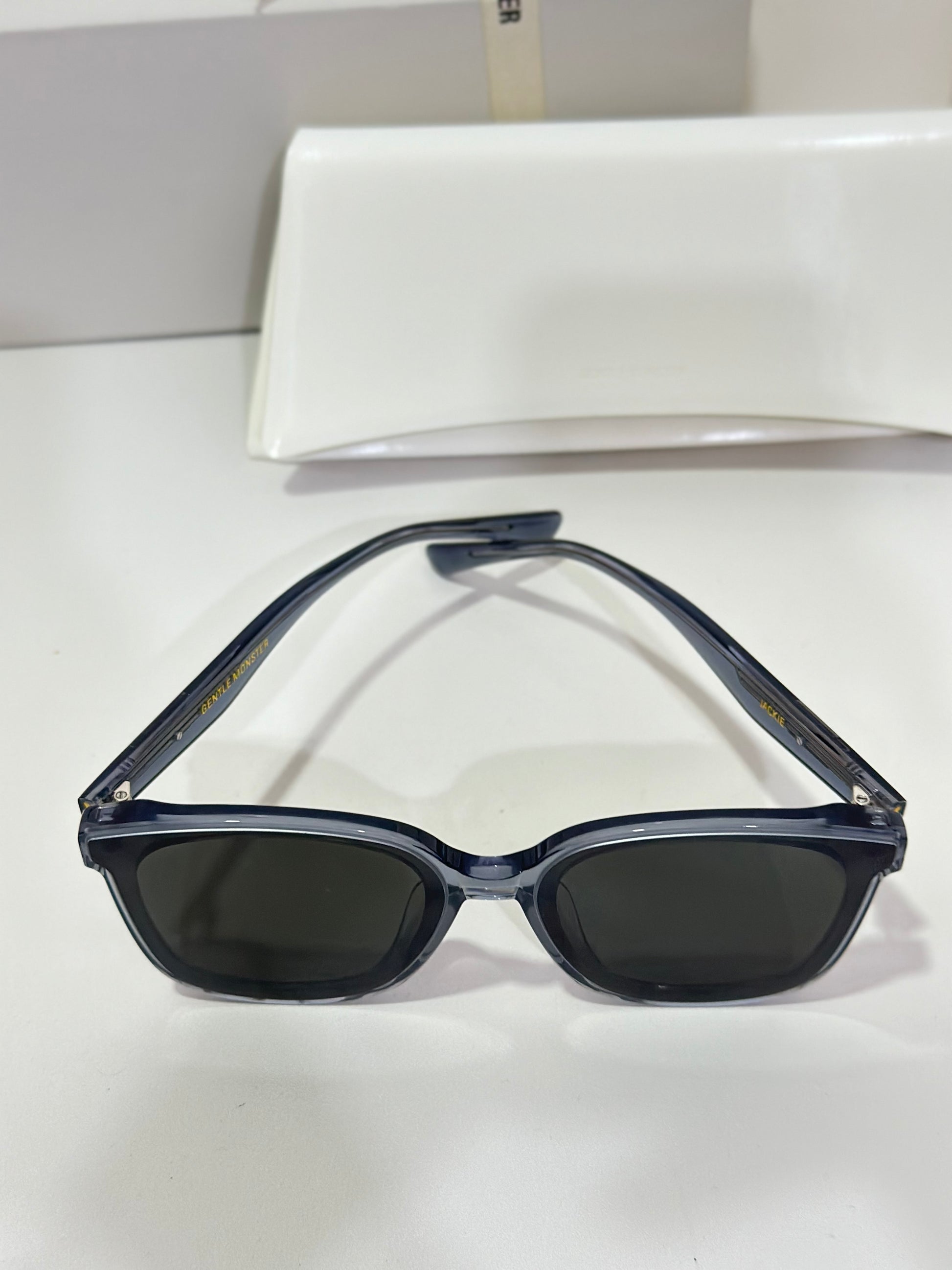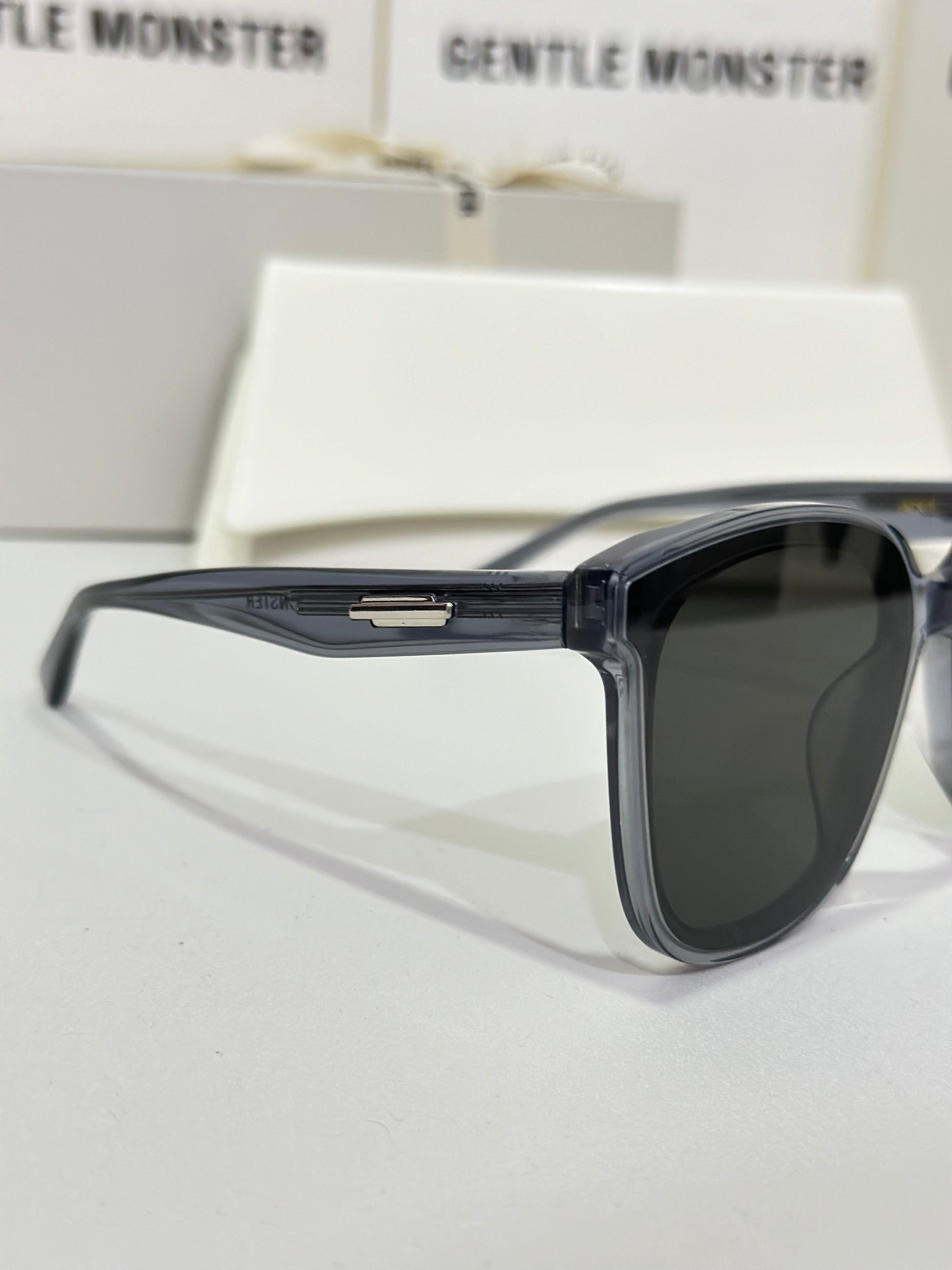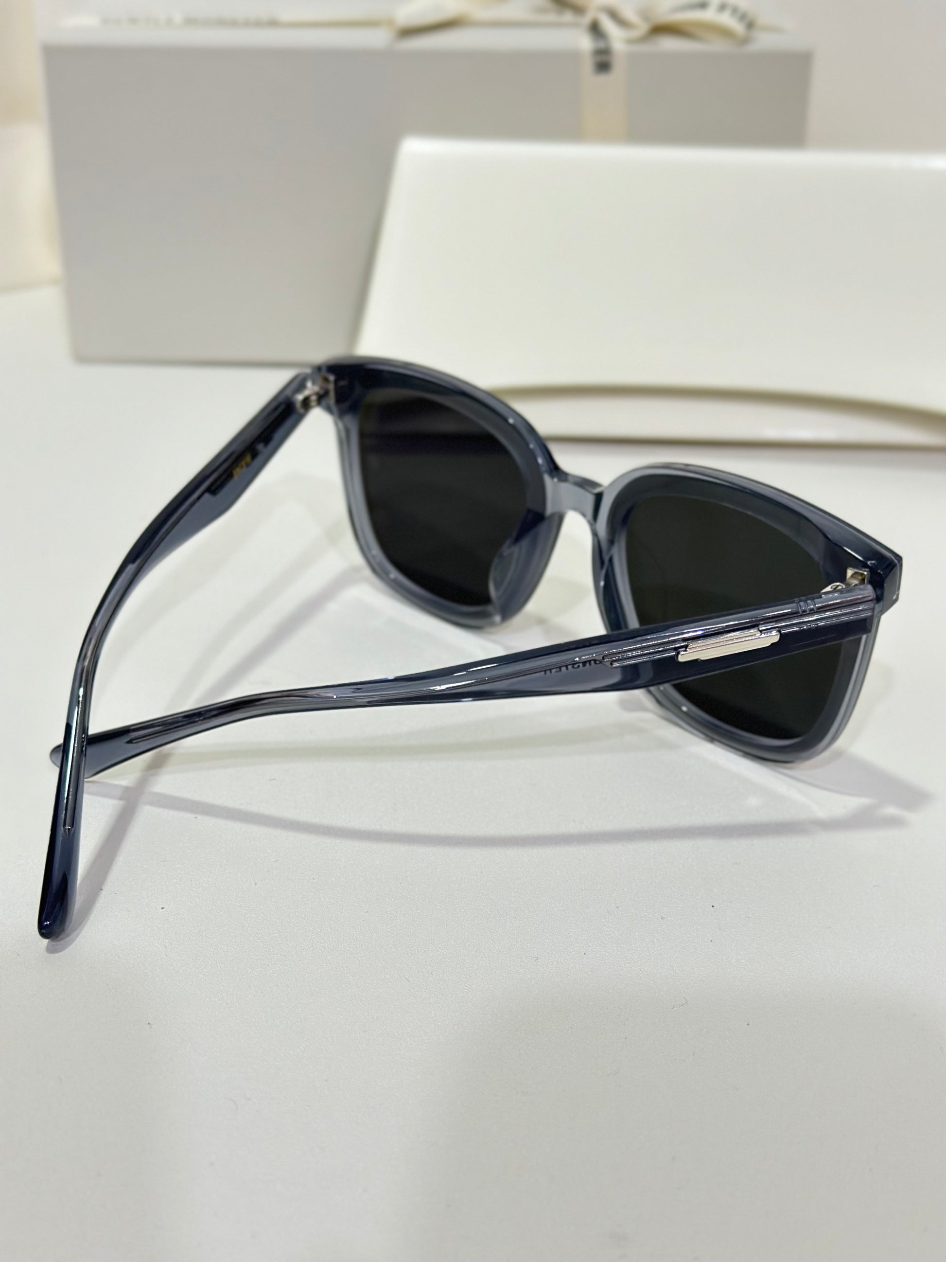 Jackie G3 is a clear grey square acetate Flatba frame with 99.9% UV protected black lenses. This versatile design with soft curves and temples decorated with unique metal details is designed to fit any occasion.