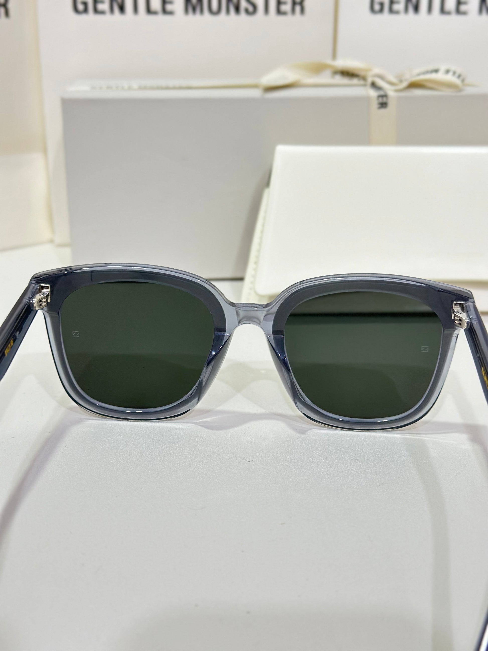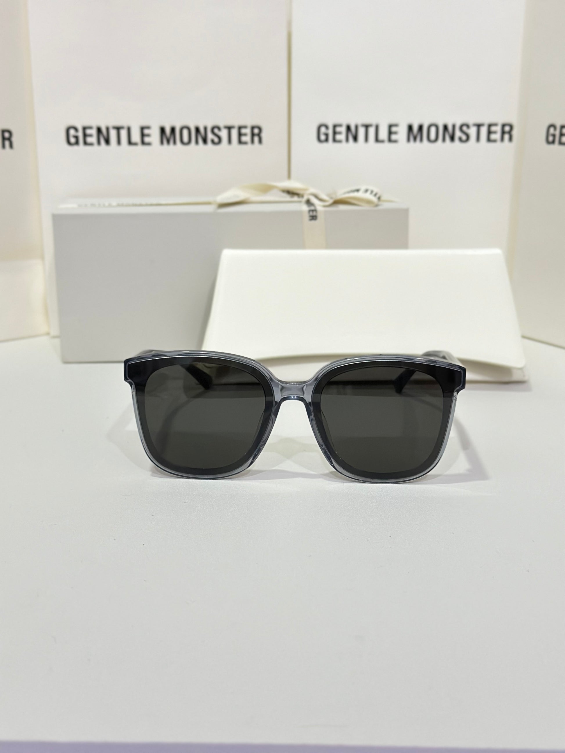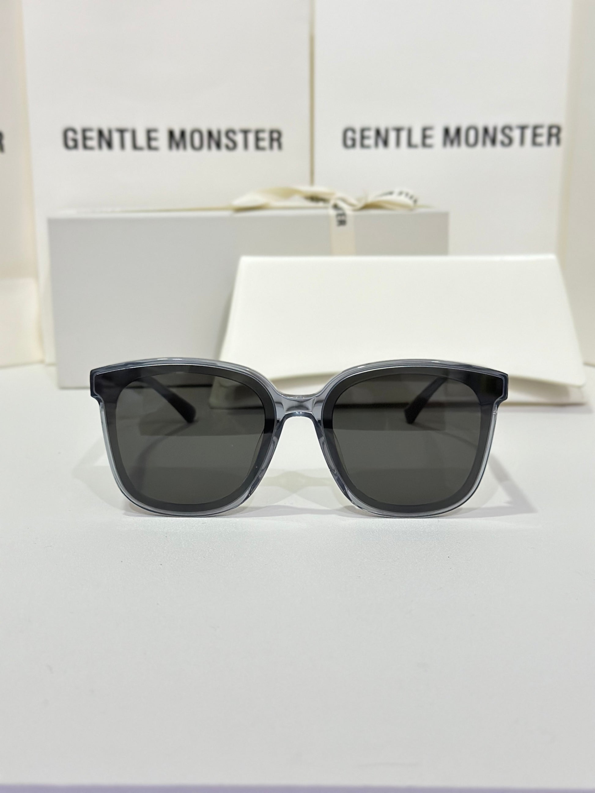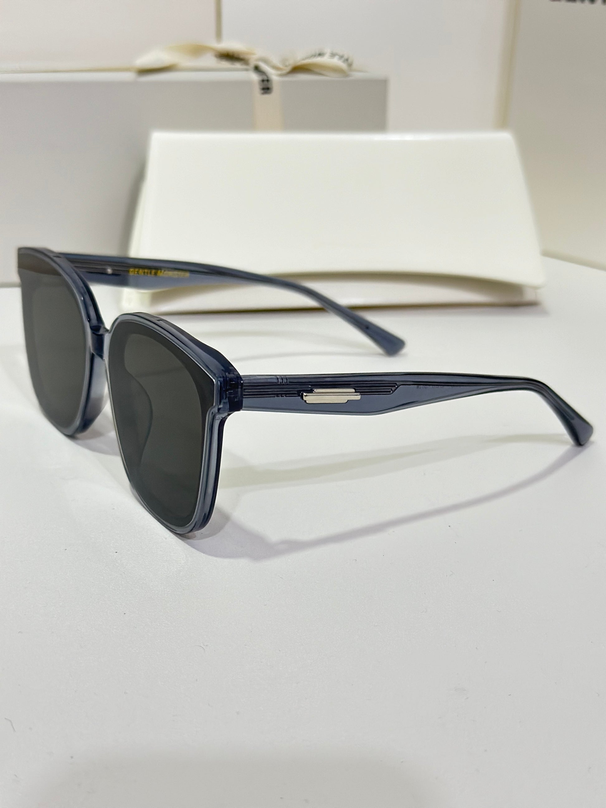 Jackie G3 is a clear grey square acetate Flatba frame with 99.9% UV protected black lenses. This versatile design with soft curves and temples decorated with unique metal details is designed to fit any occasion.