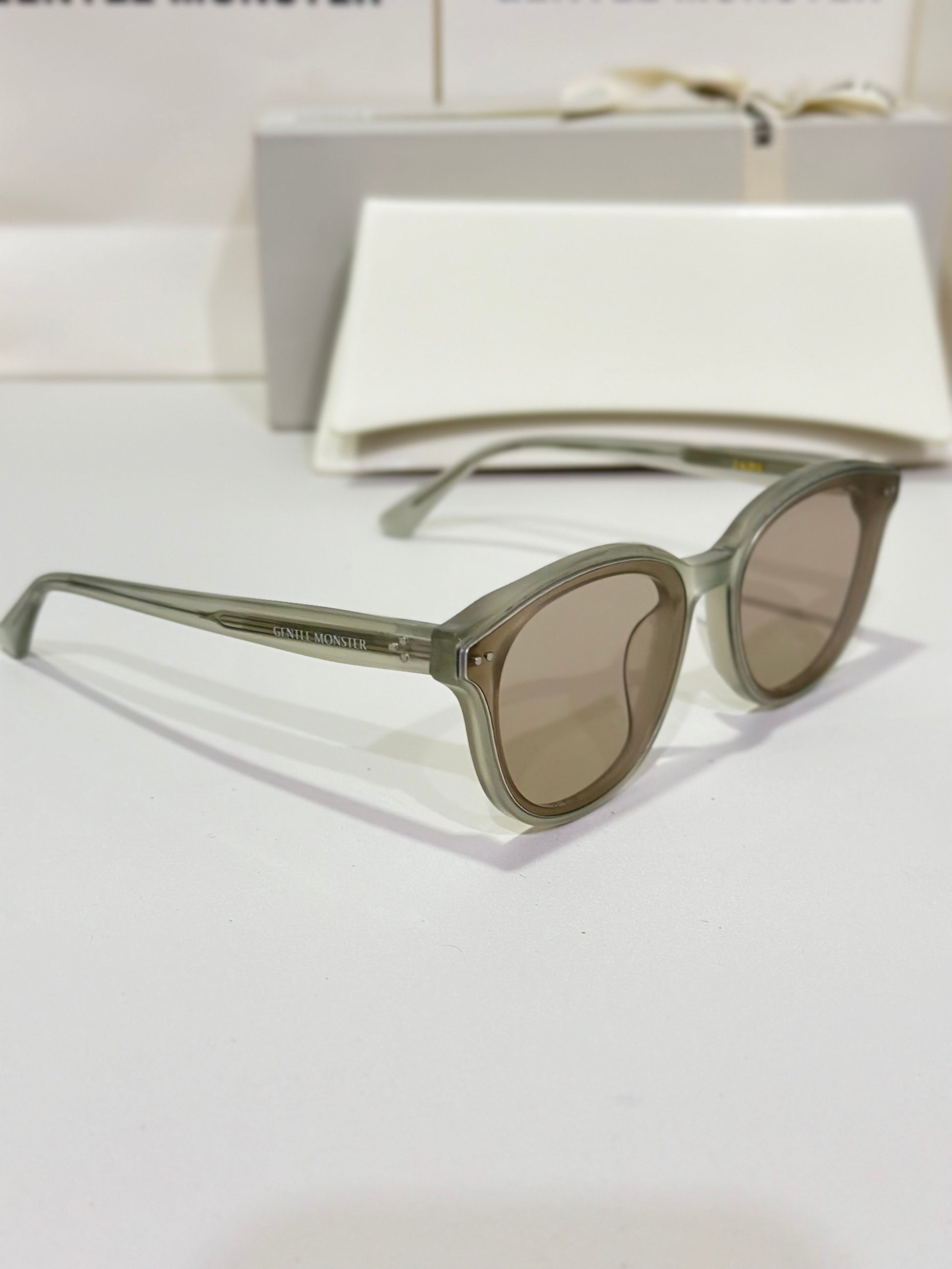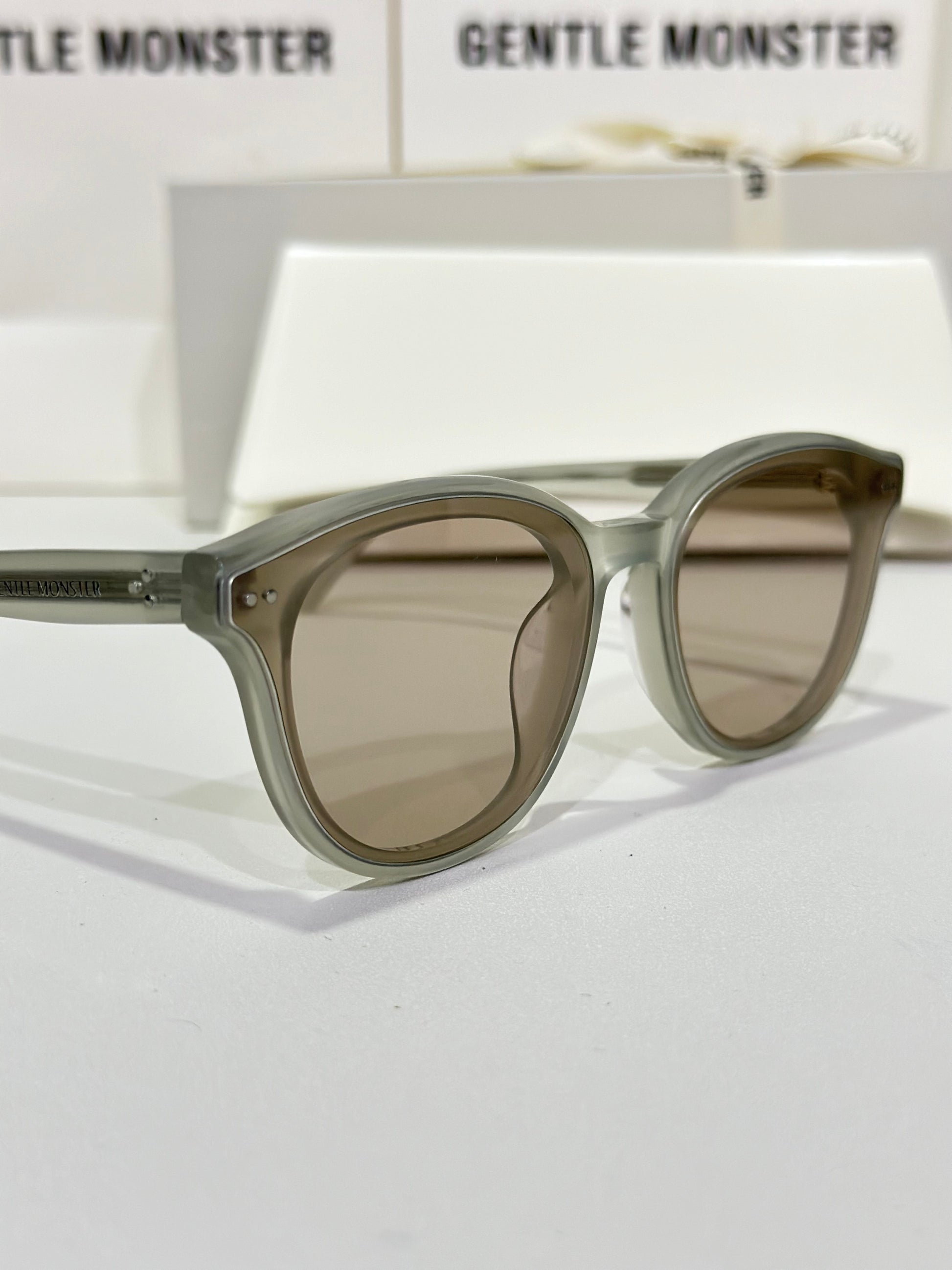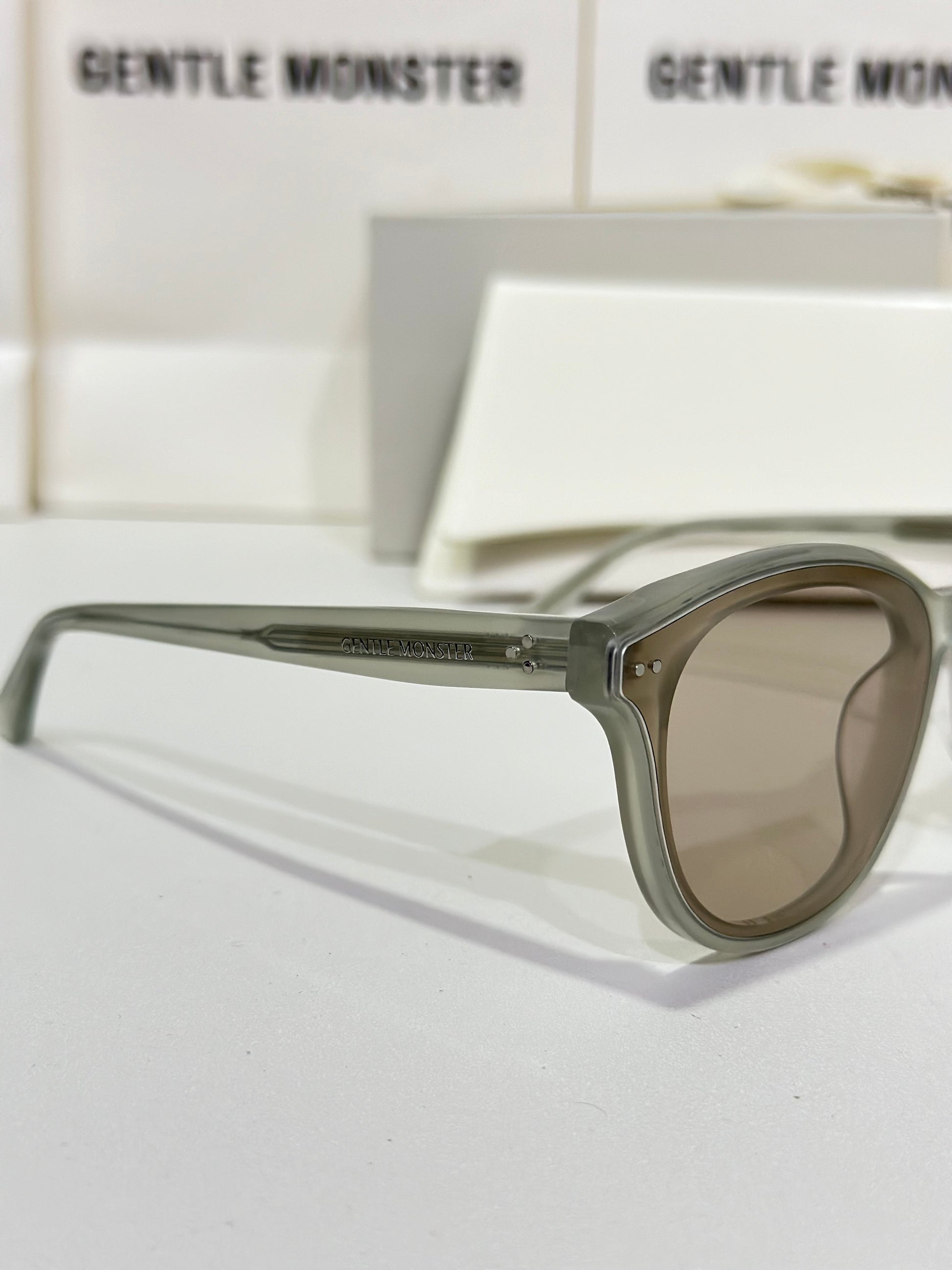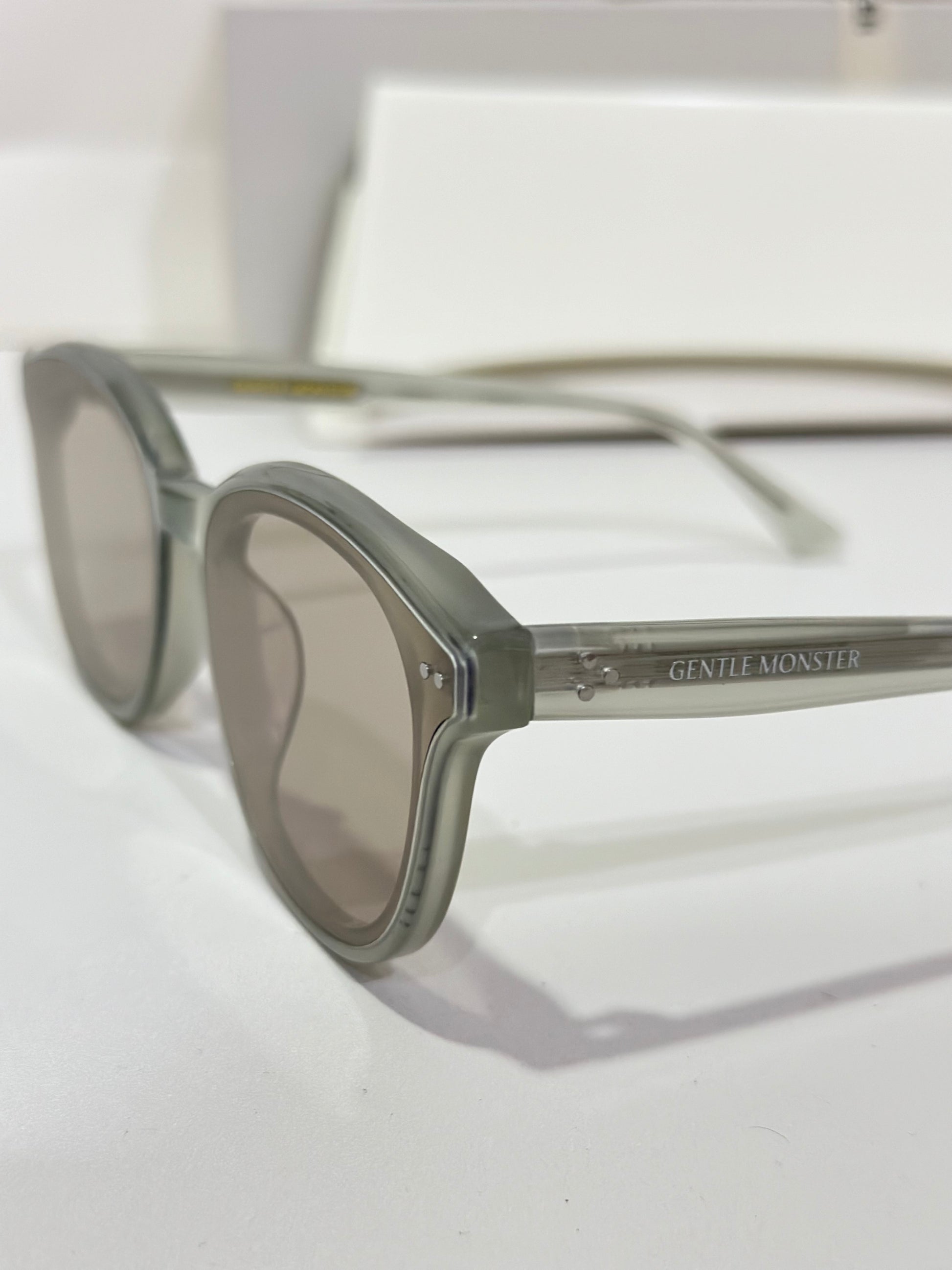 Discover the Jade GC10 sunglasses from Gentle Monster’s 2024 Collection. This piece, with its softly flowing round shape and gray frame paired with modern brown mirror lenses, adds a unique touch to any look.
