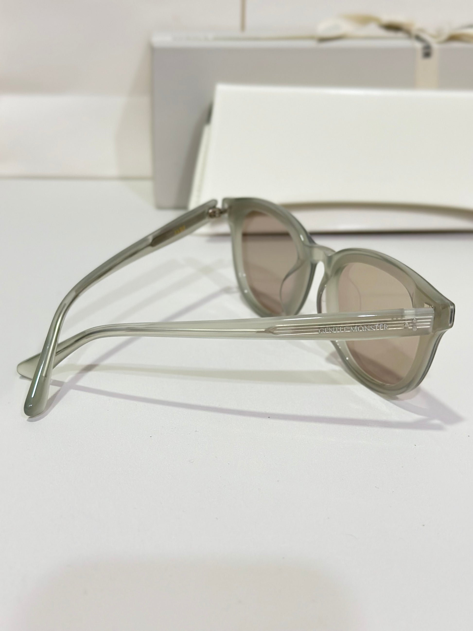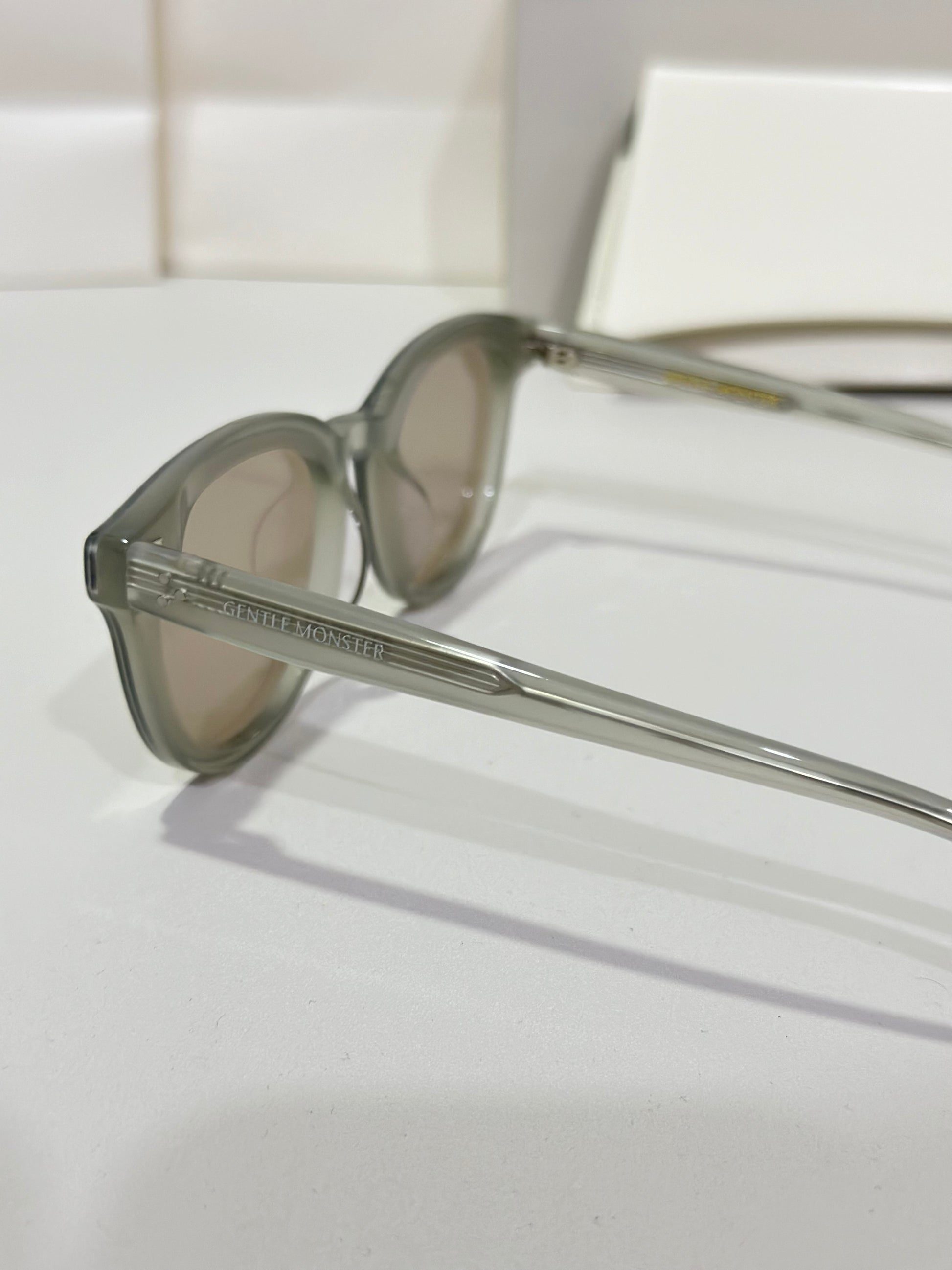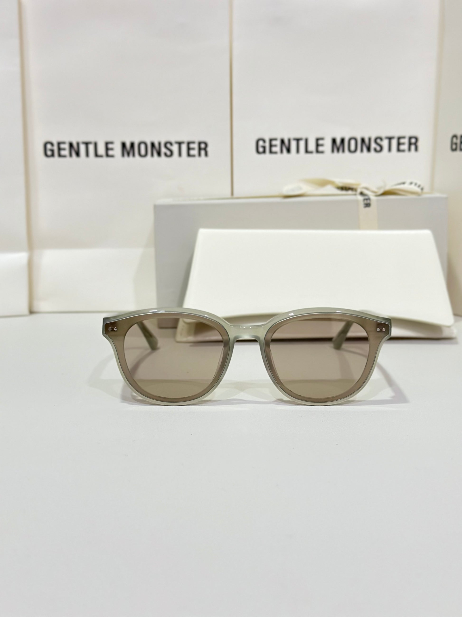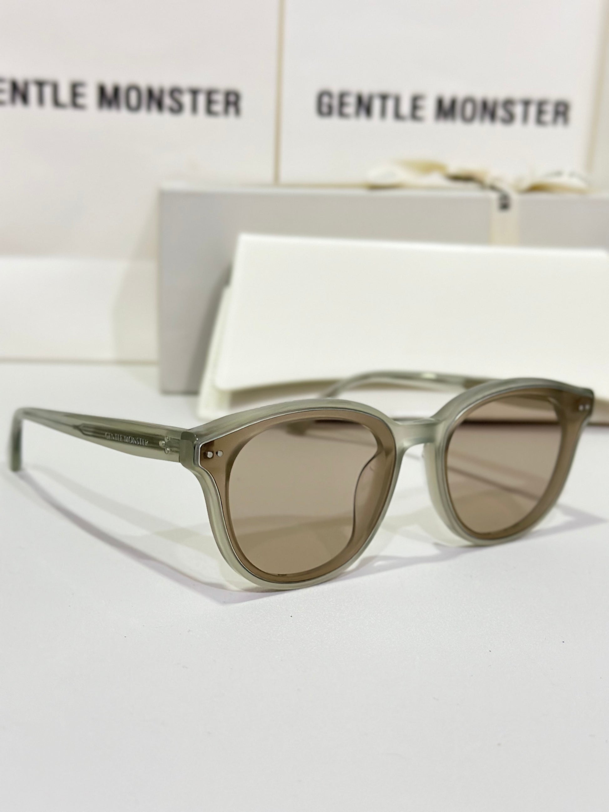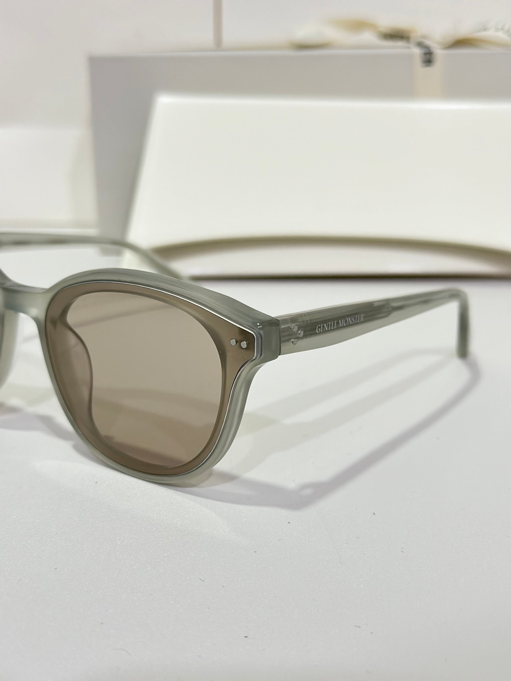 Discover the Jade GC10 sunglasses from Gentle Monster’s 2024 Collection. This piece, with its softly flowing round shape and gray frame paired with modern brown mirror lenses, adds a unique touch to any look.