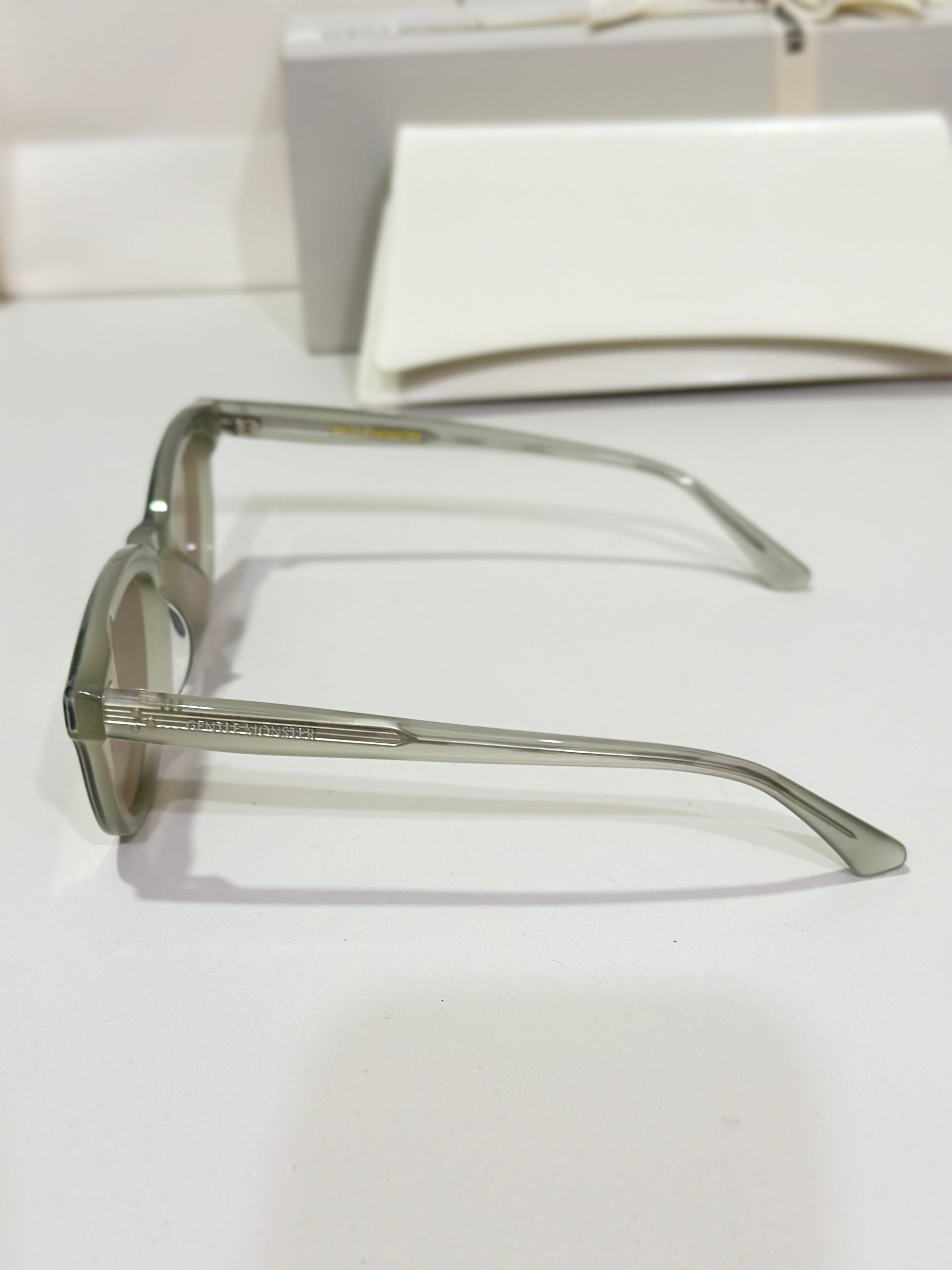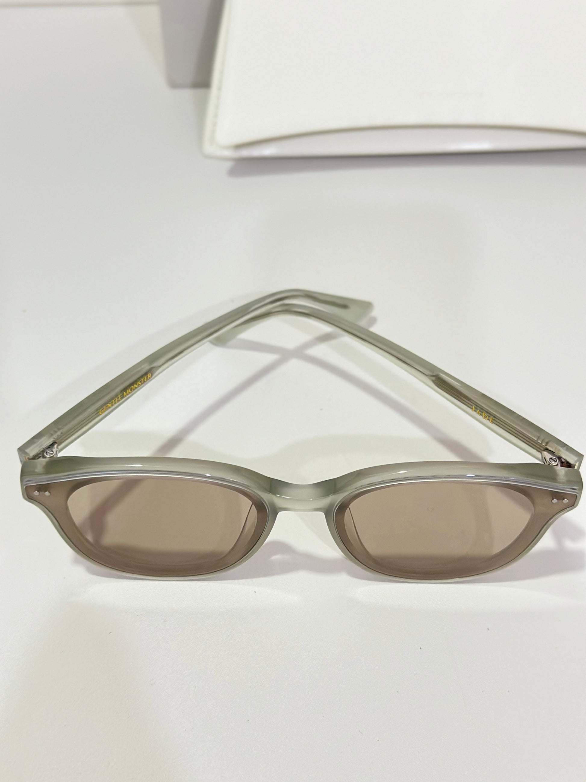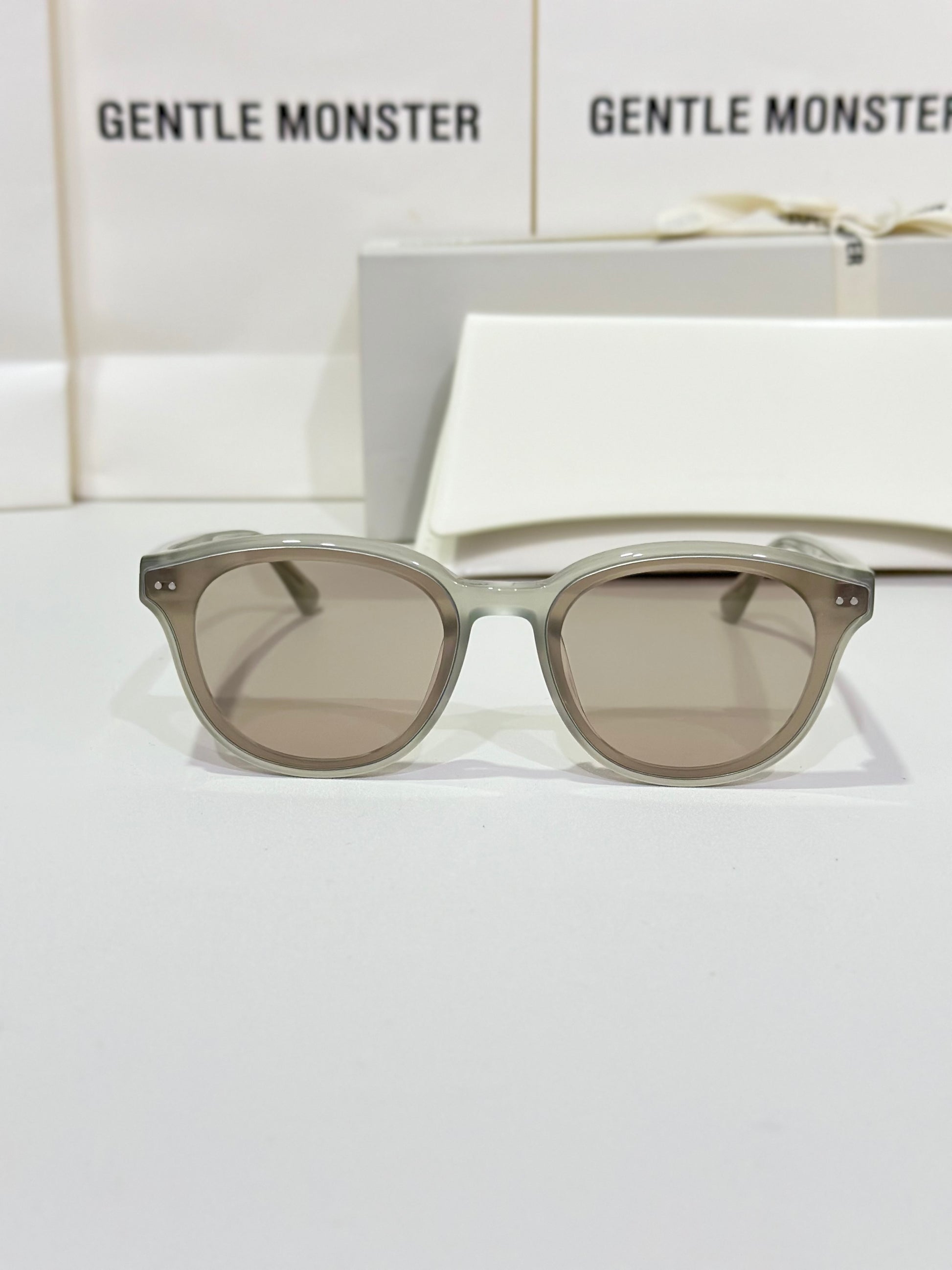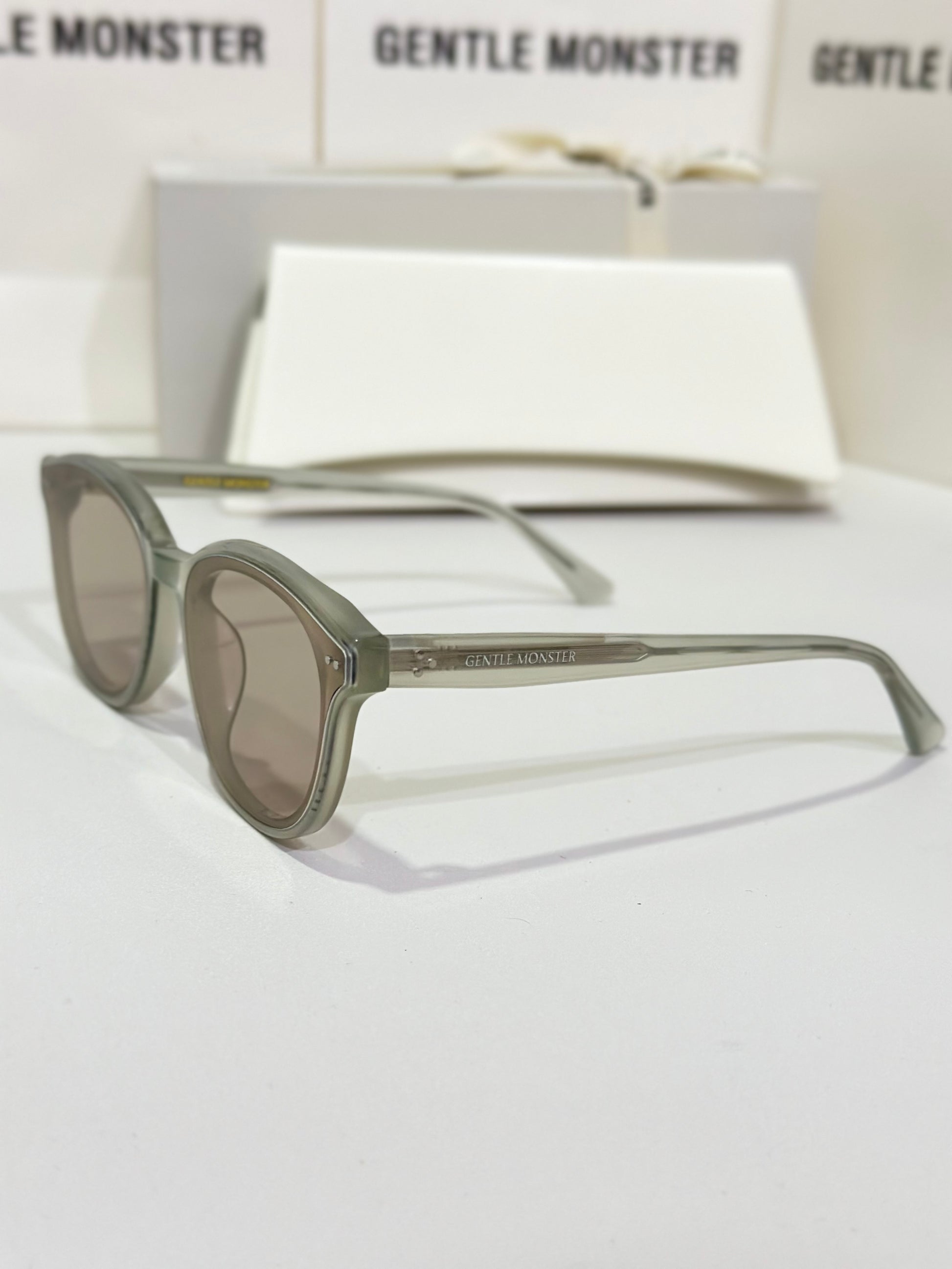 Discover the Jade GC10 sunglasses from Gentle Monster’s 2024 Collection. This piece, with its softly flowing round shape and gray frame paired with modern brown mirror lenses, adds a unique touch to any look.