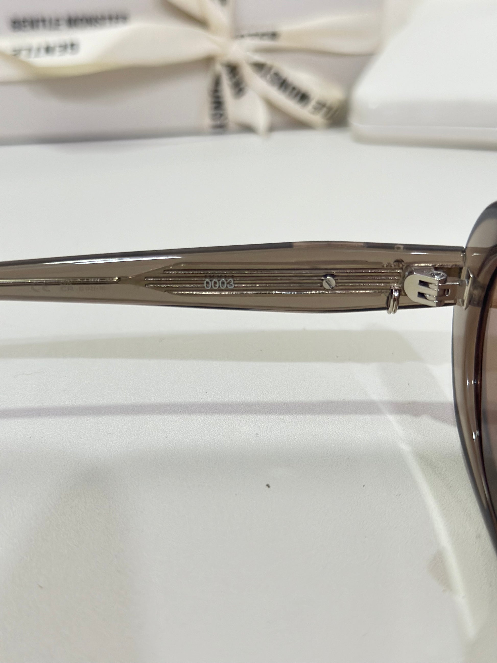 Brown acetate frameBrown lensesOval shapeRing detail on the left templeCrystal detail on both templesFrame Front: 145.8mm, Frame Side: 144.6mm