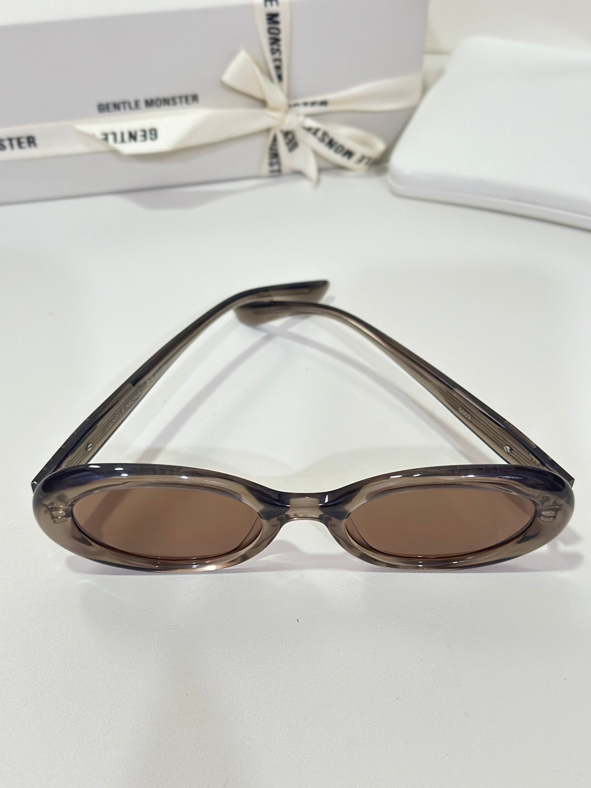 Discover the 0003 BRC8 sunglasses from Gentle Monster’s collaboration collection with global artist CAI XU KUN. This model combines an elegant brown frame with a modern oval silhouette. The ring detail on the left temple adds an edgy touch to any look while inviting the wearer to a futuristic experience.