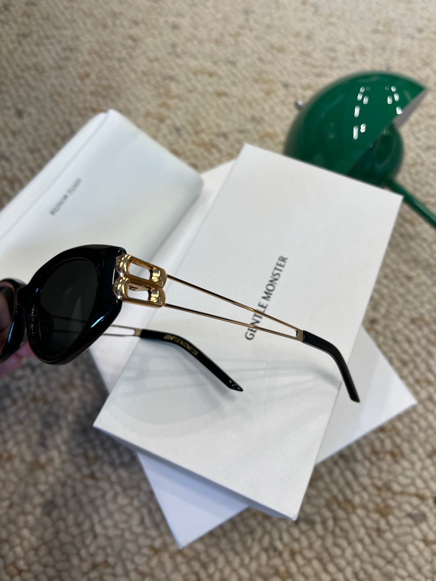 Sophisticated Cat-eye Sunglasses in Black Mixed Materials