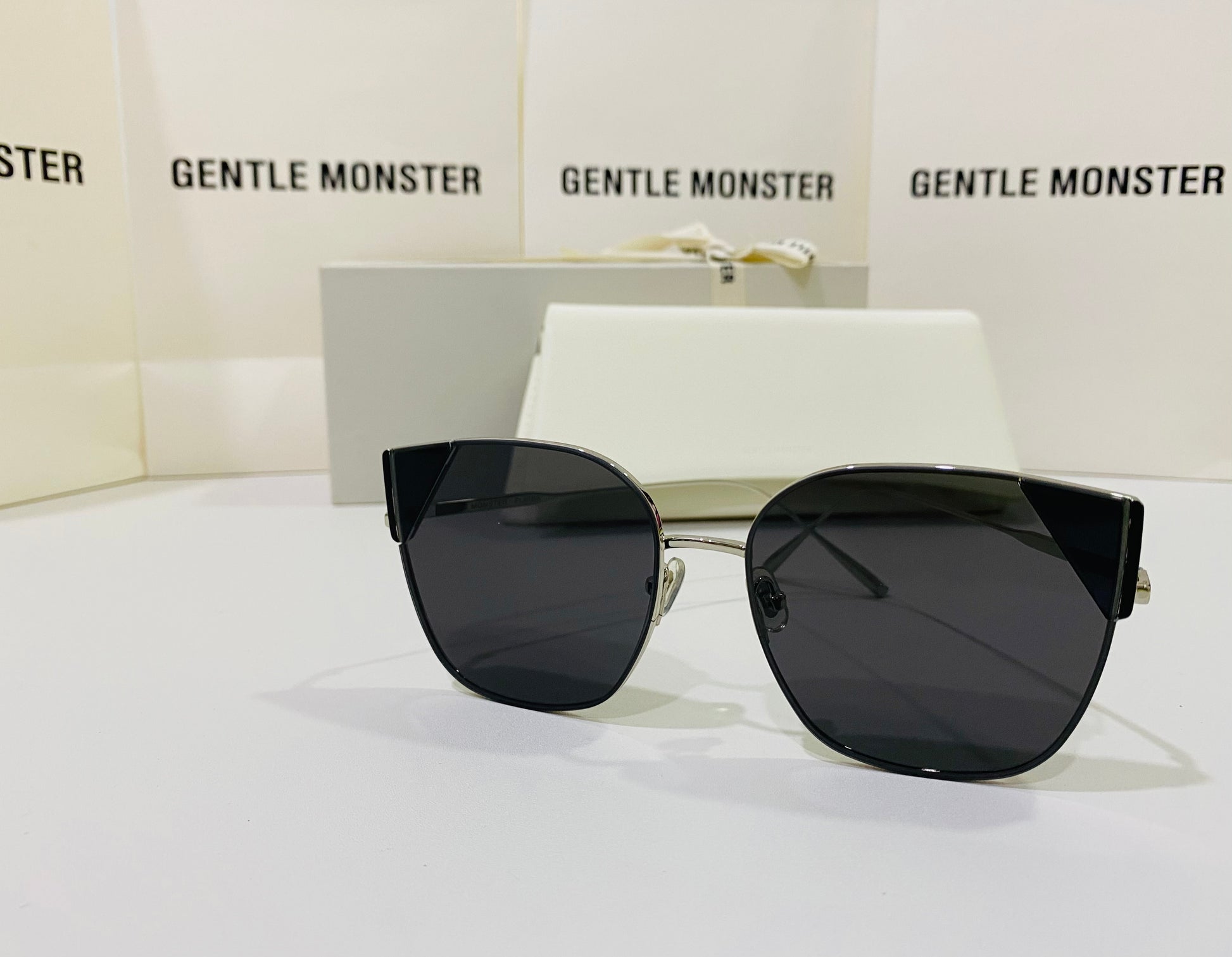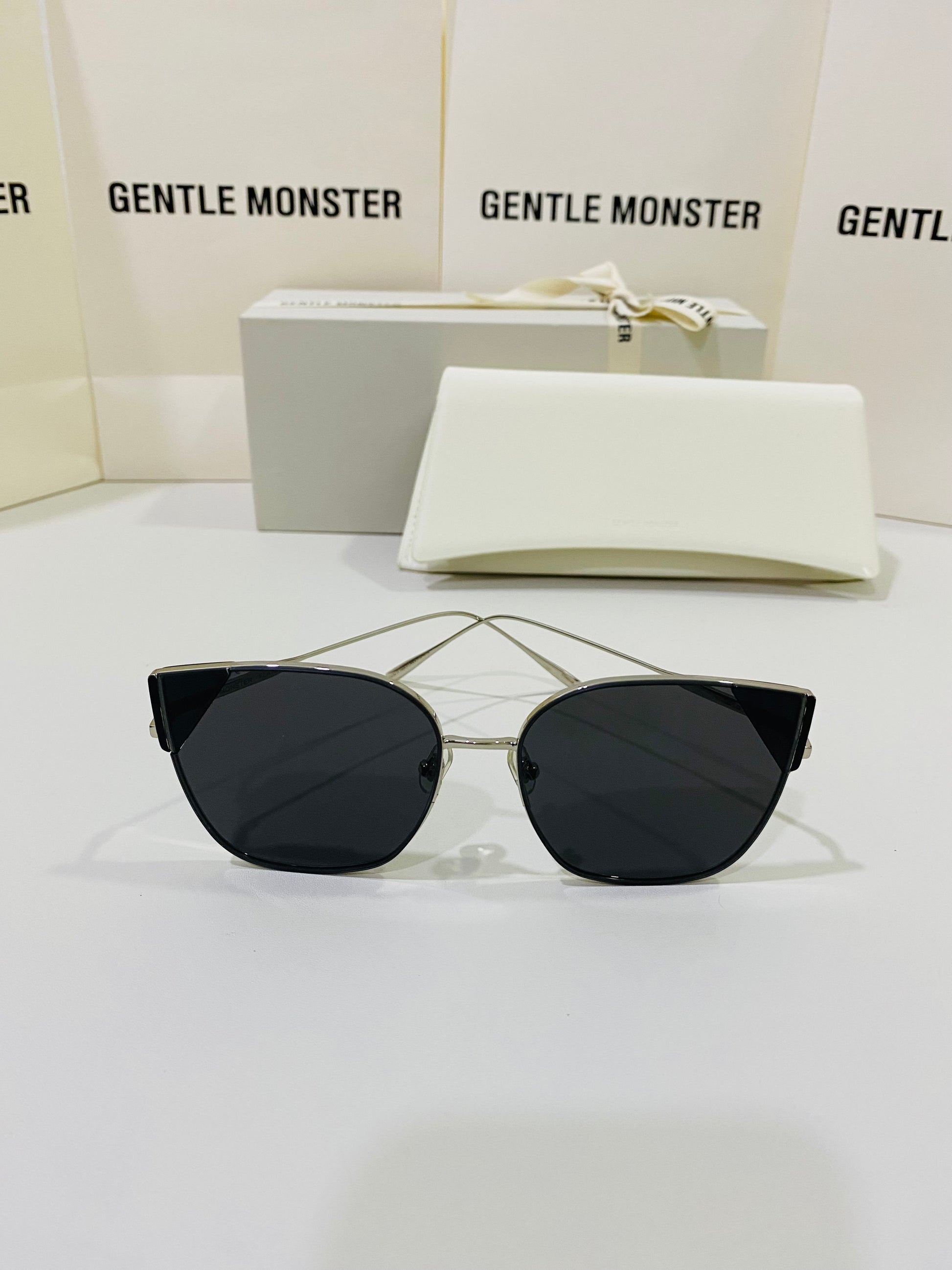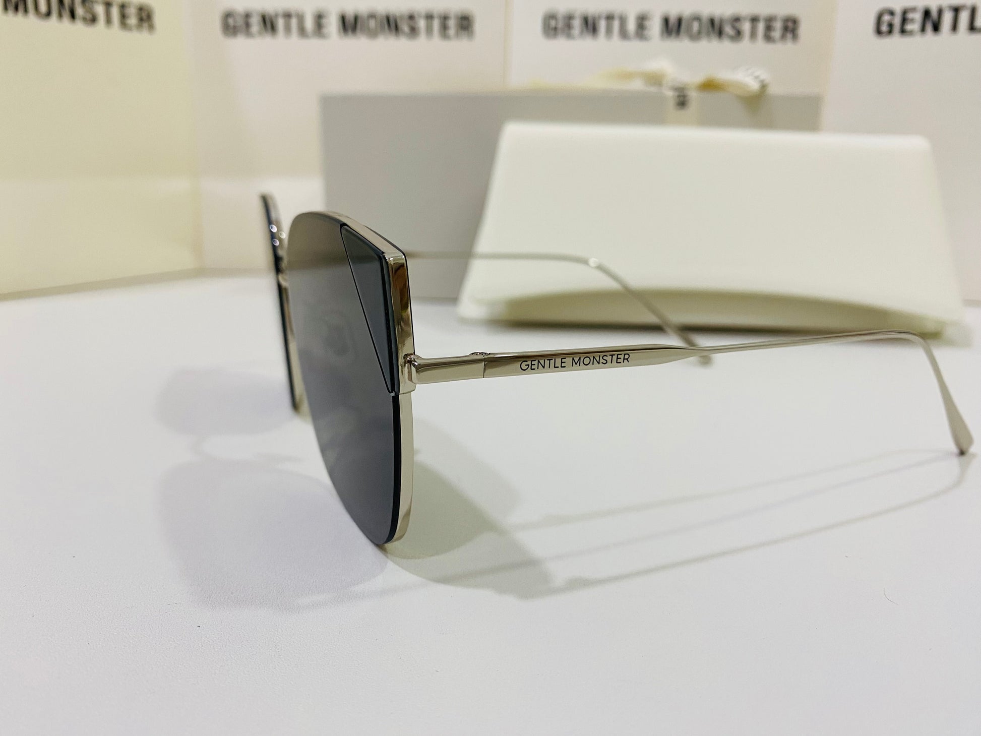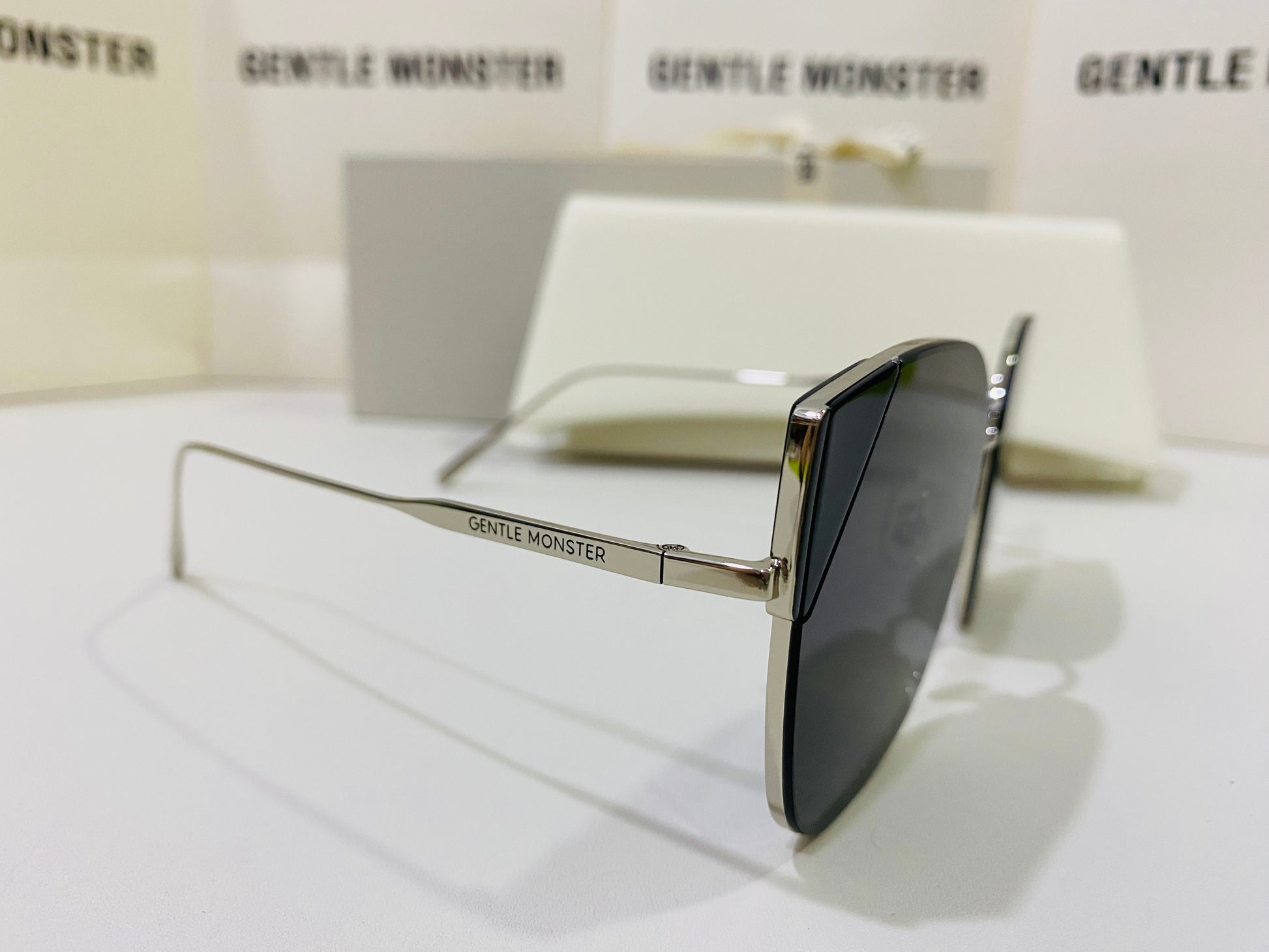 Lala G2 is an acetate and metal combination frame introduced in the 2020 Eyewear collection. The triangular acetate piece boldly accentuates the sunglasses while flawlessly blending in with the rest of the lens. The 99.9% UV protected black lenses and silver metal temples engraved with Gentle Monster complete this frame.