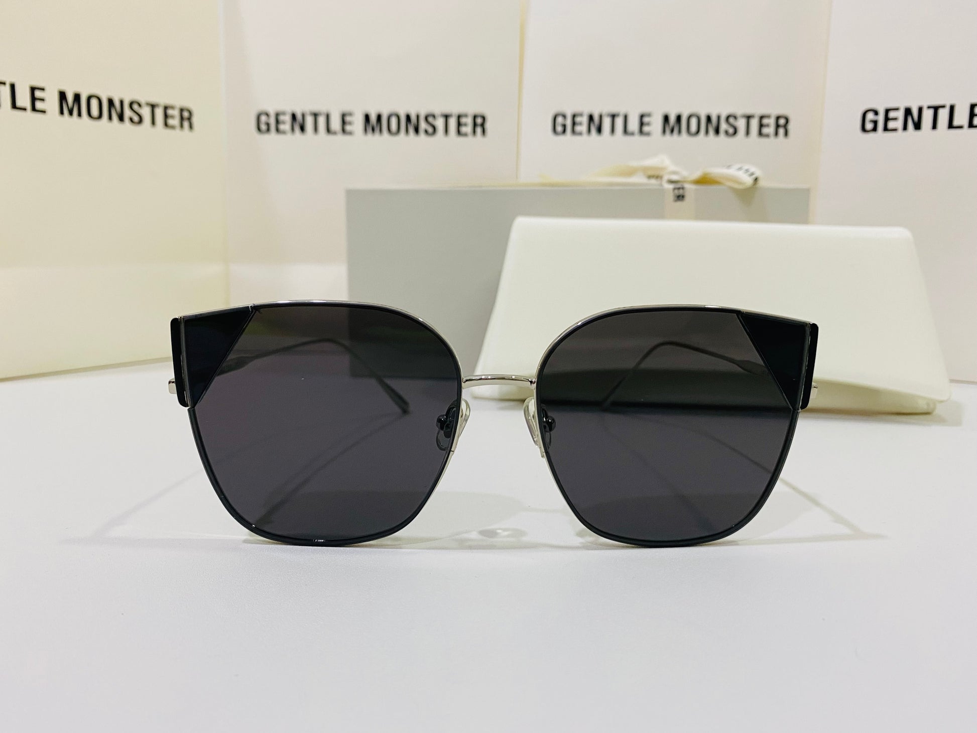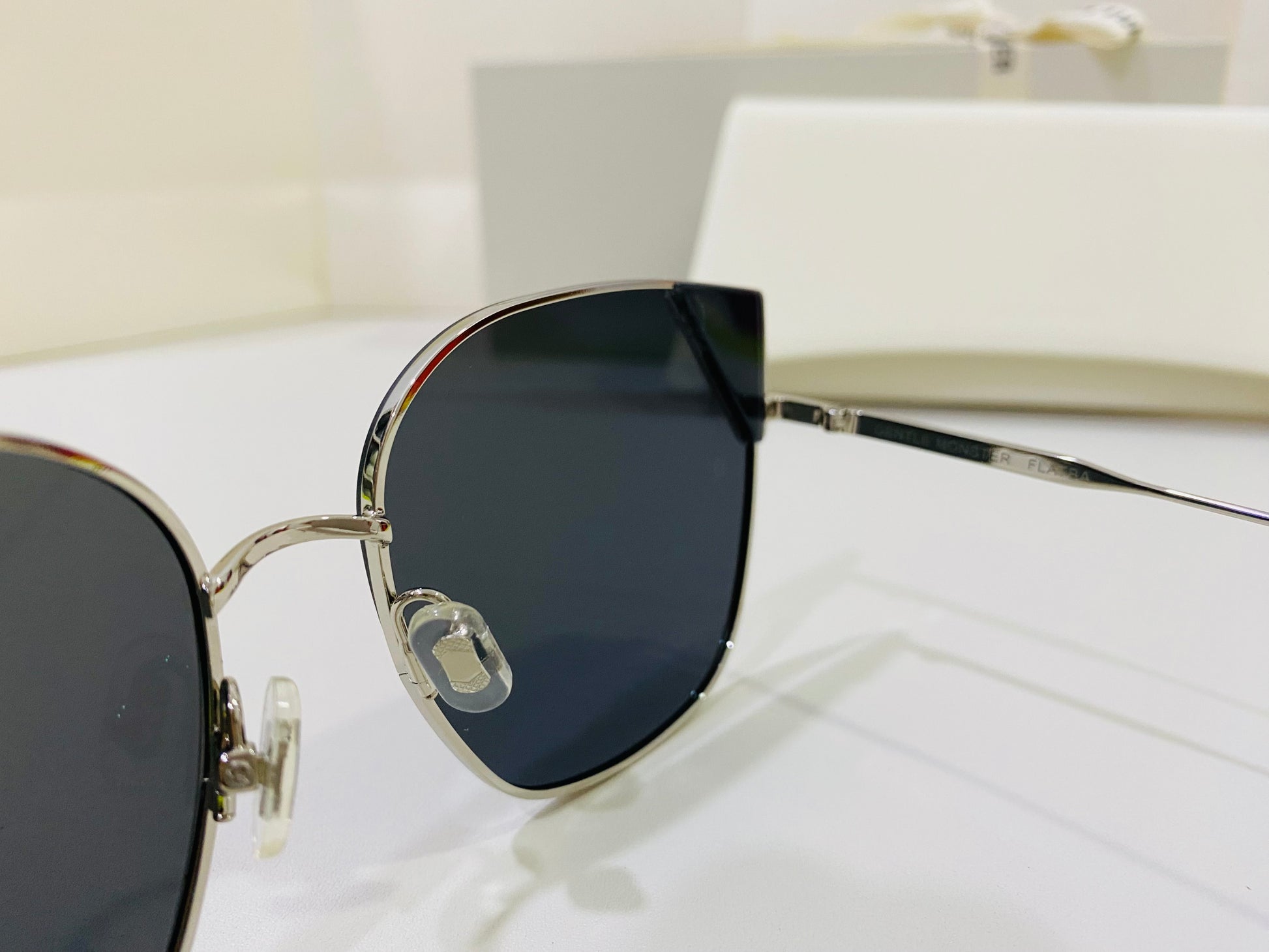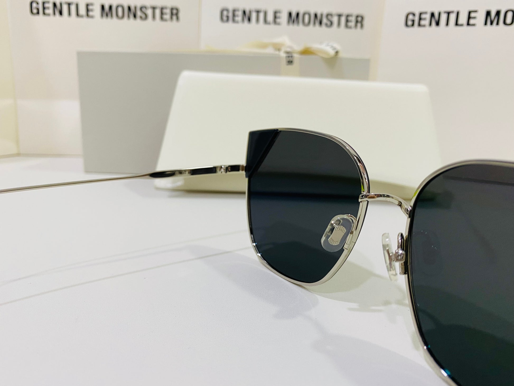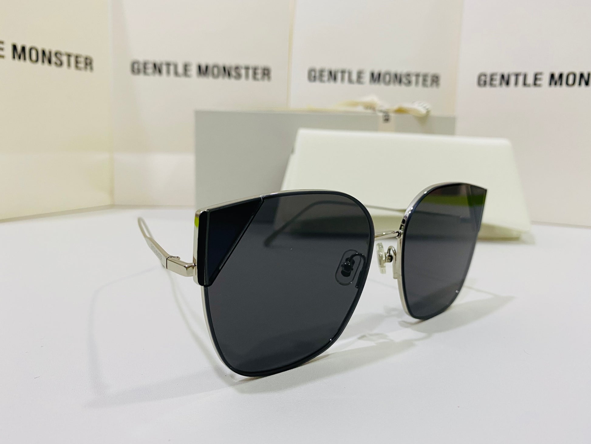 Lala G2 is an acetate and metal combination frame introduced in the 2020 Eyewear collection. The triangular acetate piece boldly accentuates the sunglasses while flawlessly blending in with the rest of the lens. The 99.9% UV protected black lenses and silver metal temples engraved with Gentle Monster complete this frame.