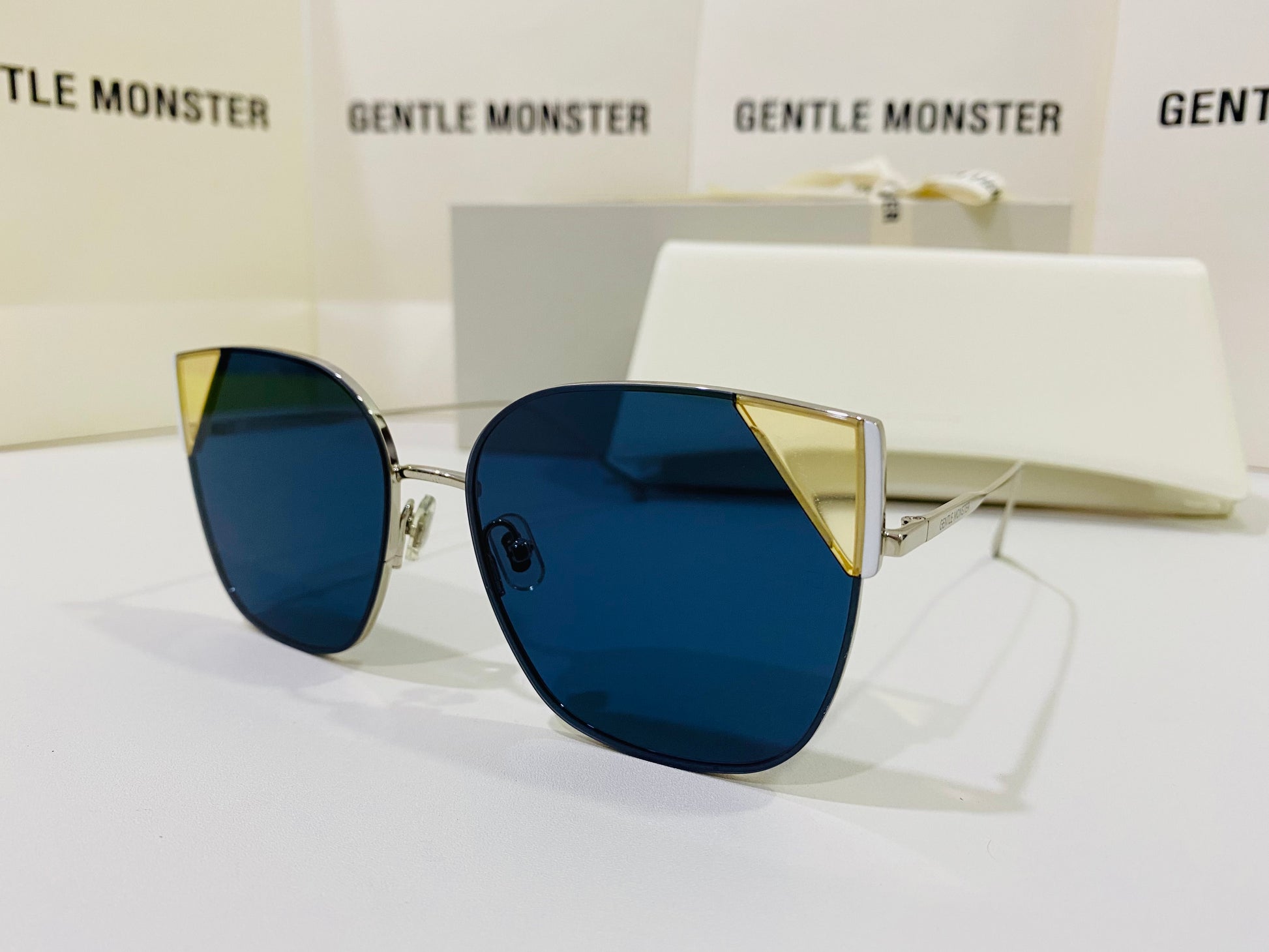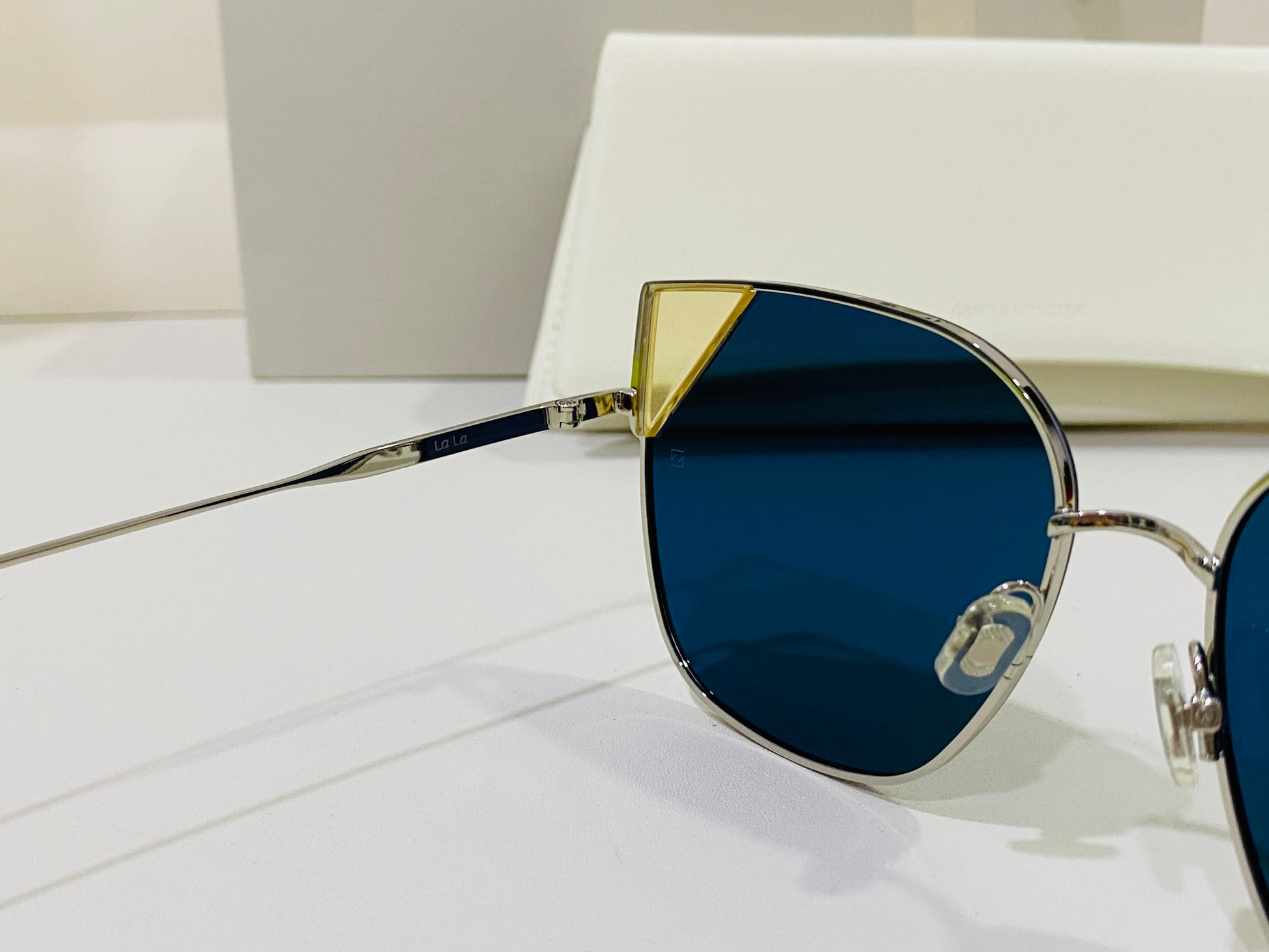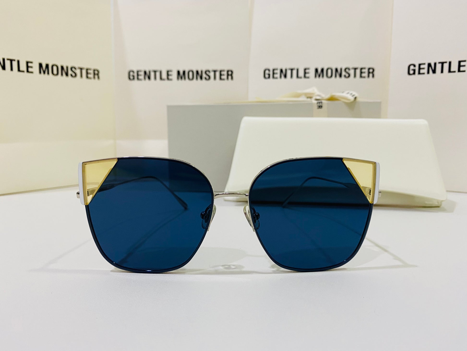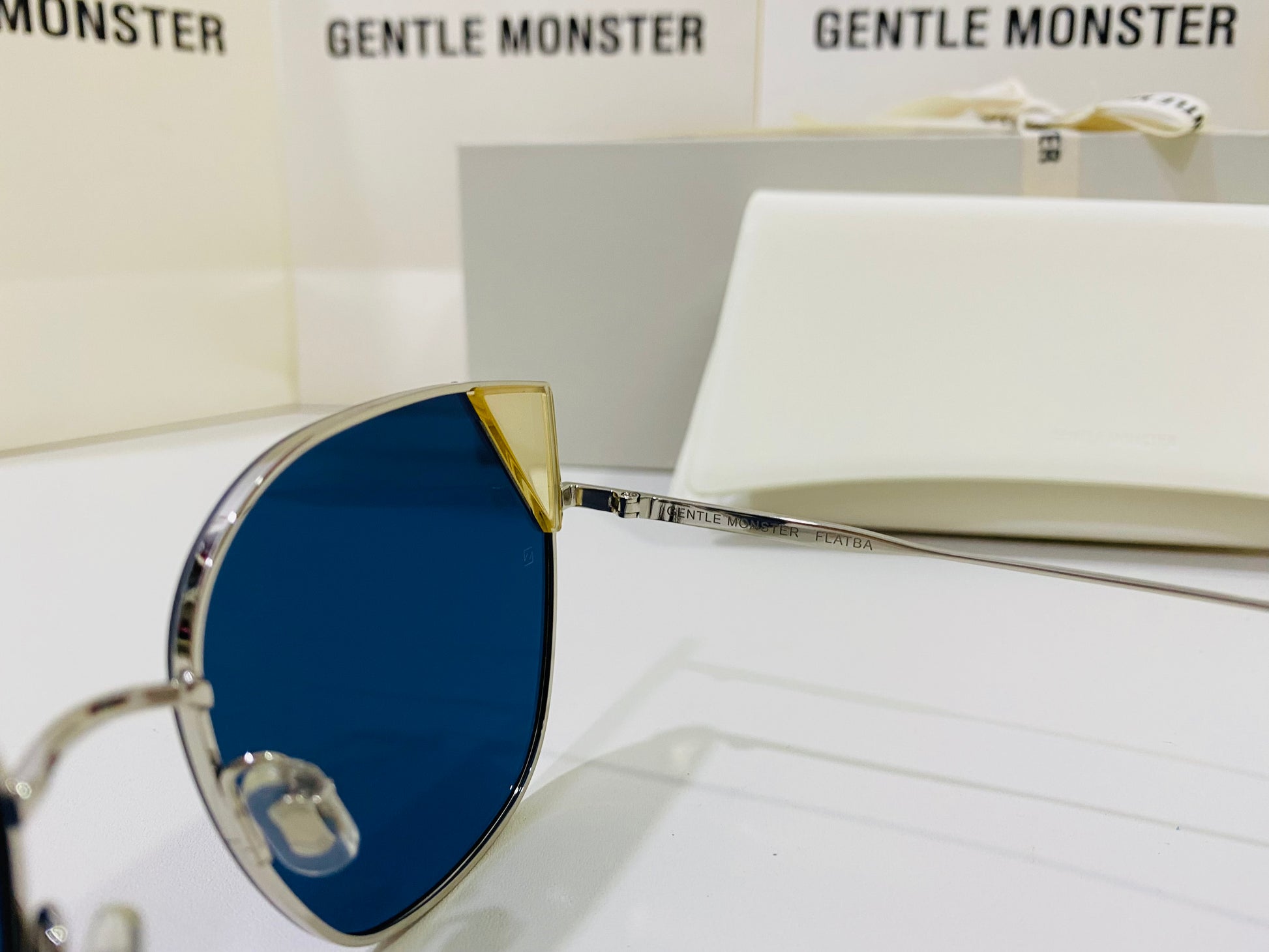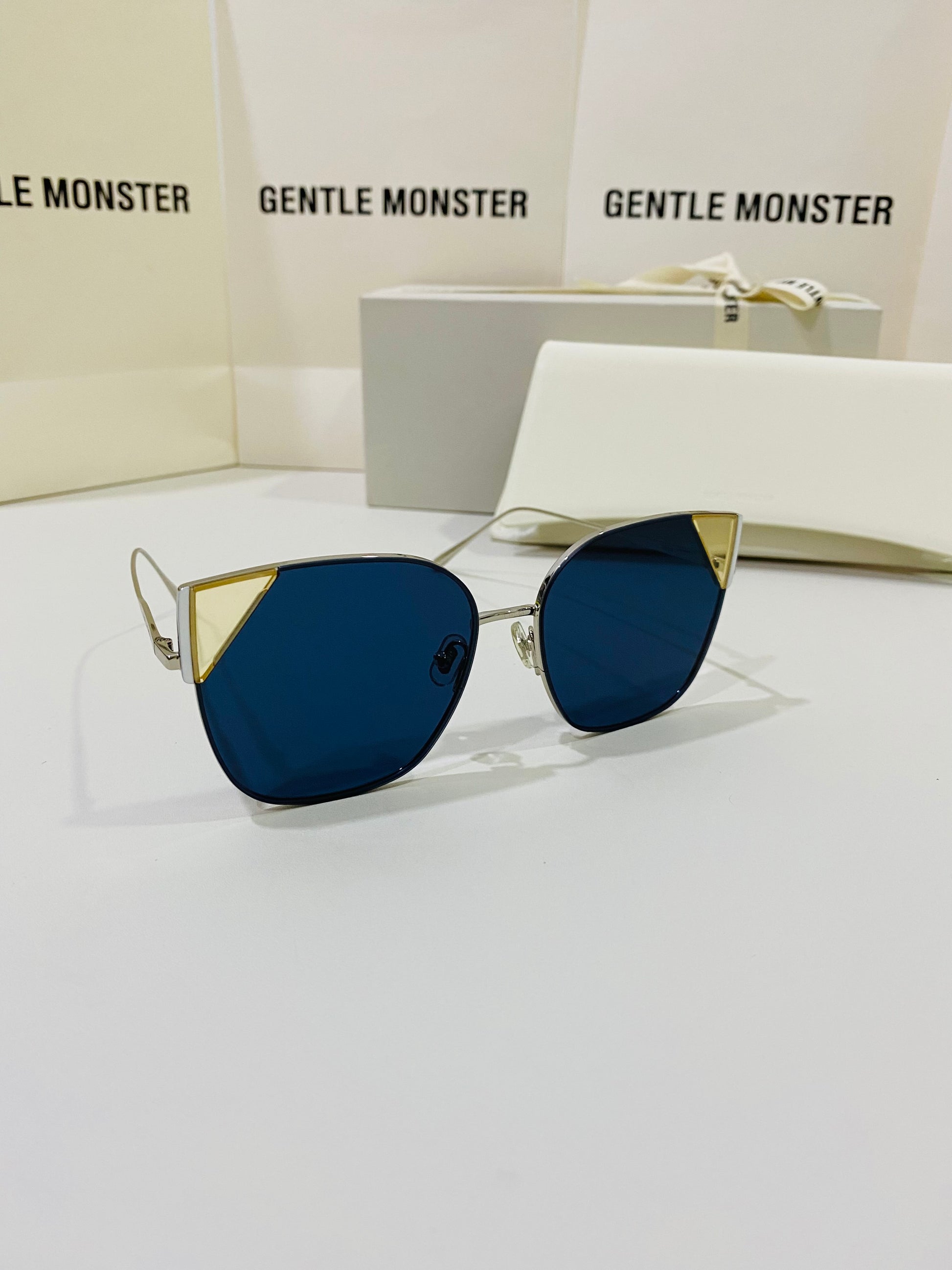 Lala YC1 is an acetate and metal combination frame introduced in the 2020 Eyewear collection. The triangular acetate piece boldly accentuates the sunglasses while flawlessly blending in with the rest of the lens. The 99.9% UV protected navy lenses and silver metal temples engraved with Gentle Monster complete this frame.