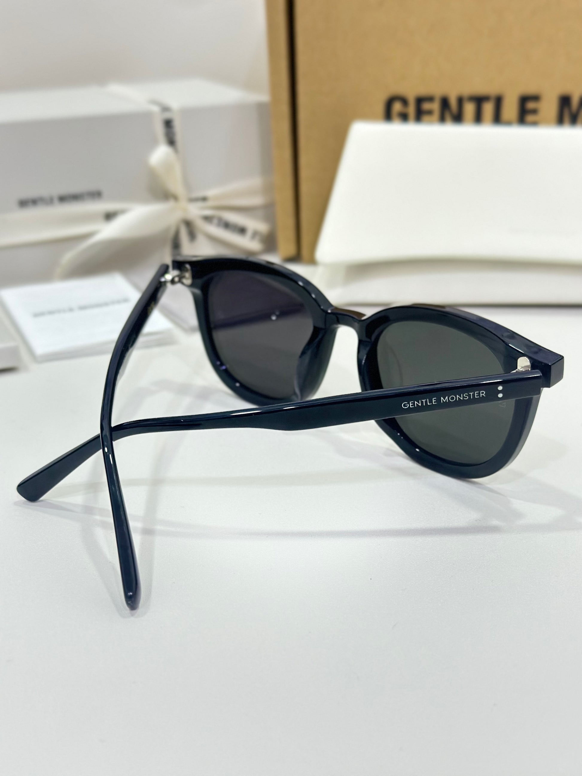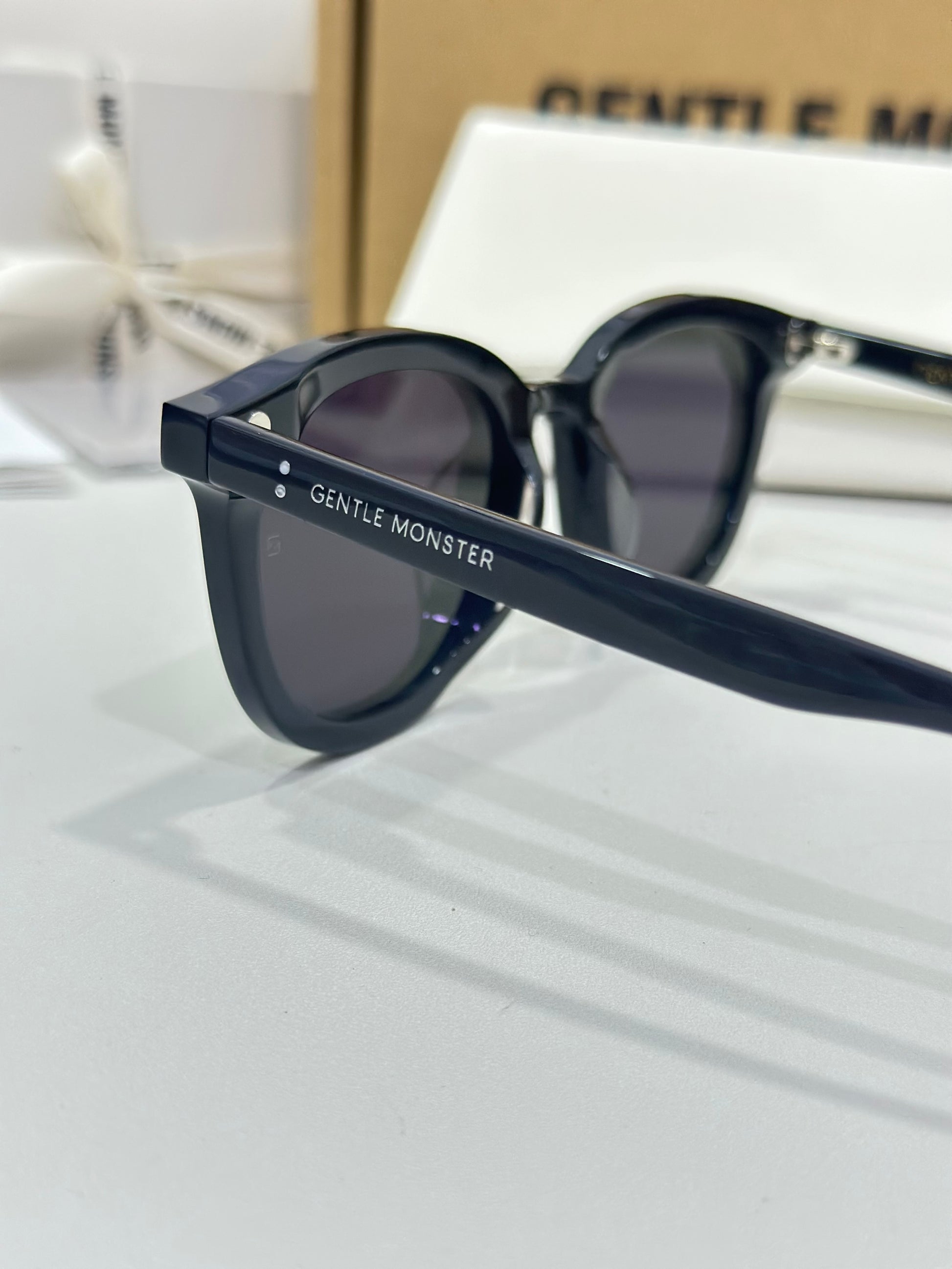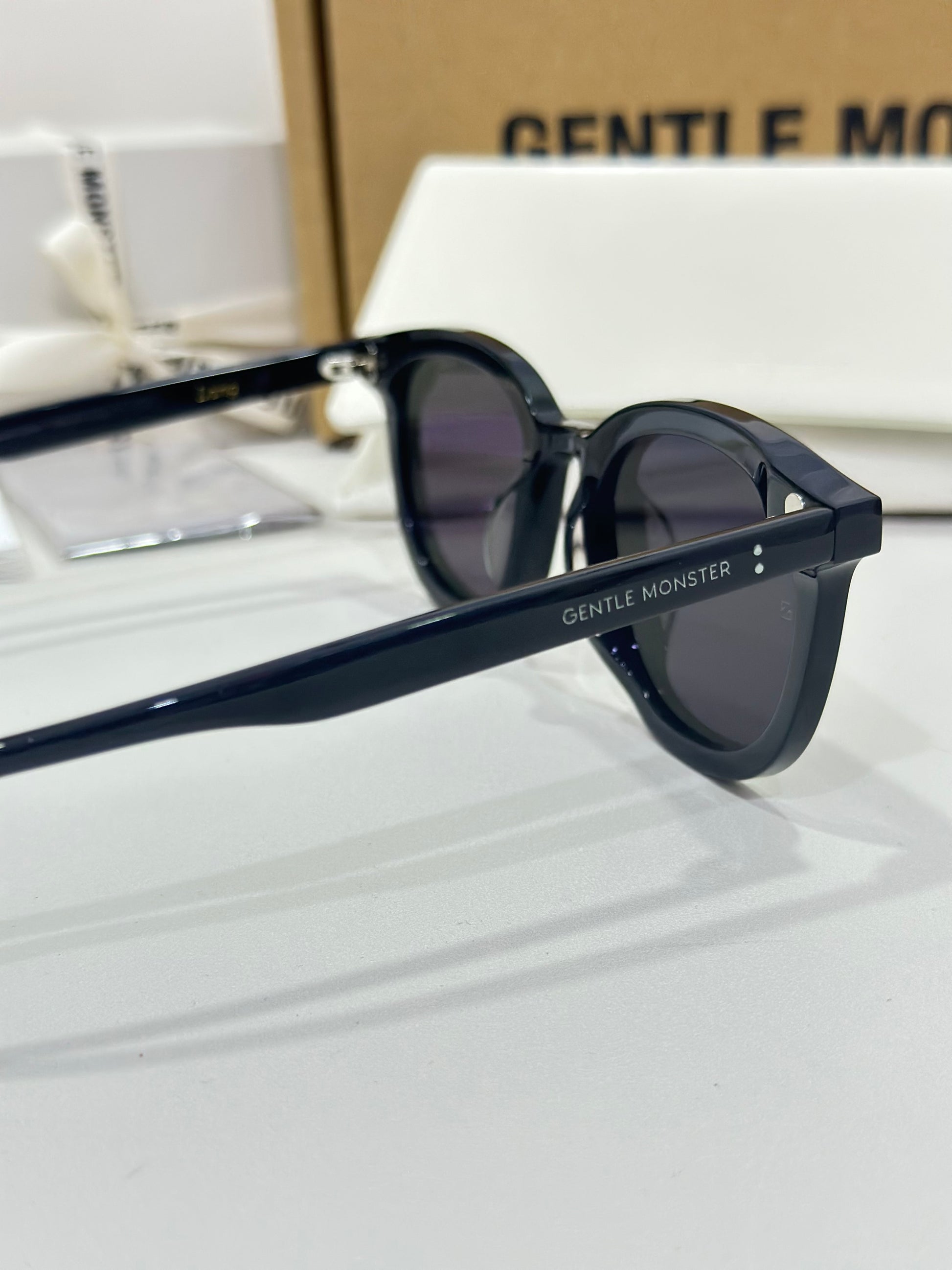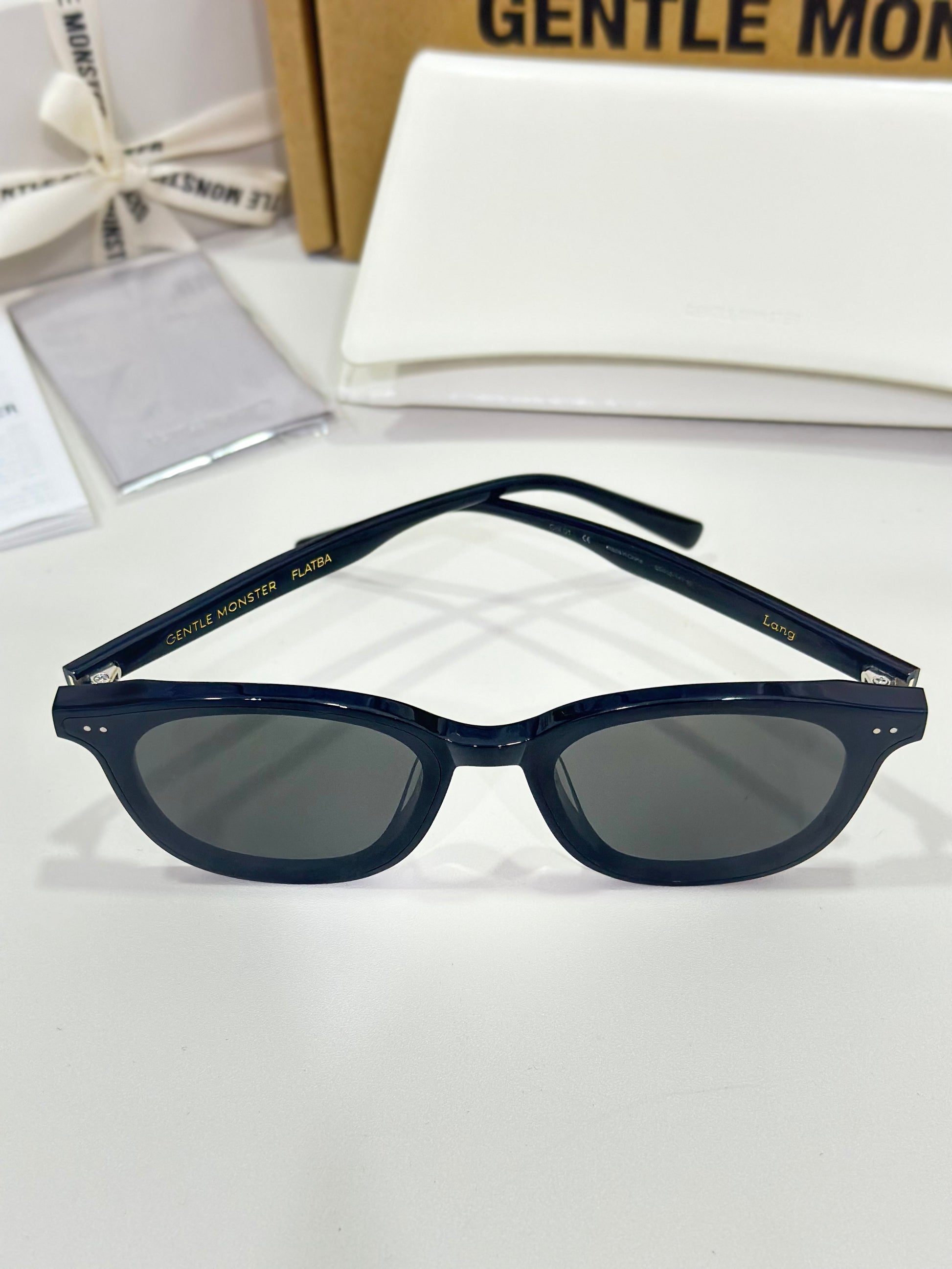 Crafted to complement all occasions, Lang 01 from the 2020 New Flatba Series features round shaped lenses to emphasize the frame front. This style is accentuated with two circular silver pins on each of the 99.9% UV protected lenses and engraved Gentle Monster logos in silver on the temples.