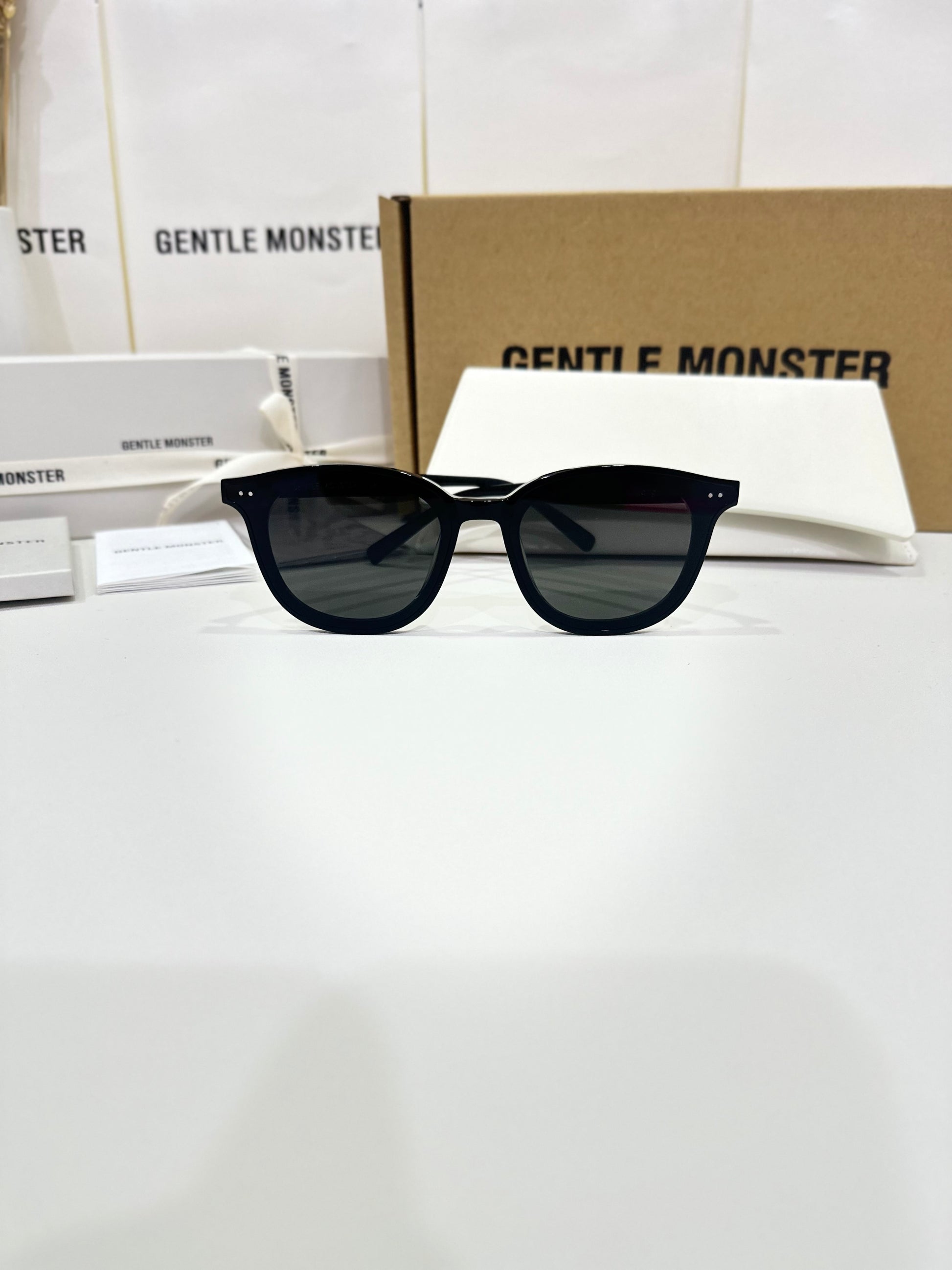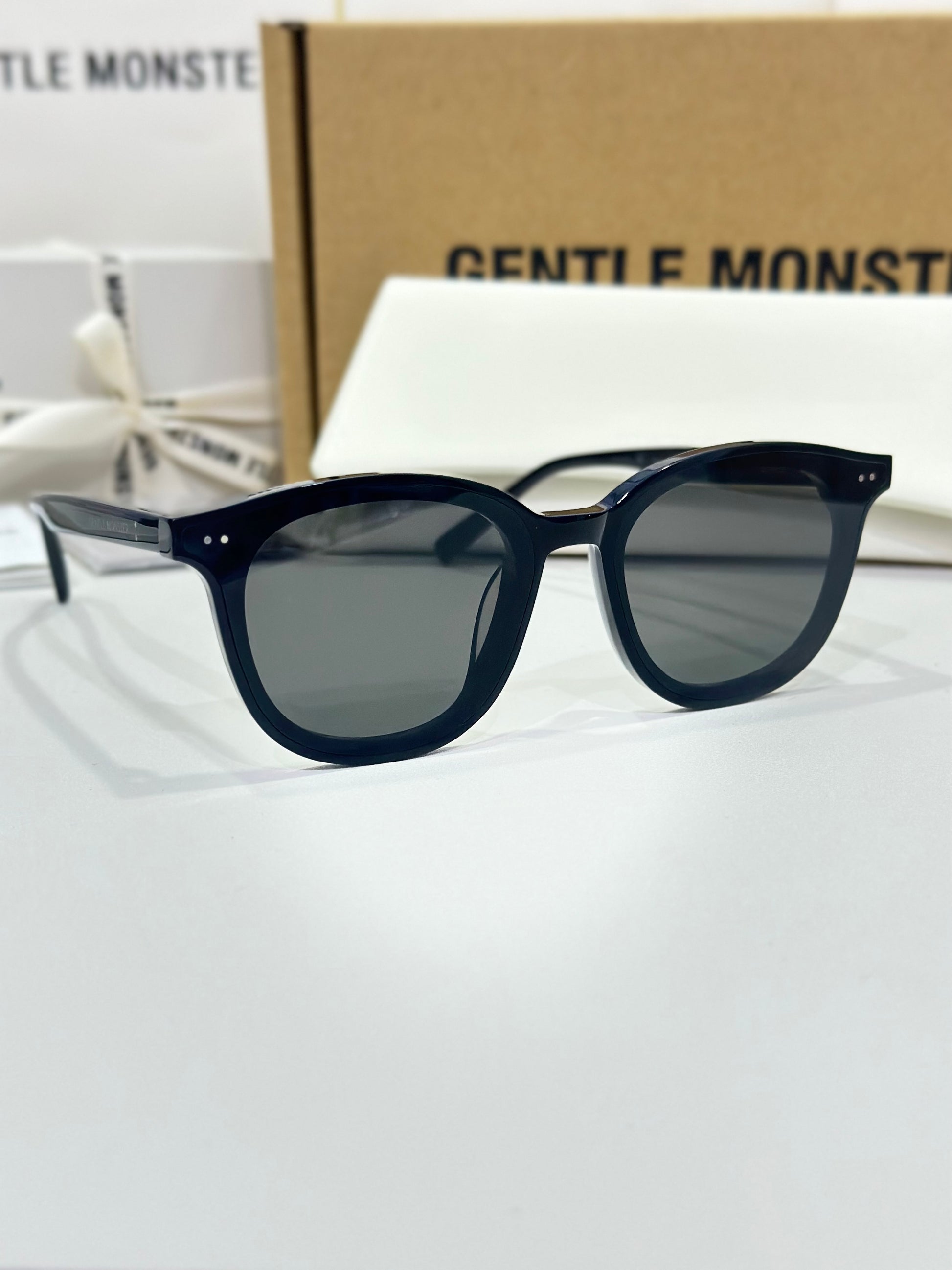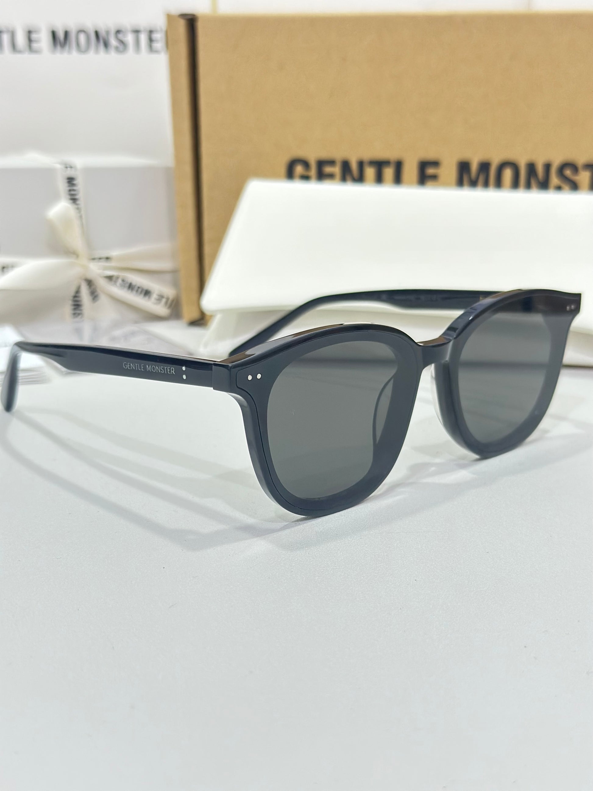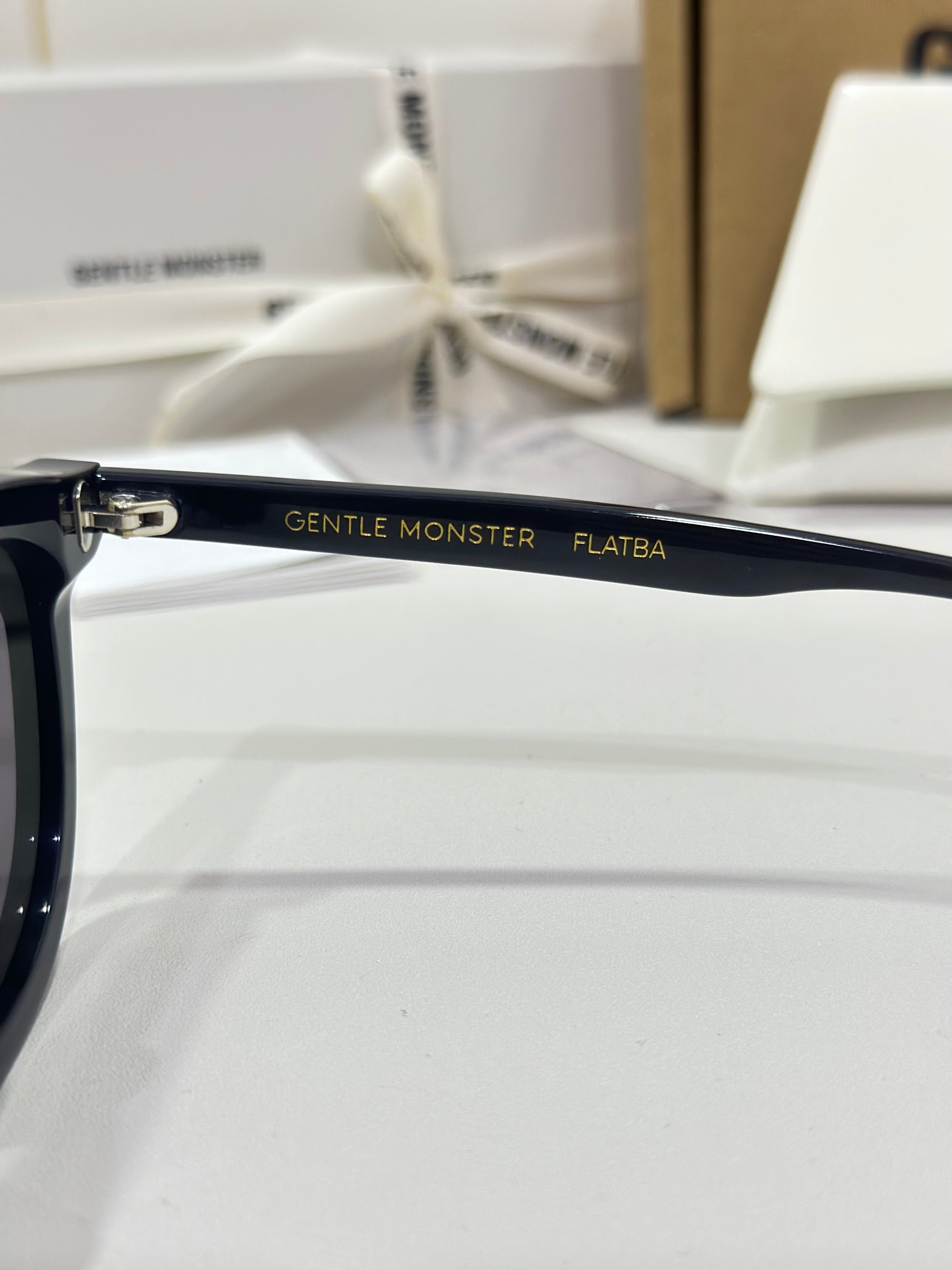 Crafted to complement all occasions, Lang 01 from the 2020 New Flatba Series features round shaped lenses to emphasize the frame front. This style is accentuated with two circular silver pins on each of the 99.9% UV protected lenses and engraved Gentle Monster logos in silver on the temples.