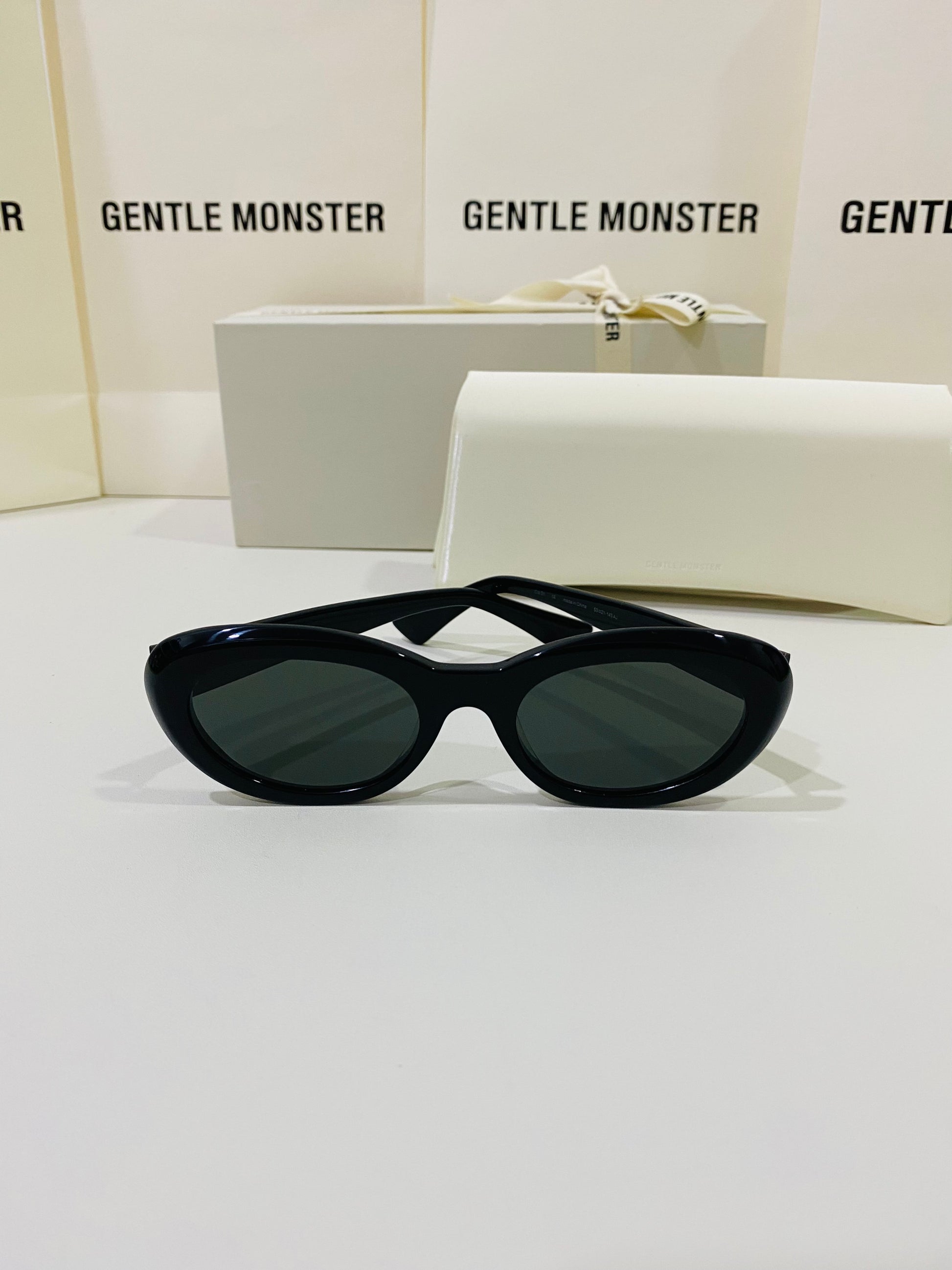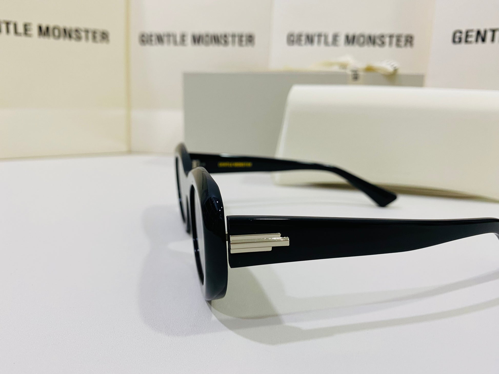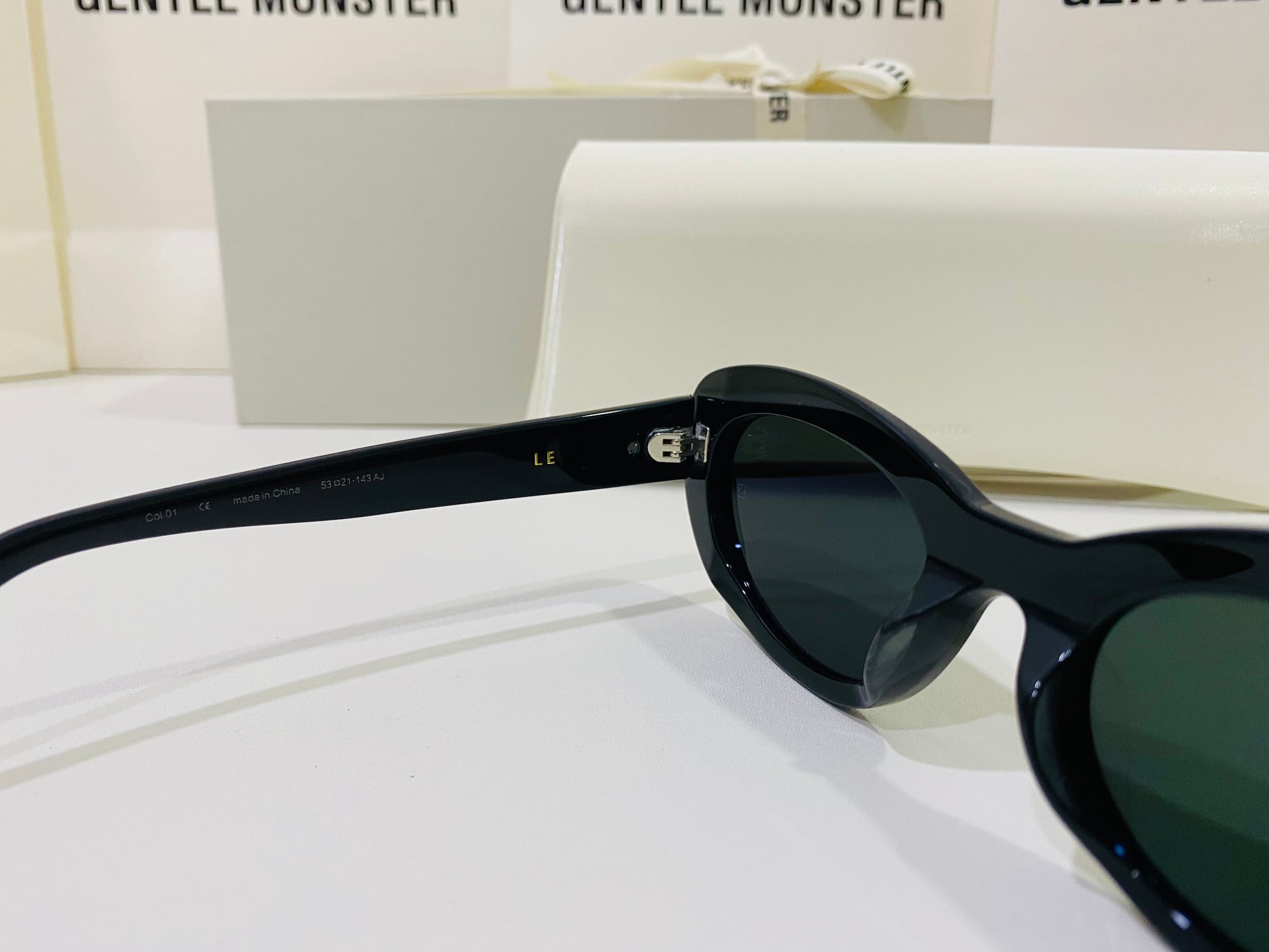 Le 01 is a cat-eye frame crafted from black acetate. The oval silhouetted frame is distinguished by the soft and voluminous curves, temples with prominent metal details, and black lenses with 99.9% UV protection.