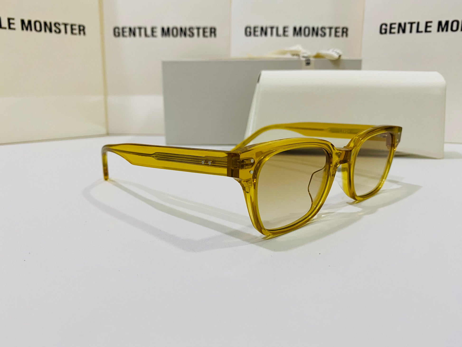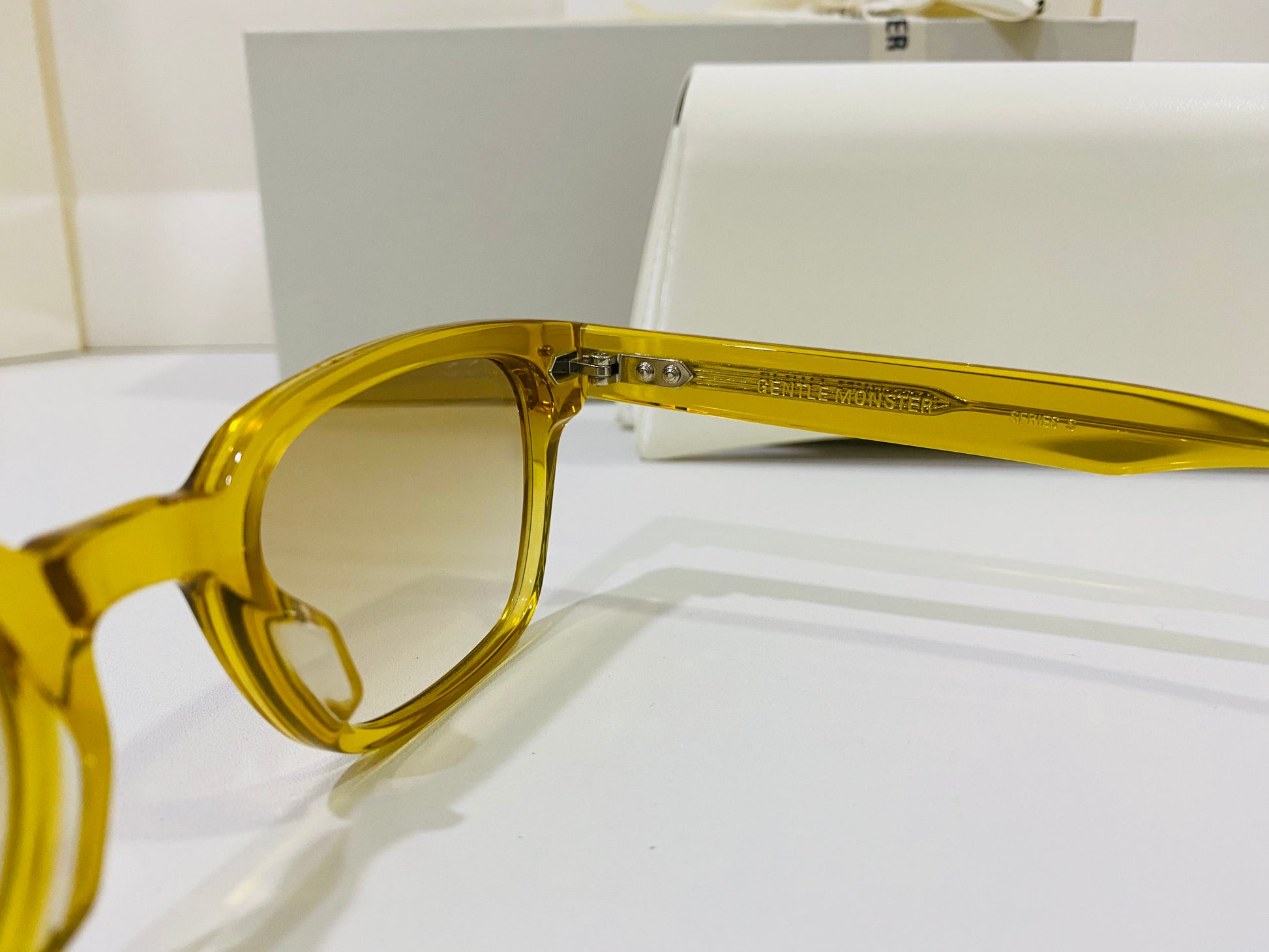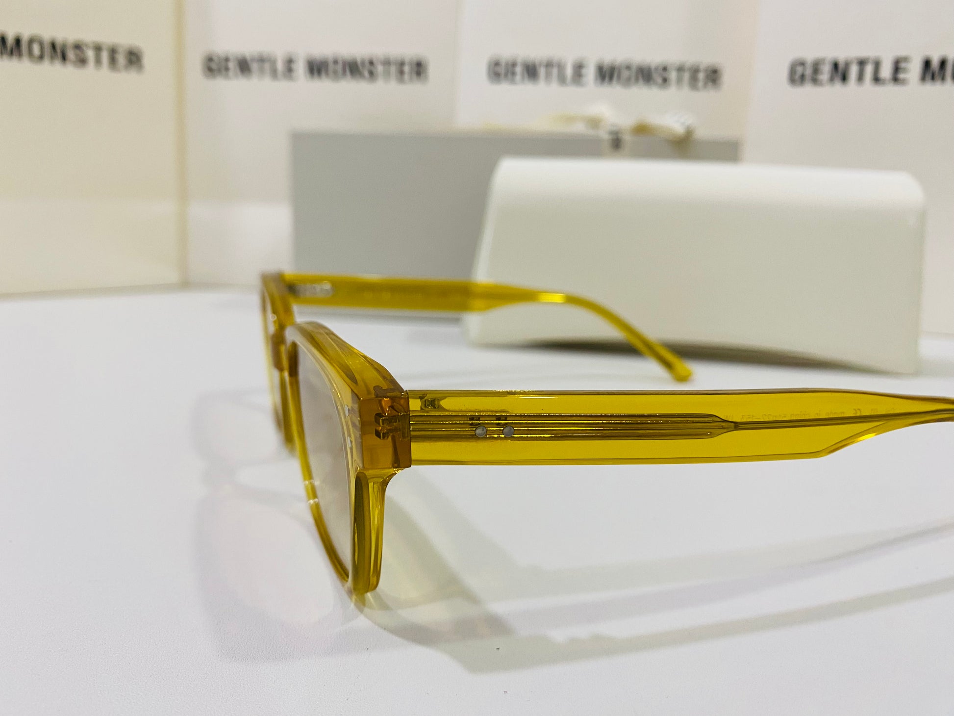 Leroy OL2 is a rectangular silhouetted yellow acetate frame. This style is highlighted by the linear top, evoking a simple yet captivating ambiance. These glasses also feature circular studs on the front, lined temple tips, and fitted with 99.9% UV protected brown gradient lenses.
