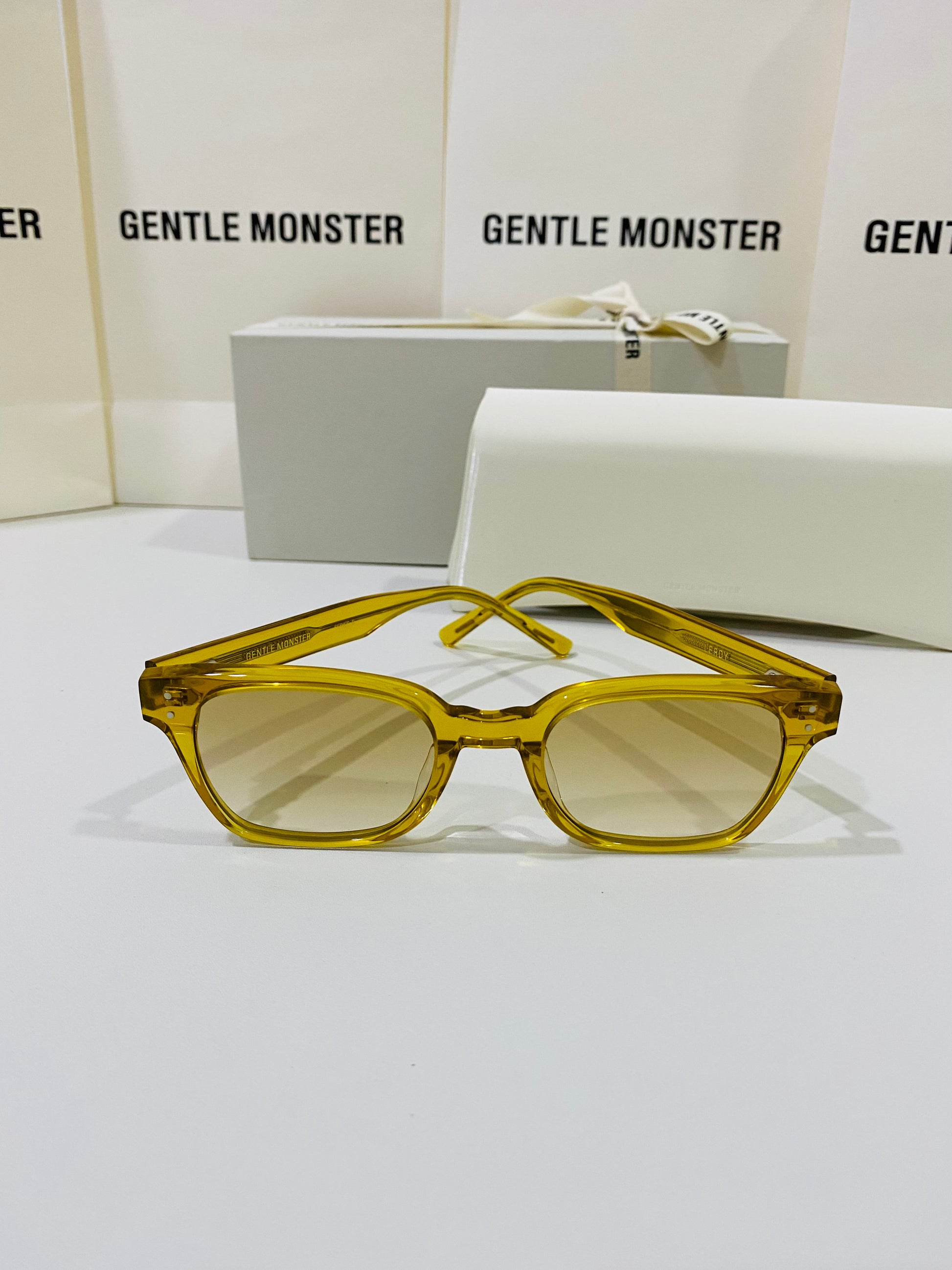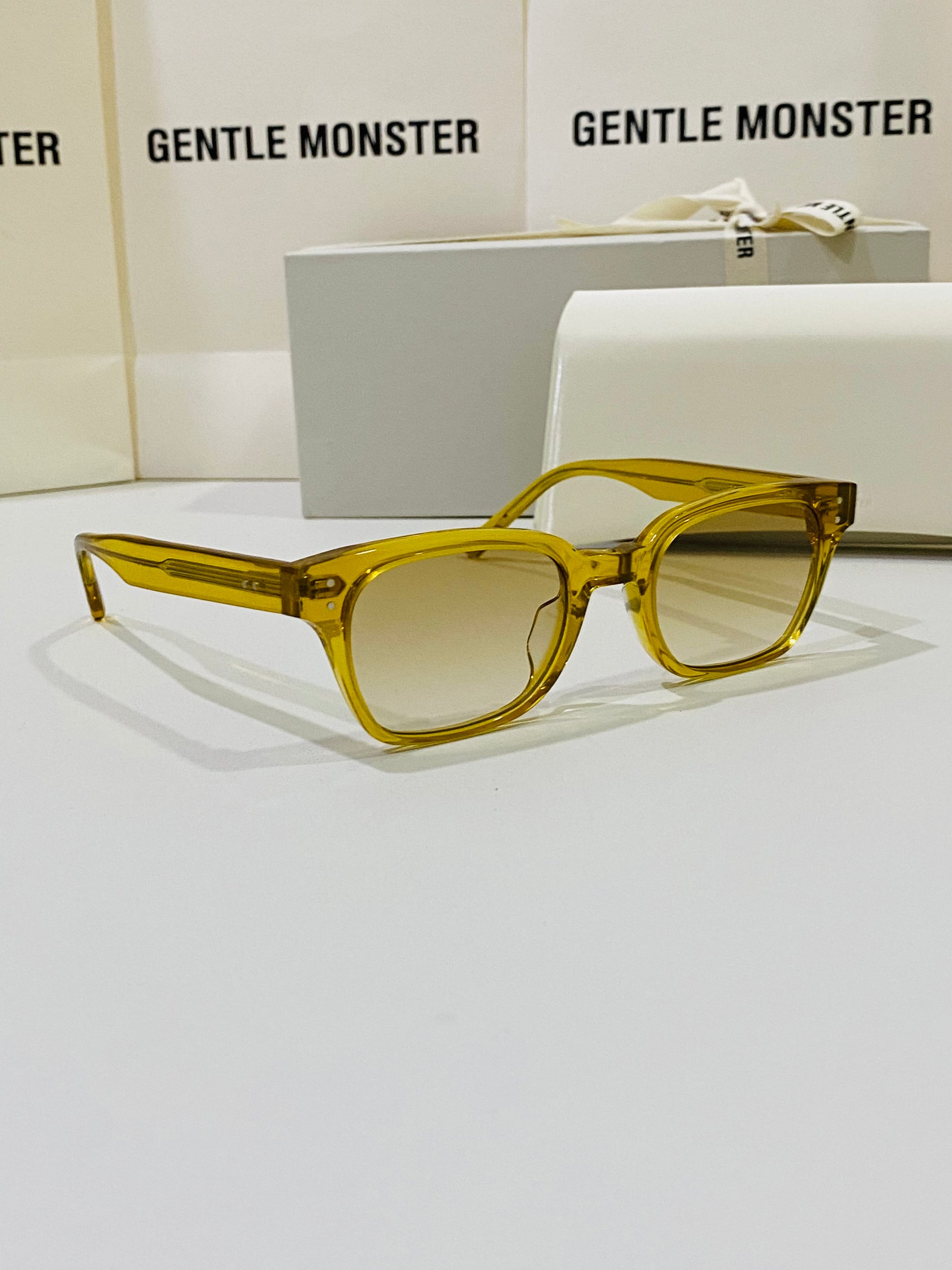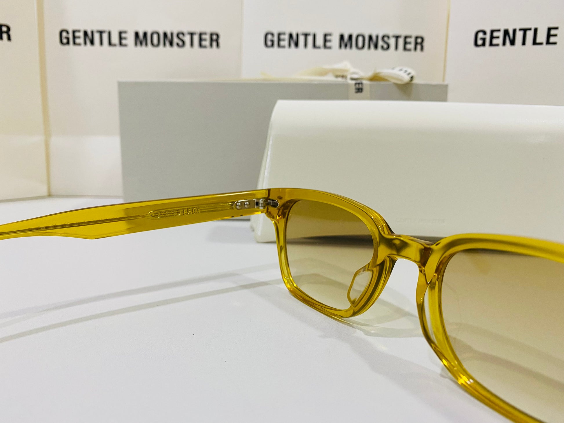 Leroy OL2 is a rectangular silhouetted yellow acetate frame. This style is highlighted by the linear top, evoking a simple yet captivating ambiance. These glasses also feature circular studs on the front, lined temple tips, and fitted with 99.9% UV protected brown gradient lenses.