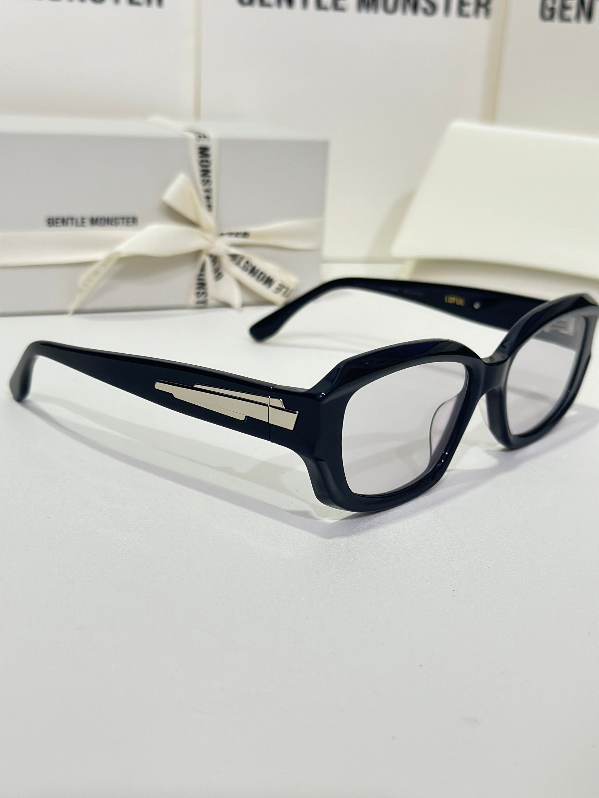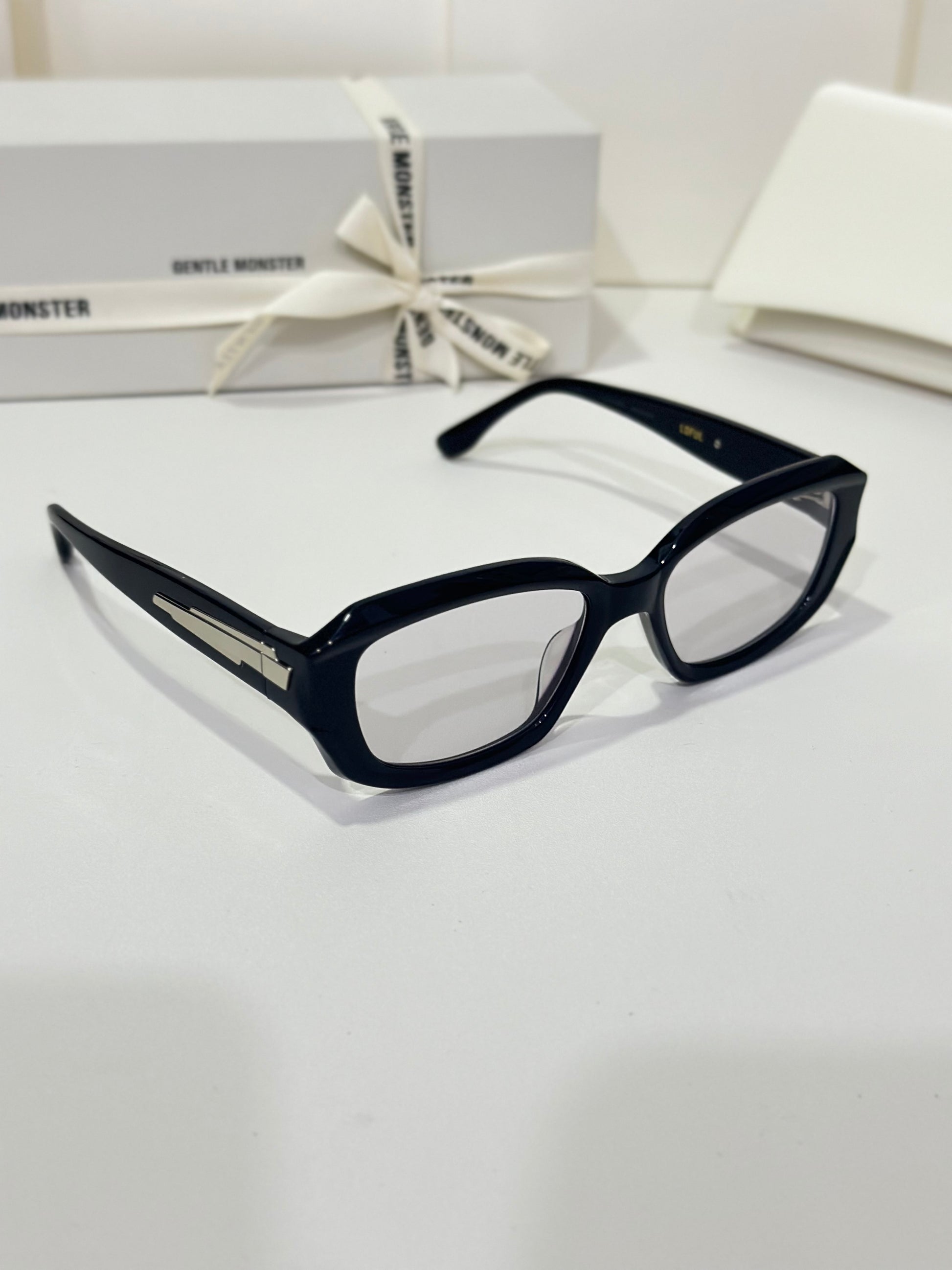 Loful 01 is a square silhouetted frame crafted of black acetate. This sophisticated and daring design features bold temple metal details and grey lenses with 99.9% UV protection.