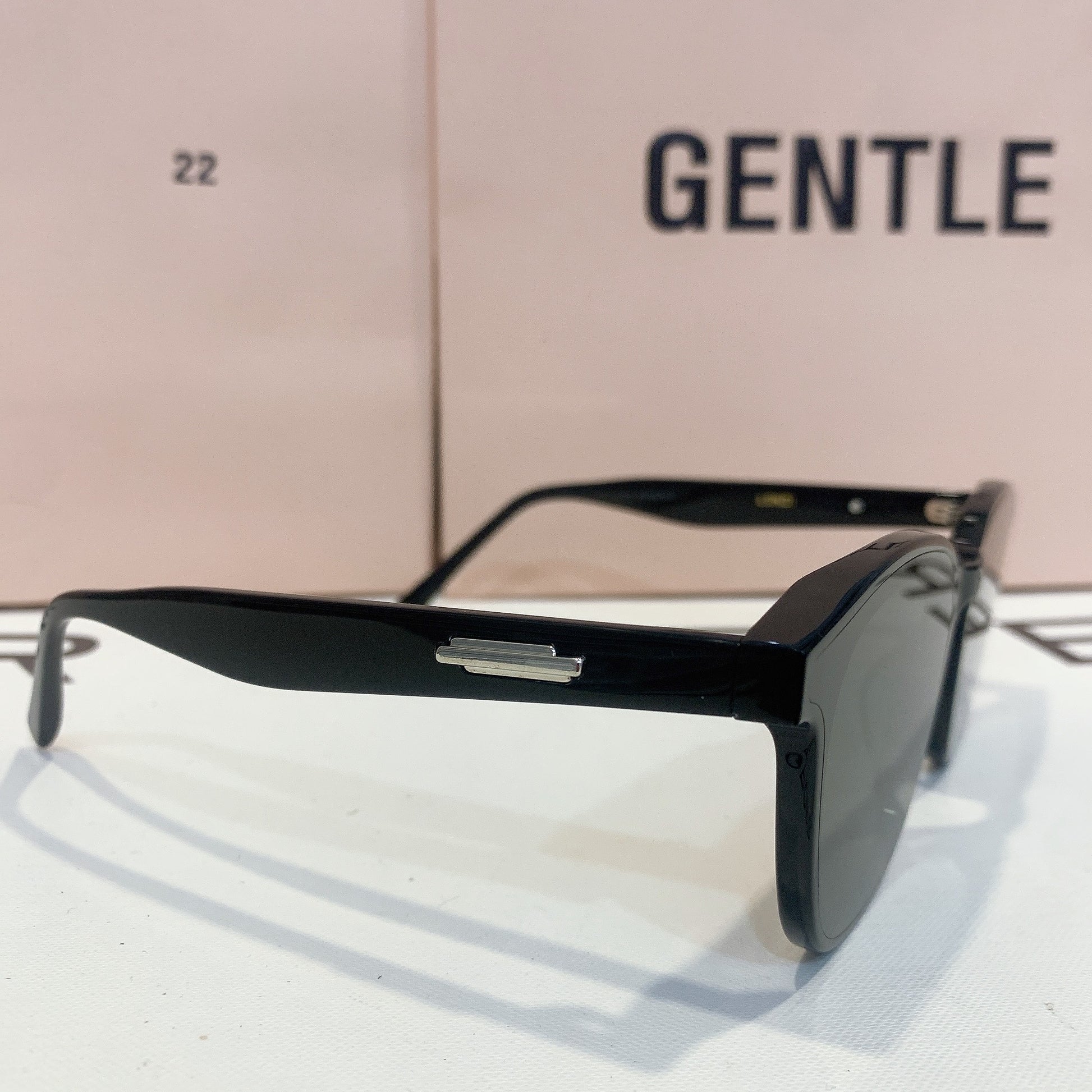 Londi 01 is a black, square silhouetted Flatba frame fitted with 99.9% UV protected black lenses. The slim front and rounded edges featuring metal details on the temples create a versatile design to complement any occasions.