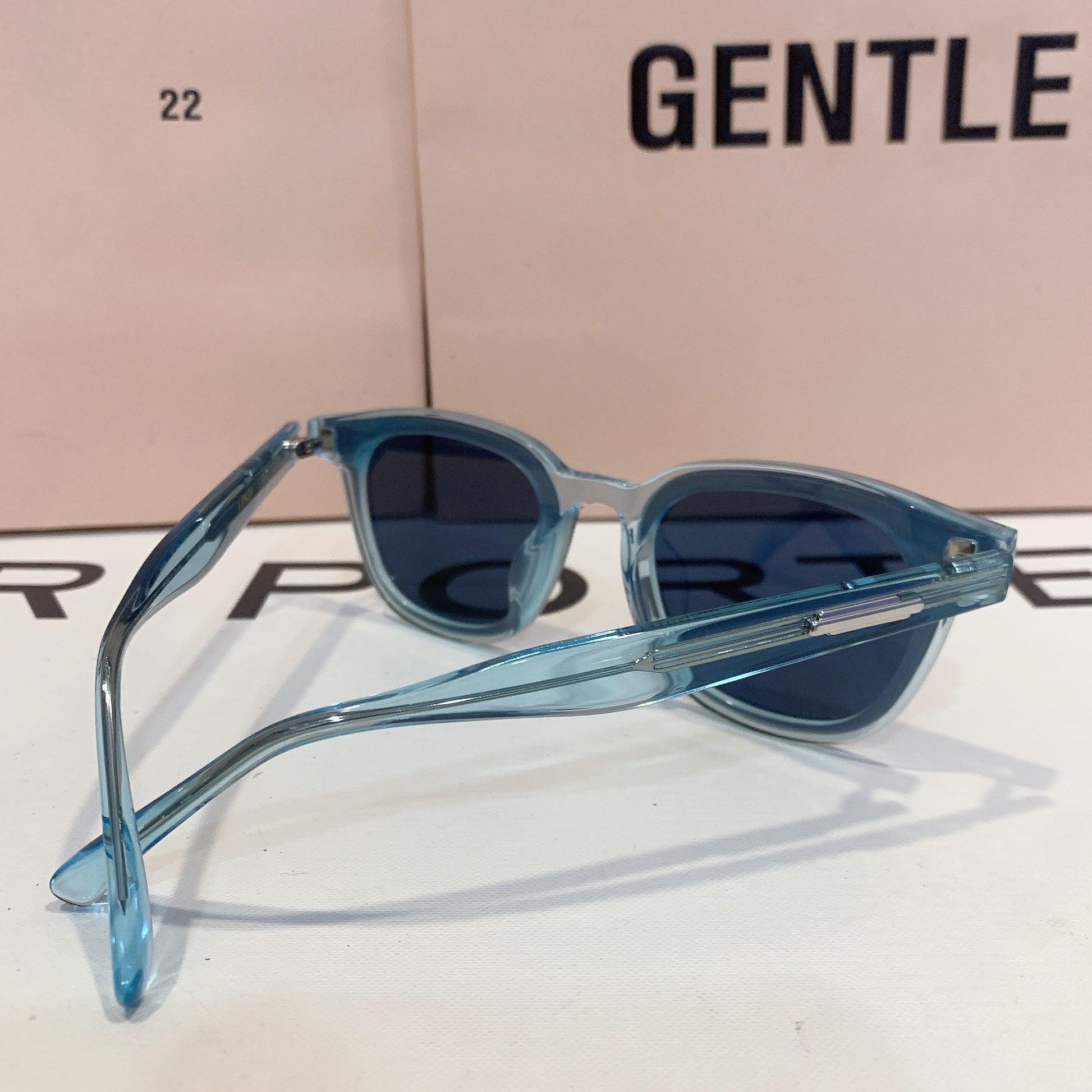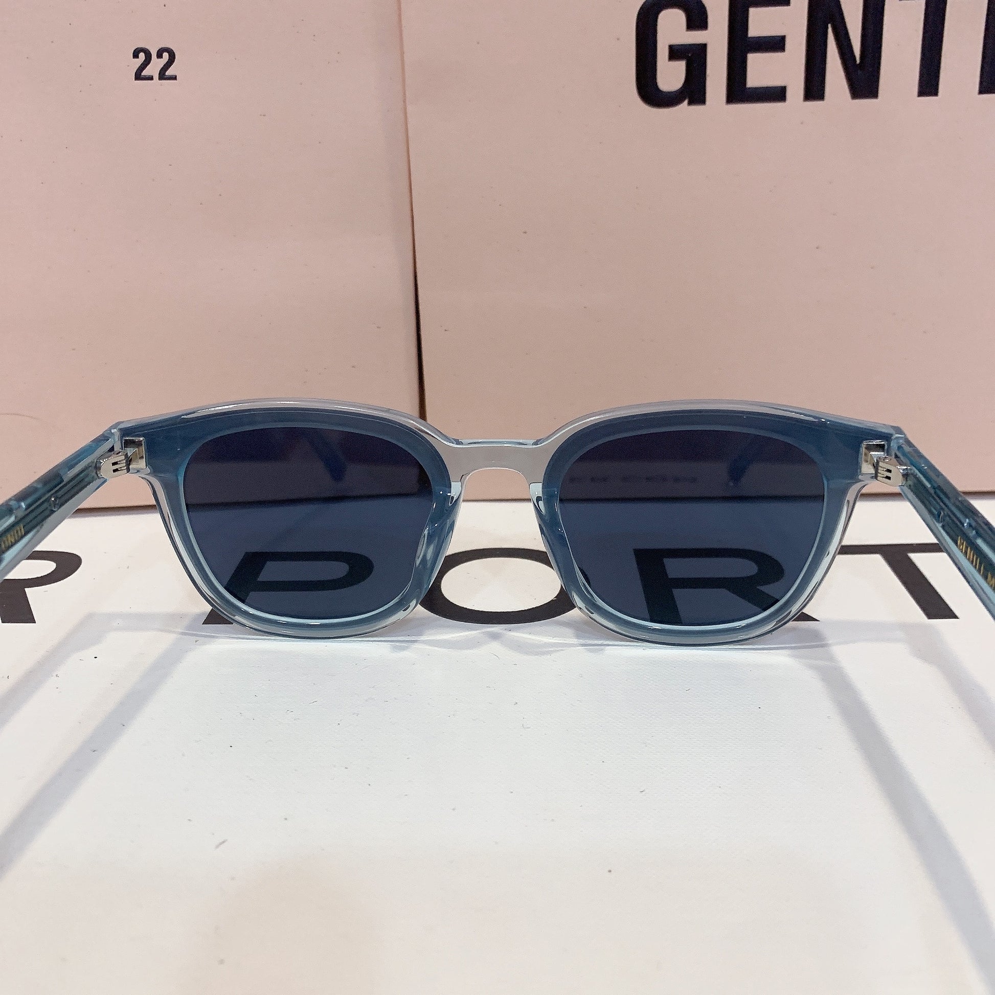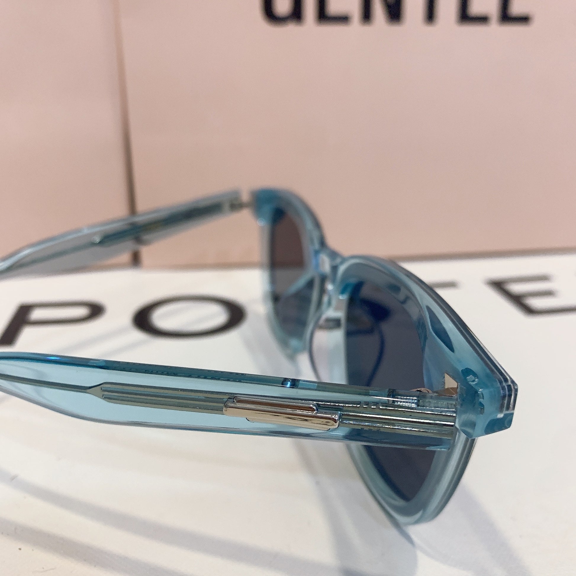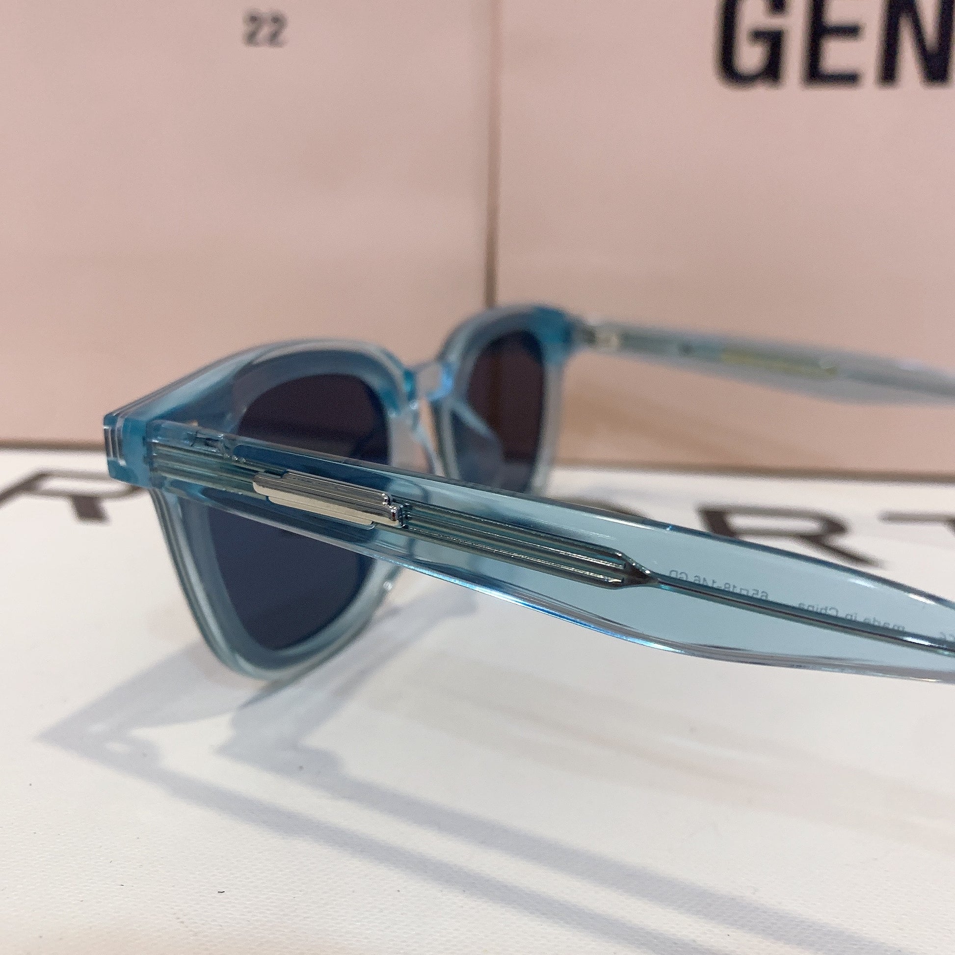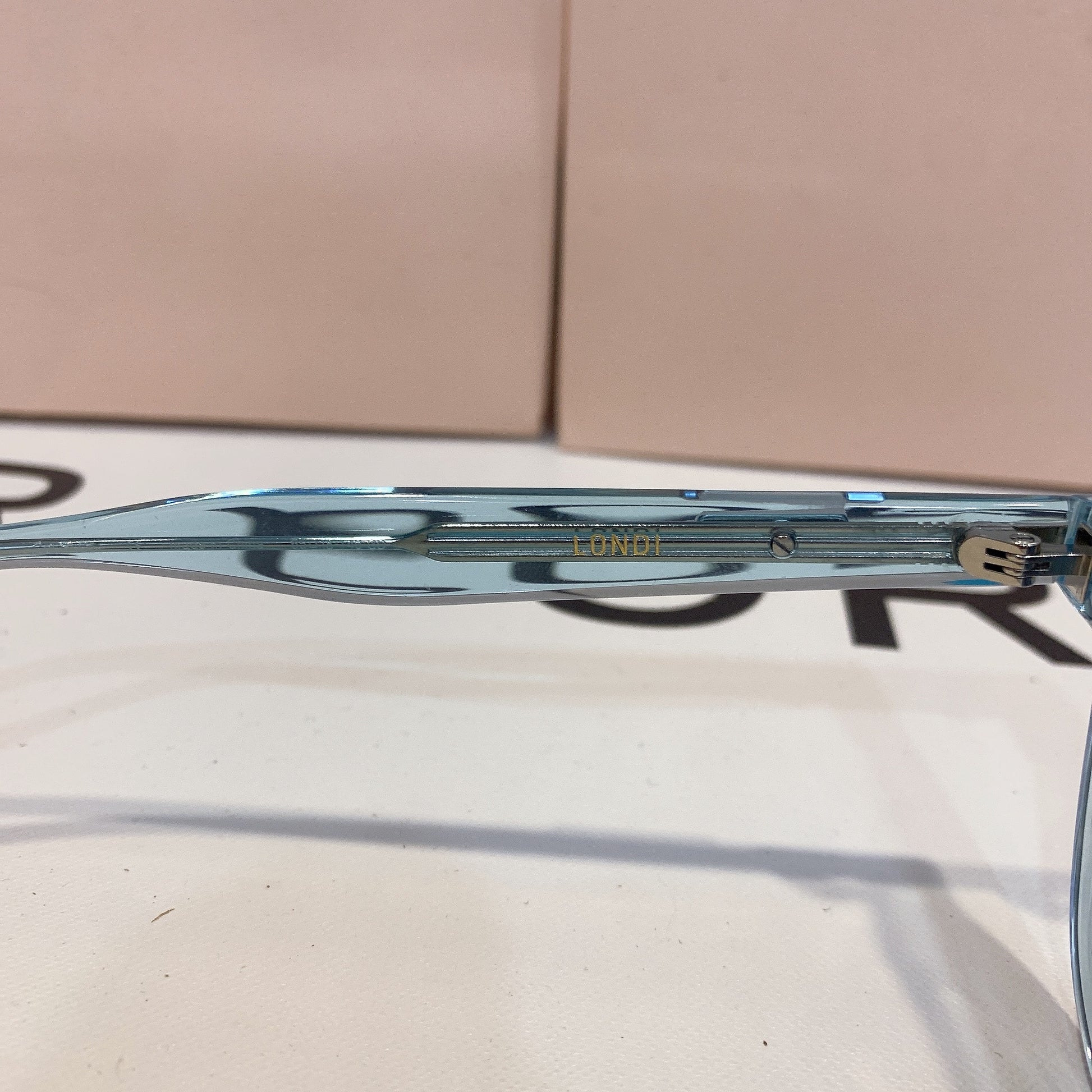Londi BLC4 is a clear blue, square silhouetted Flatba frame fitted with 99.9% UV protected blue lenses. The slim front and rounded edges featuring metal details on the temples create a versatile design to complement any occasions.