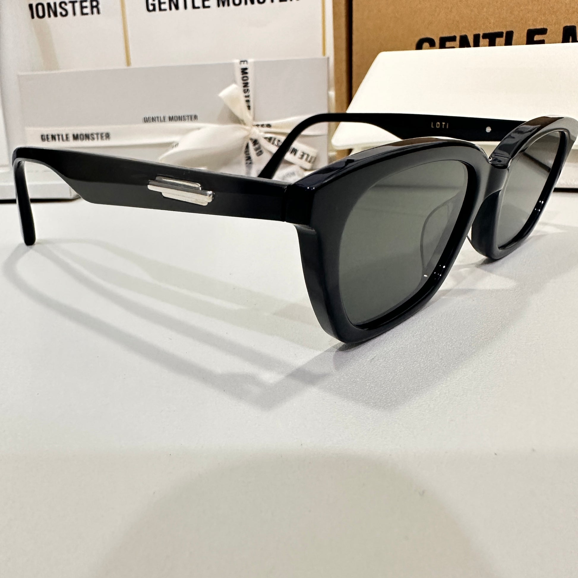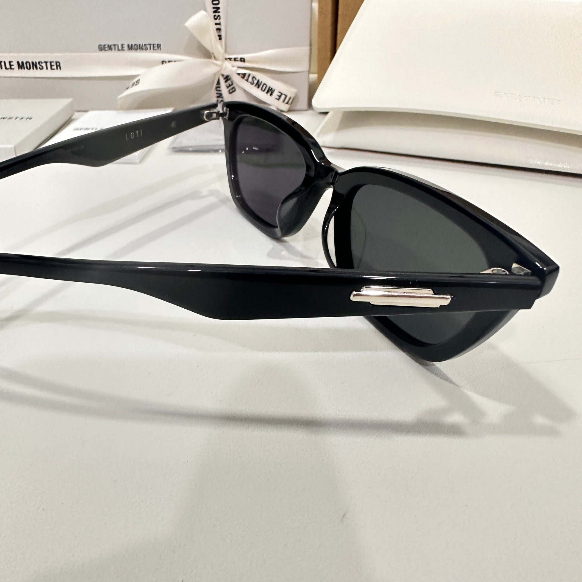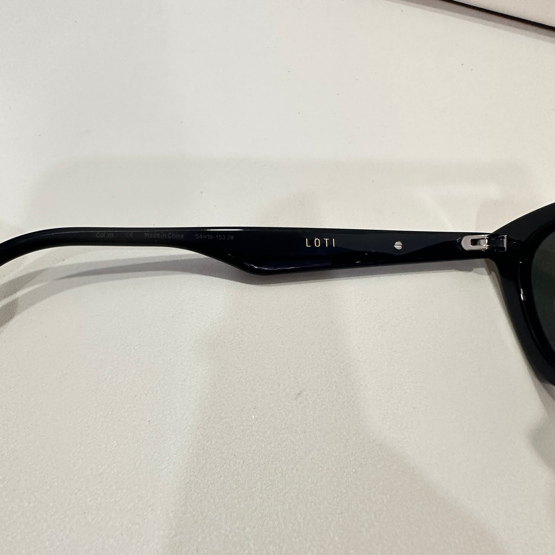 Loti 01 is a cat-eye silhouetted black acetate frame. In parallel to the softly curved top, the lines of the bottom balance each other to create a chic and lightweight design. These sunglasses also feature voluminous temples with silver metal details and black lenses with 99.9% UV protection.