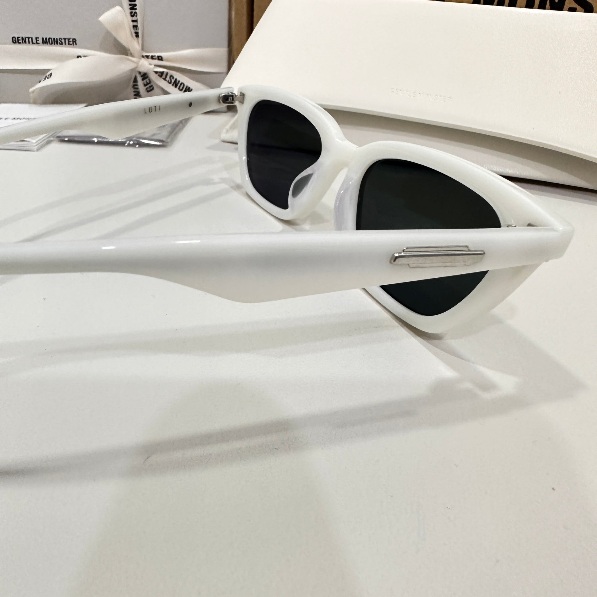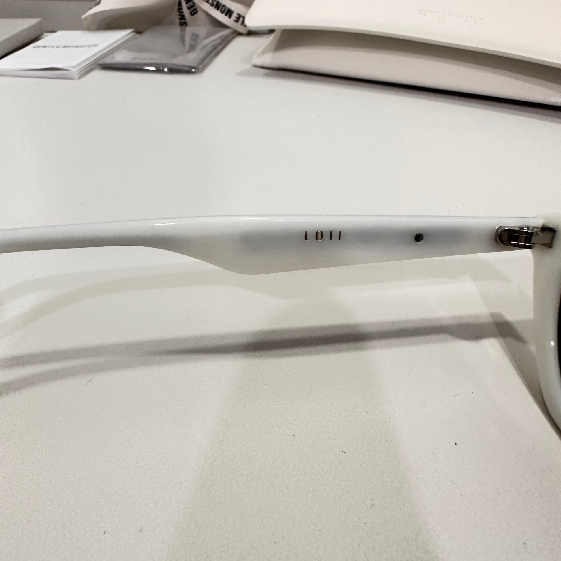 Loti W2 is a cat-eye silhouetted white acetate frame. In parallel to the softly curved top, the lines of the bottom balance each other to create a chic and lightweight design. These sunglasses also feature voluminous temples with silver metal details and black lenses with 99.9% UV protection.