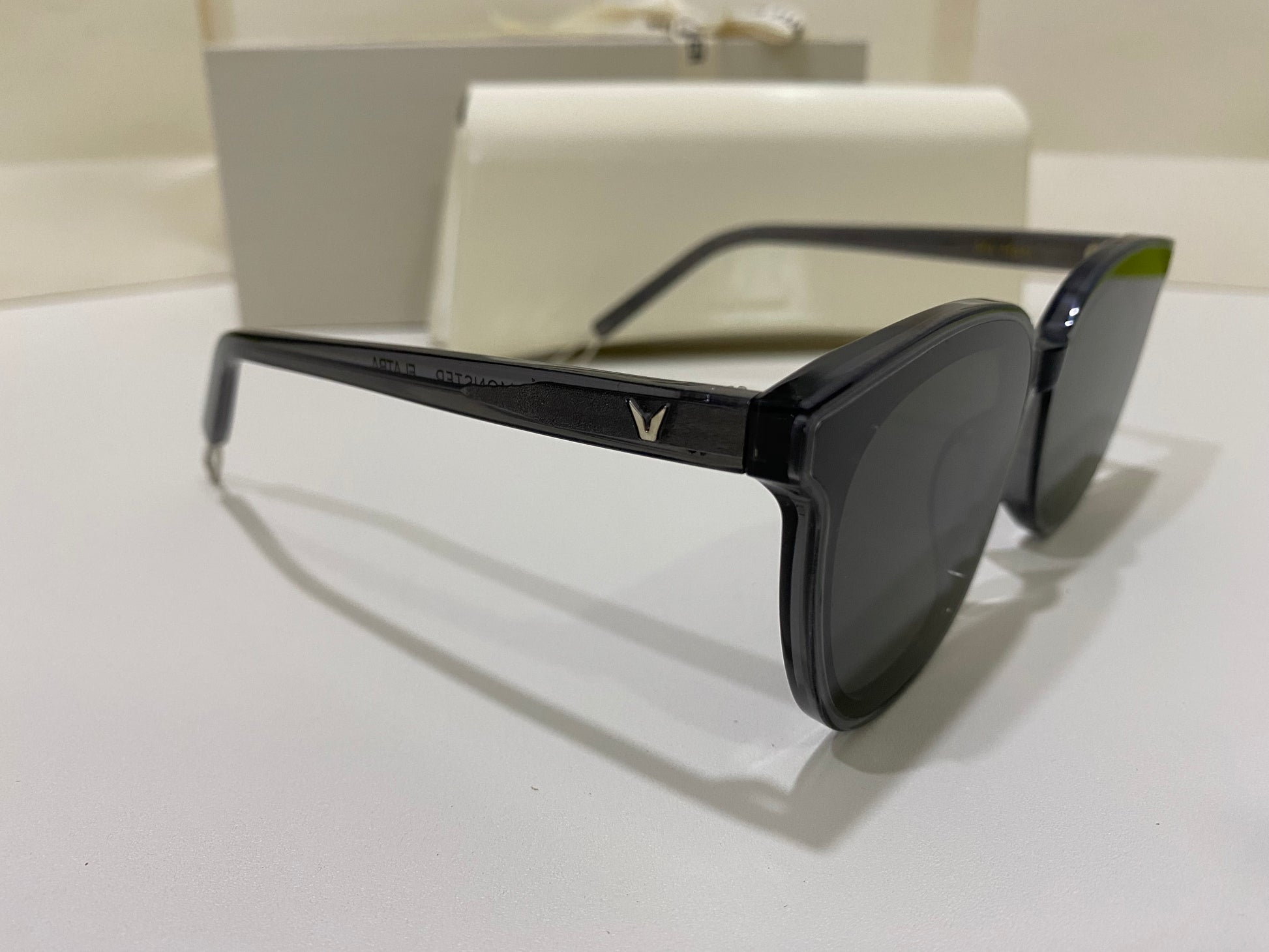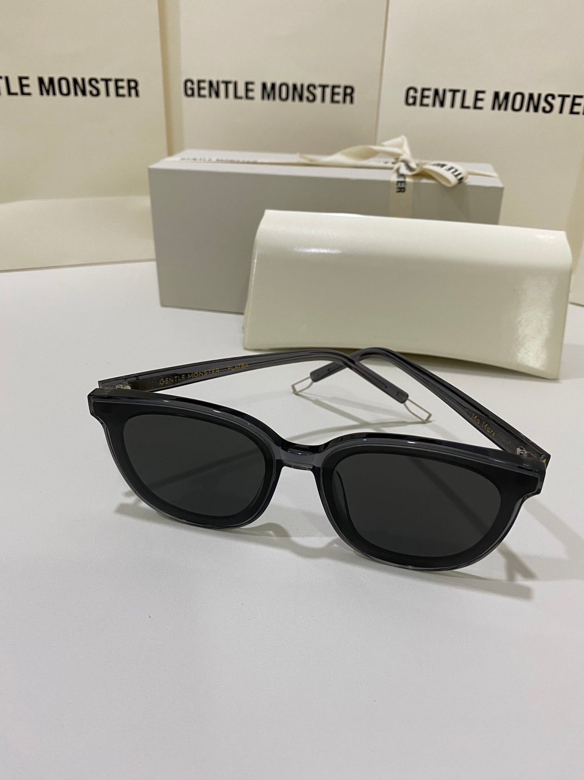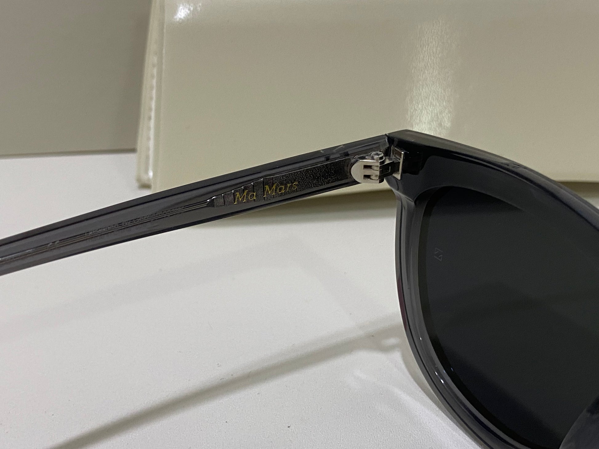 Making advancements from past styles, our newest style Ma Mars G1 is a fully acetate frame in clear gray, structurally crafted in line with our FLATBA design. This style is overall thinner and lighter than its previous counterparts and is fashioned with flat black lenses and 99.9% UV Protection.