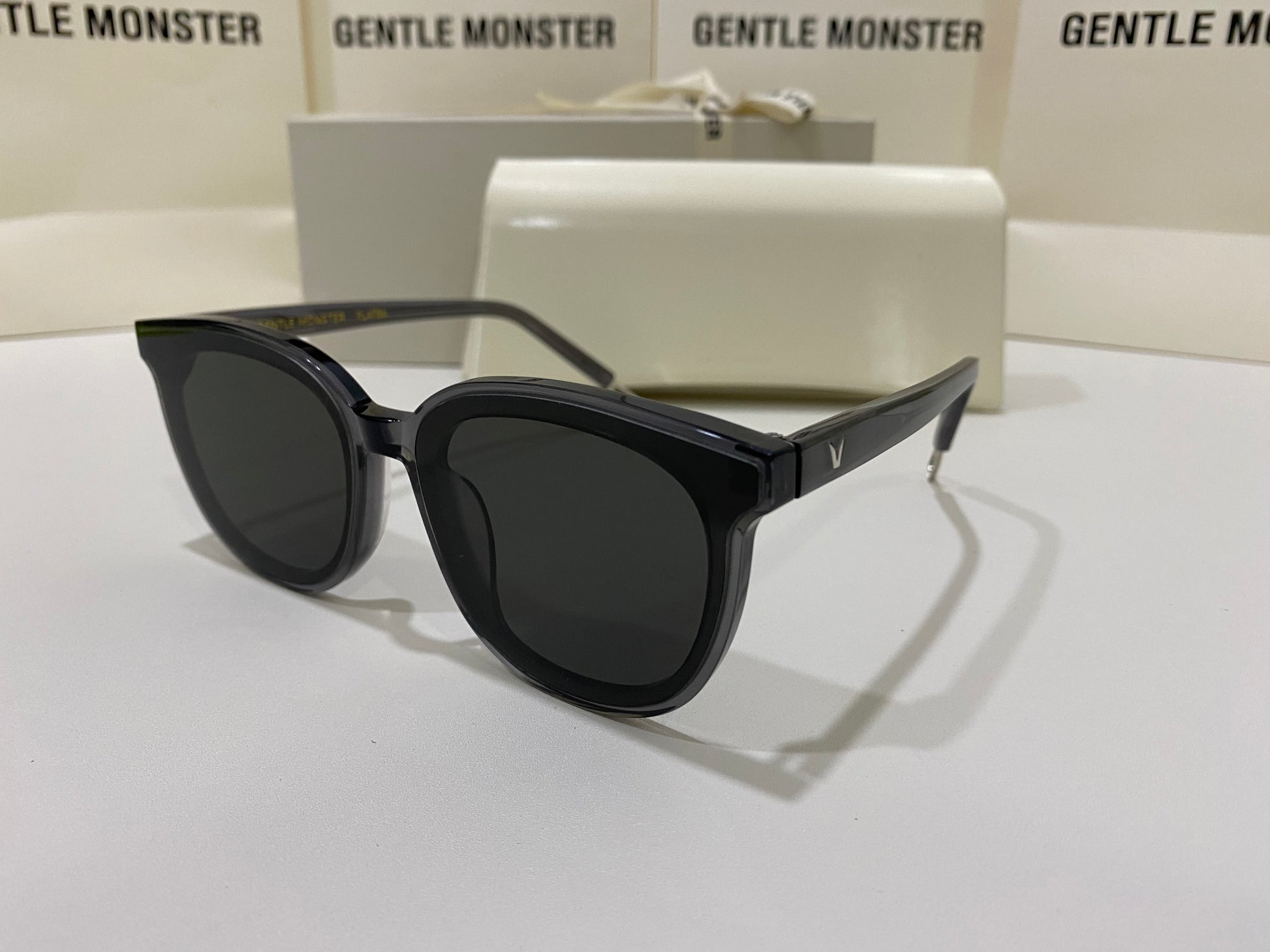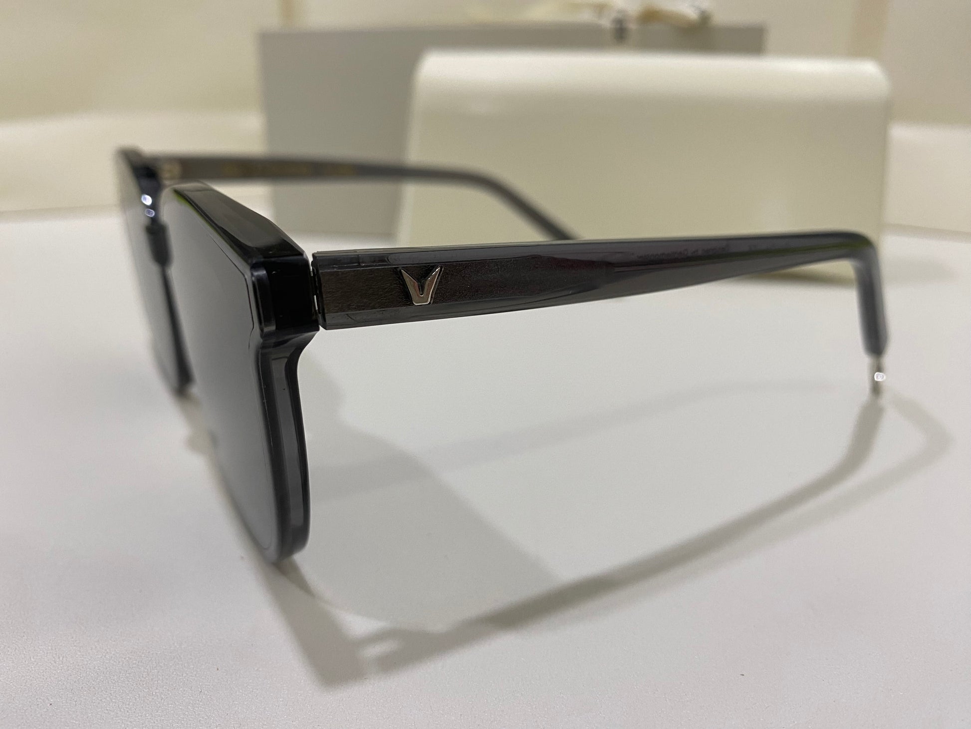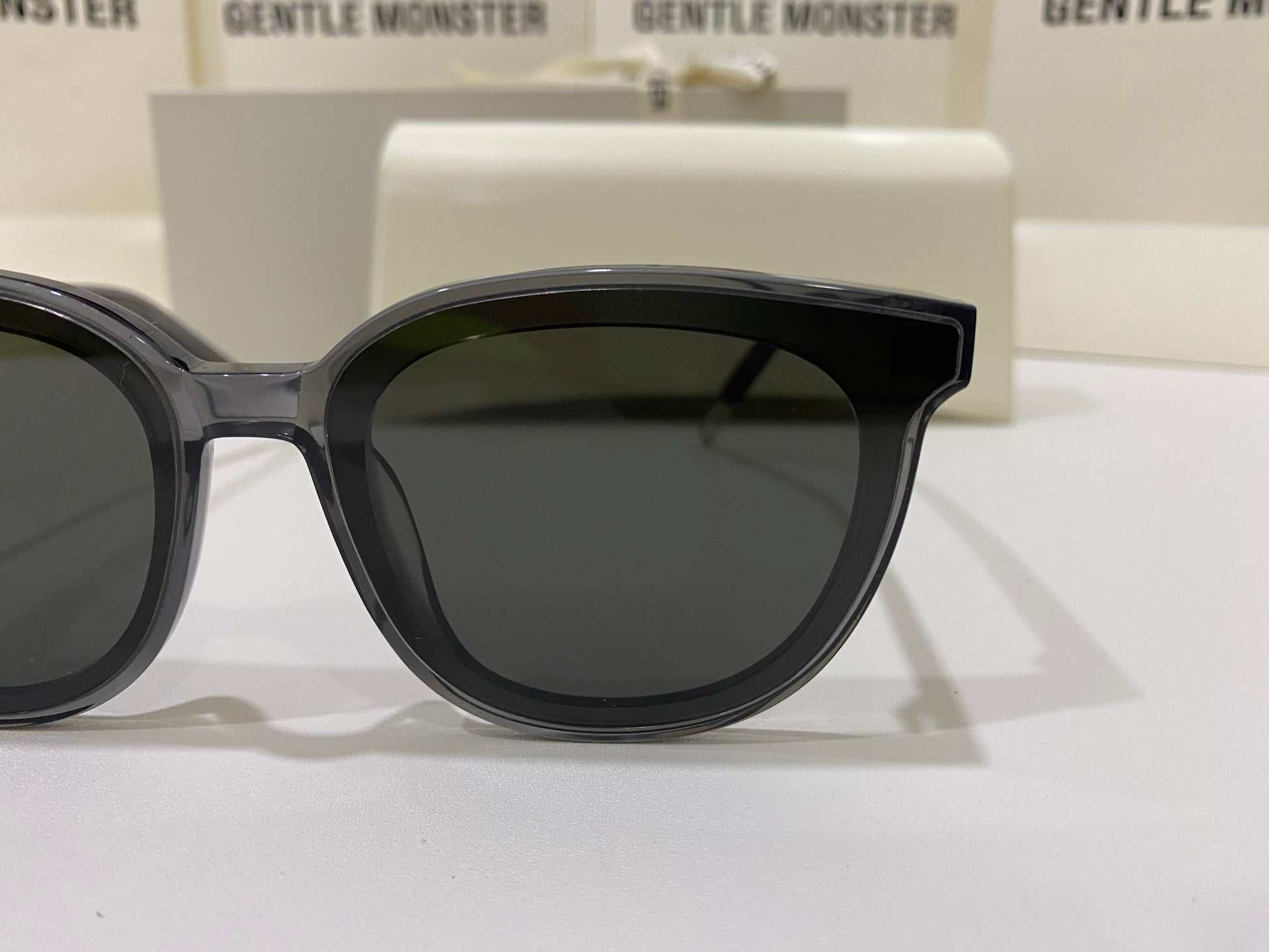 Making advancements from past styles, our newest style Ma Mars G1 is a fully acetate frame in clear gray, structurally crafted in line with our FLATBA design. This style is overall thinner and lighter than its previous counterparts and is fashioned with flat black lenses and 99.9% UV Protection.