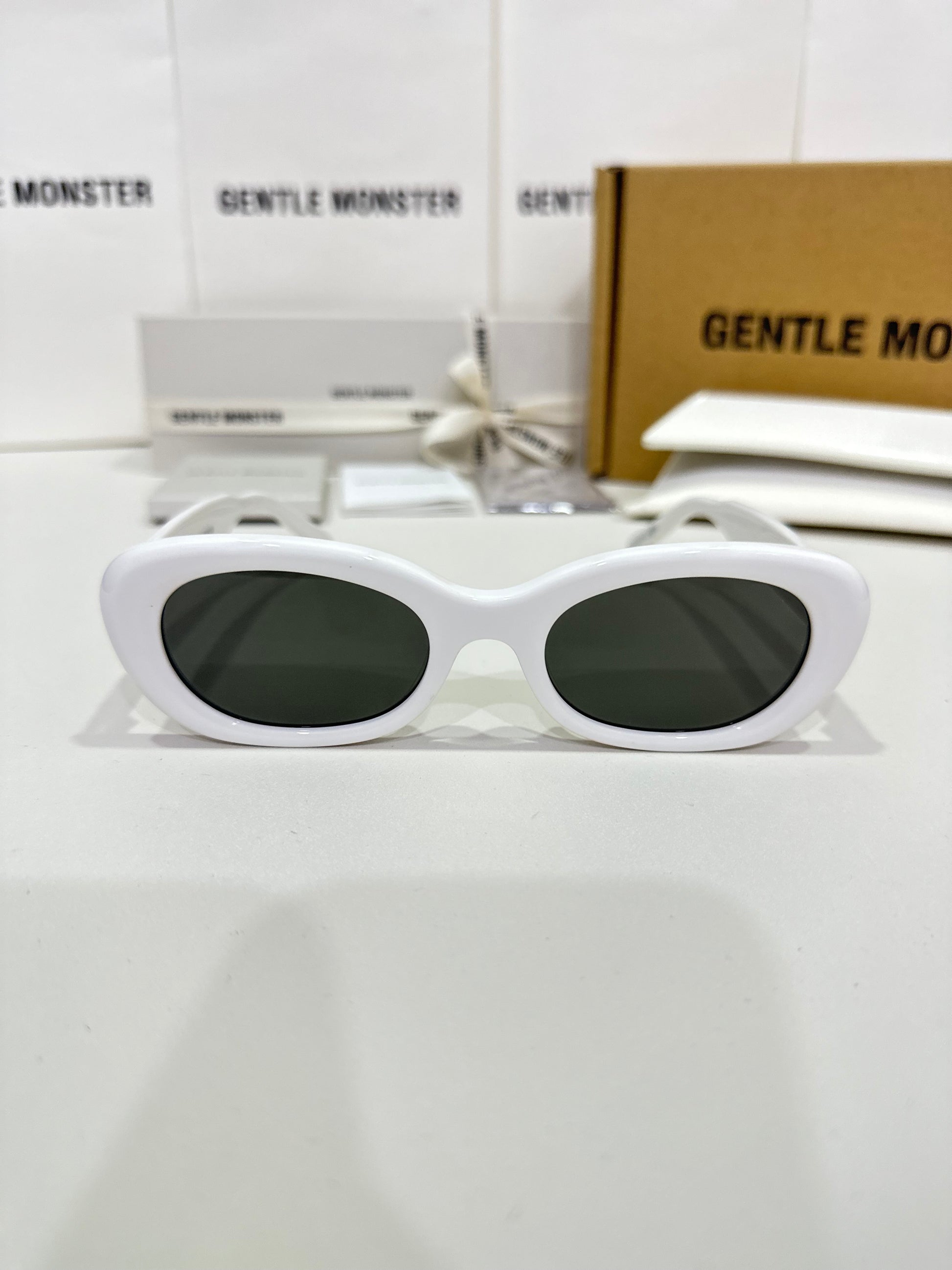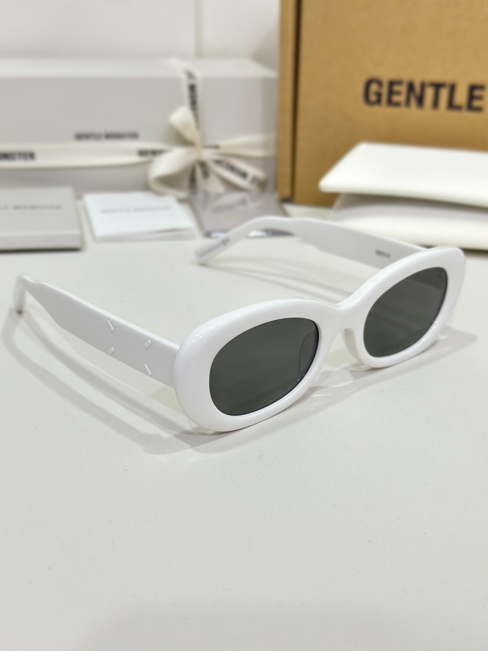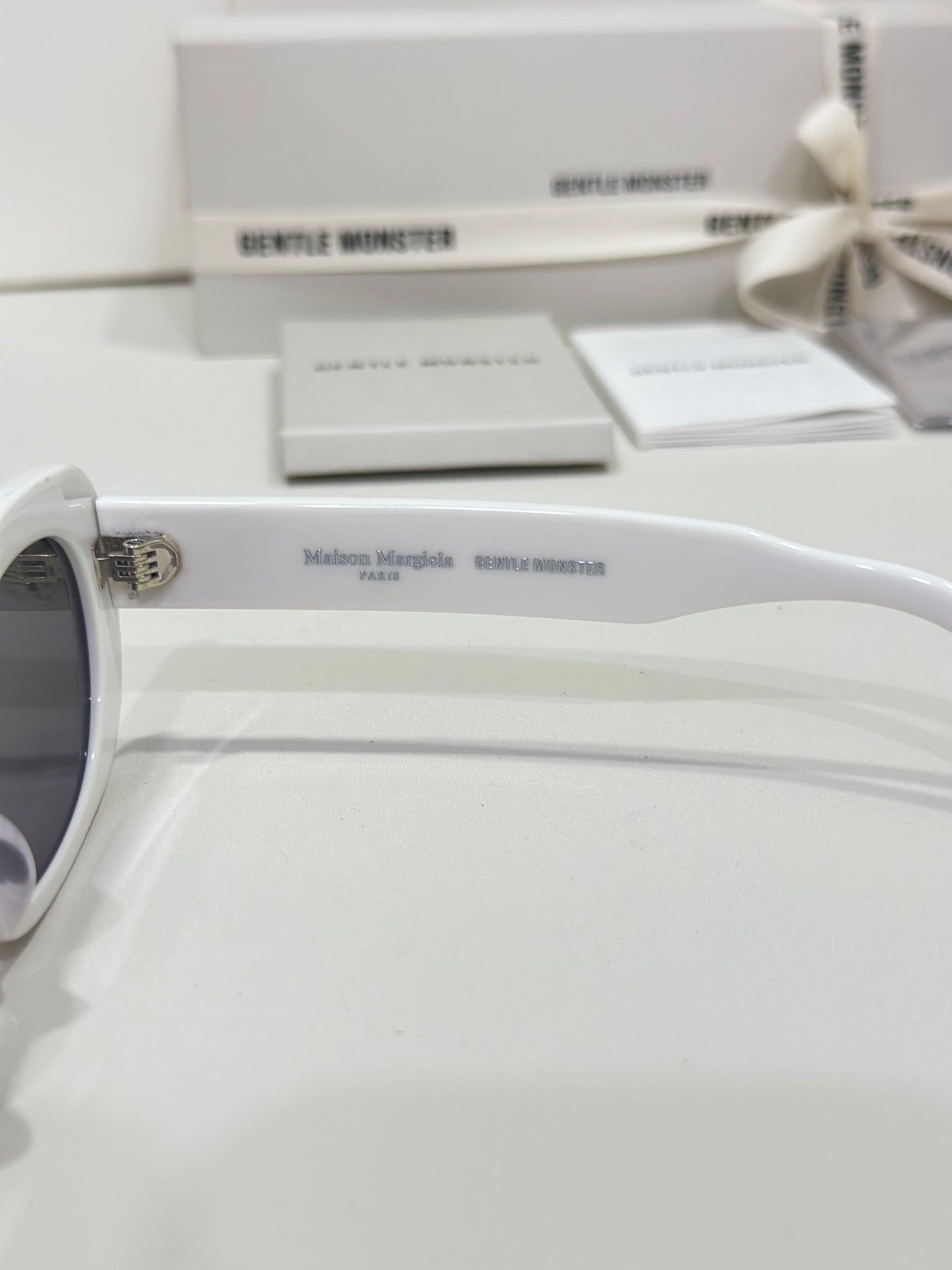 Numeric logo - with 8 encircled on the inside of the tips and the Maison Margiela x Gentle Monster Collection logo on the inside of the temples