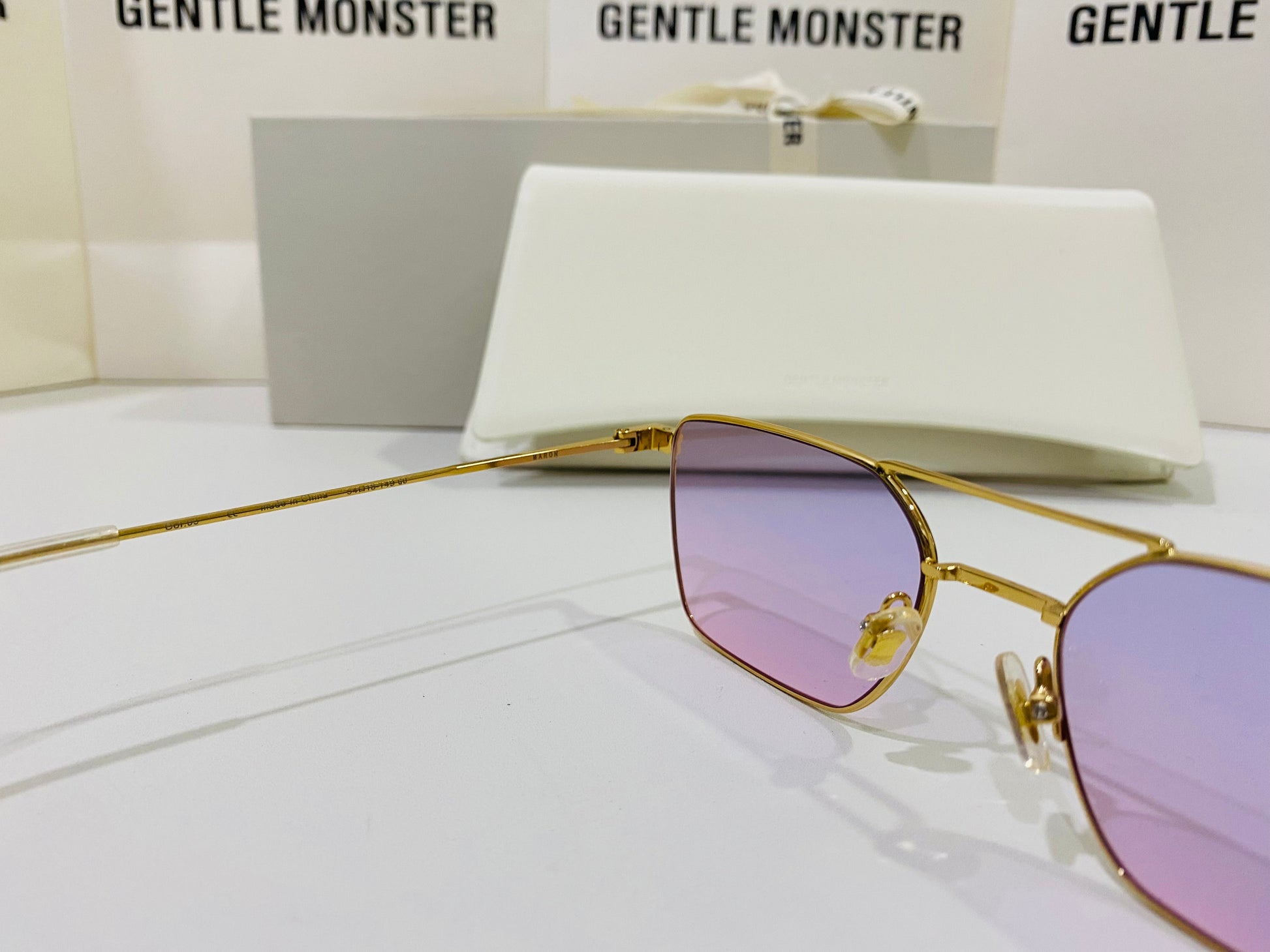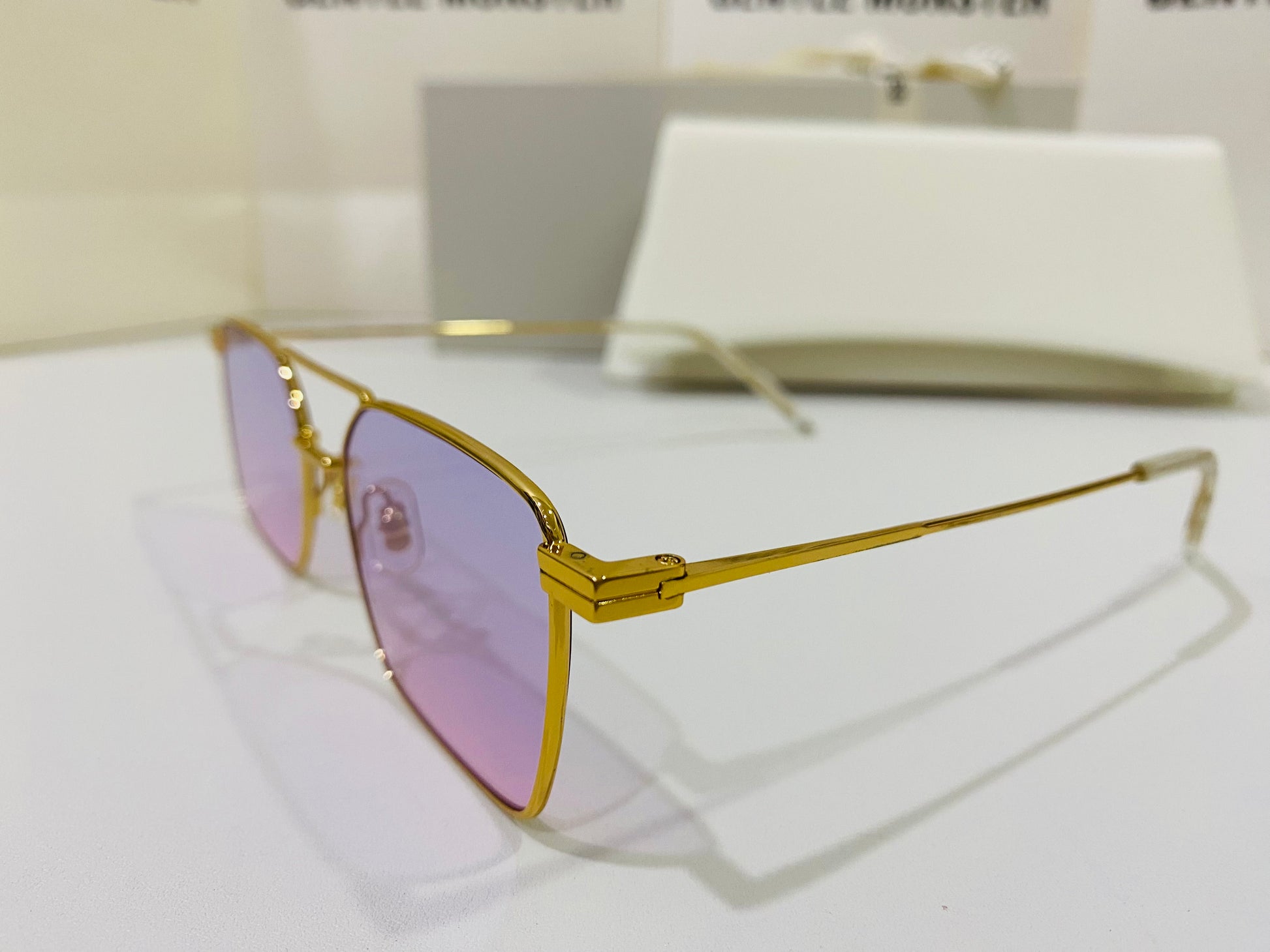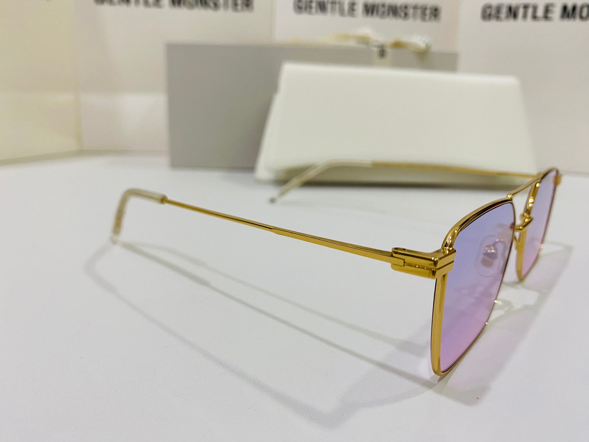 Maron 03 features a compact aviator style frame with 99.9% UV protected purple gradient lenses. This gold metal frame is highlighted by the triangular temple tips presented the 2021 Collection.