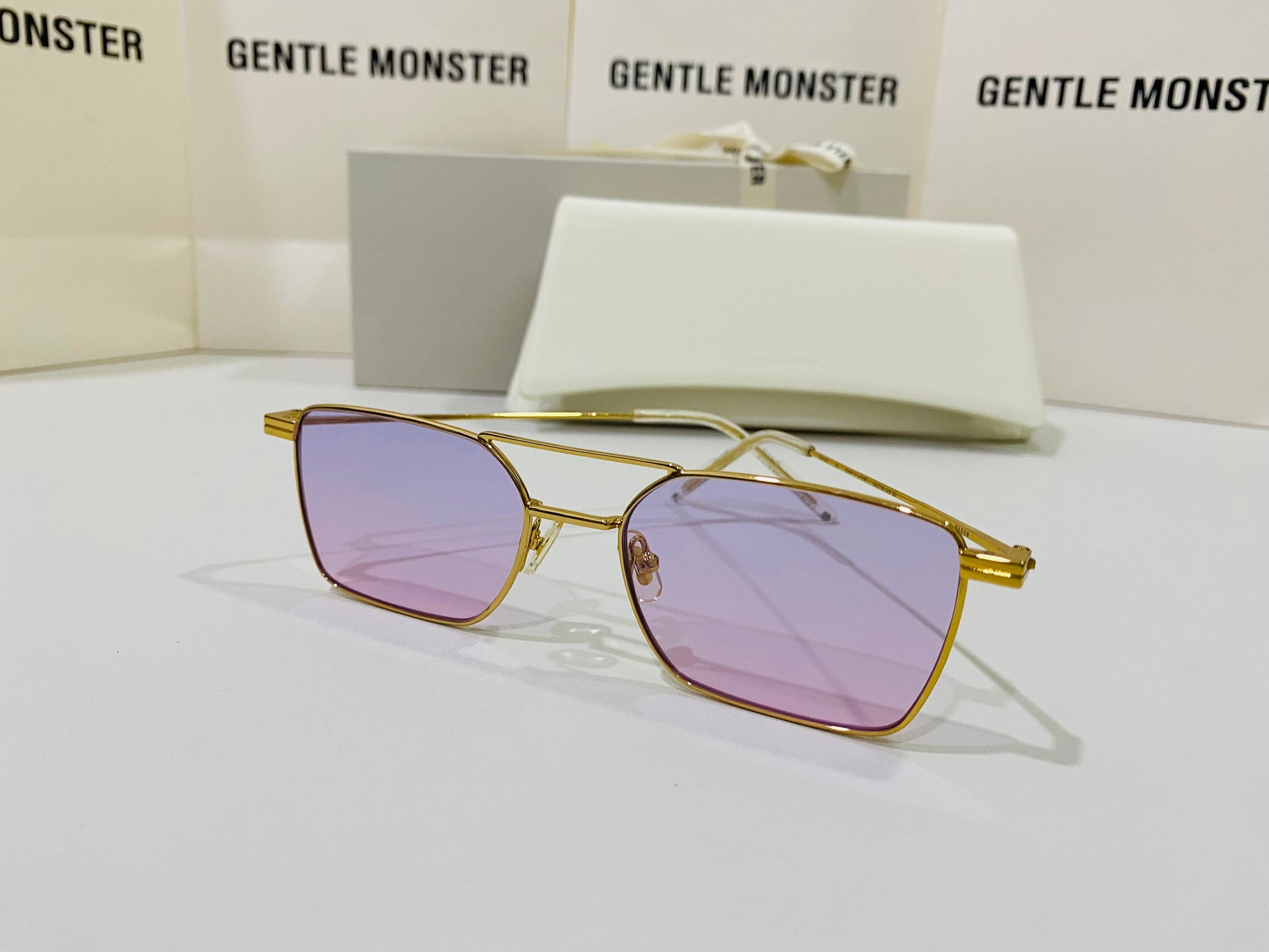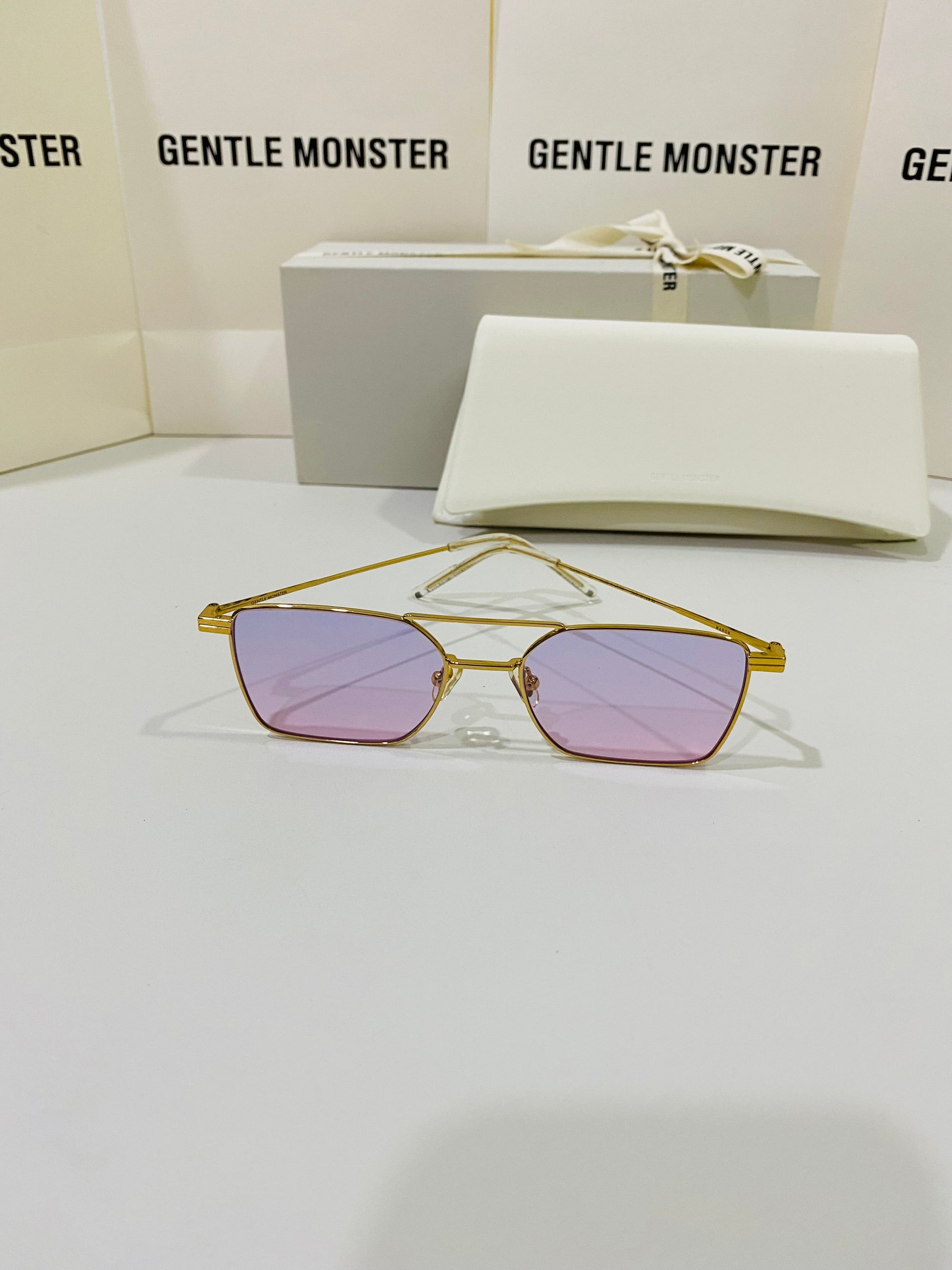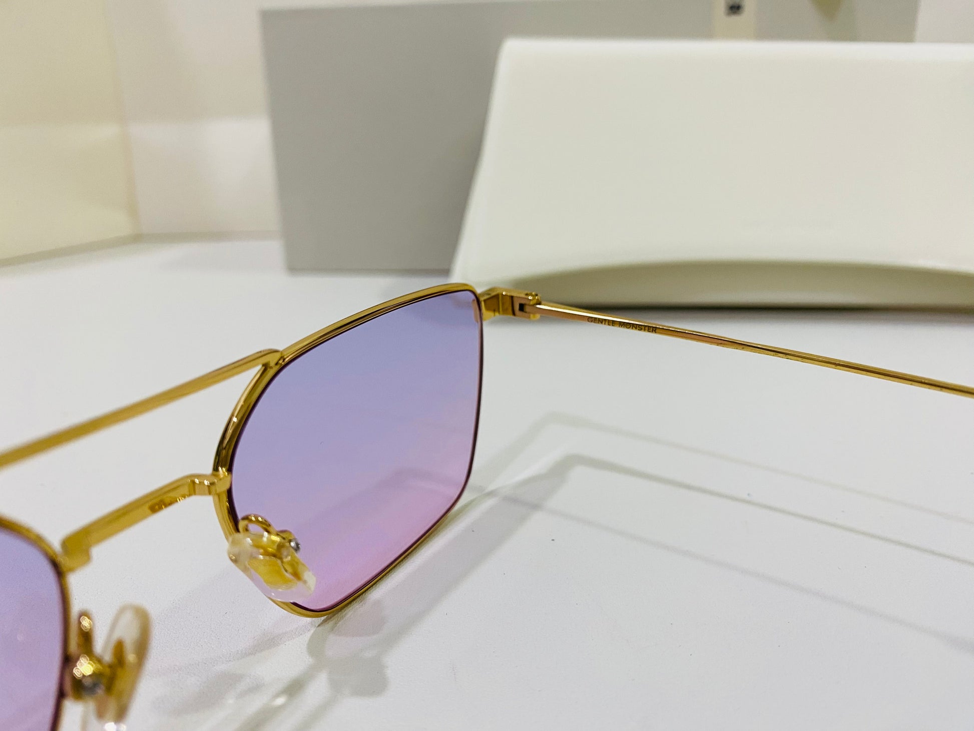 Maron 03 features a compact aviator style frame with 99.9% UV protected purple gradient lenses. This gold metal frame is highlighted by the triangular temple tips presented the 2021 Collection.