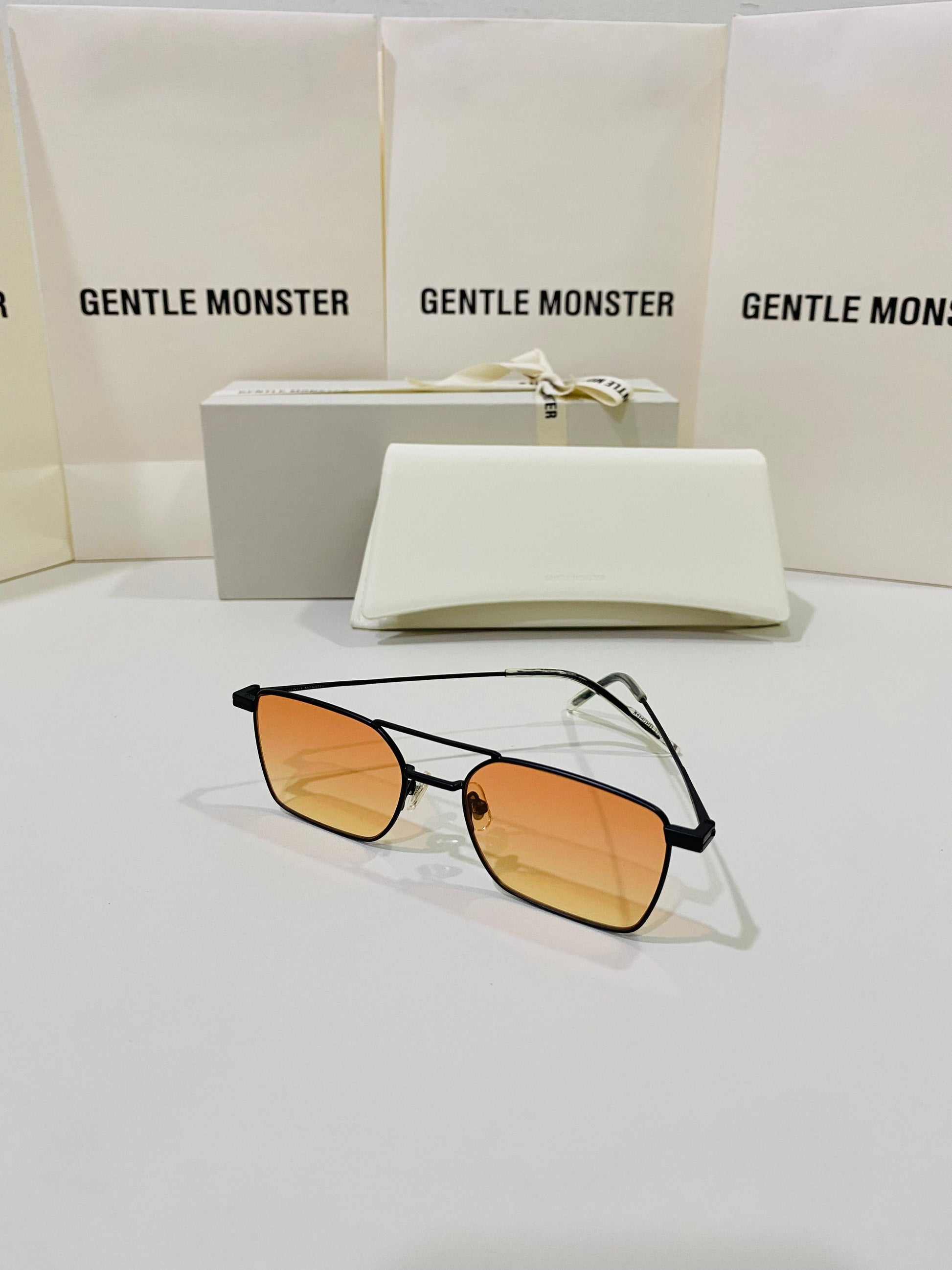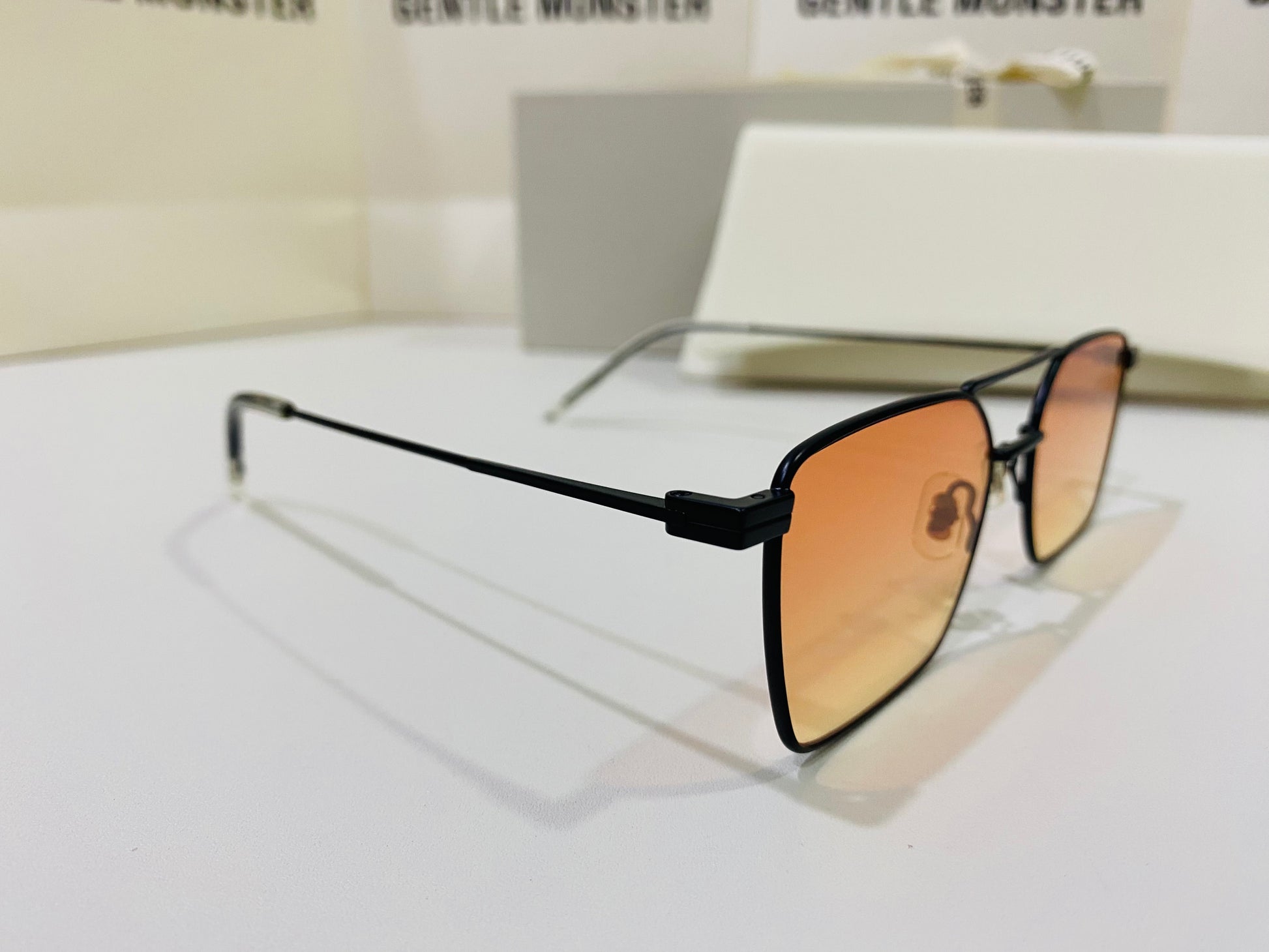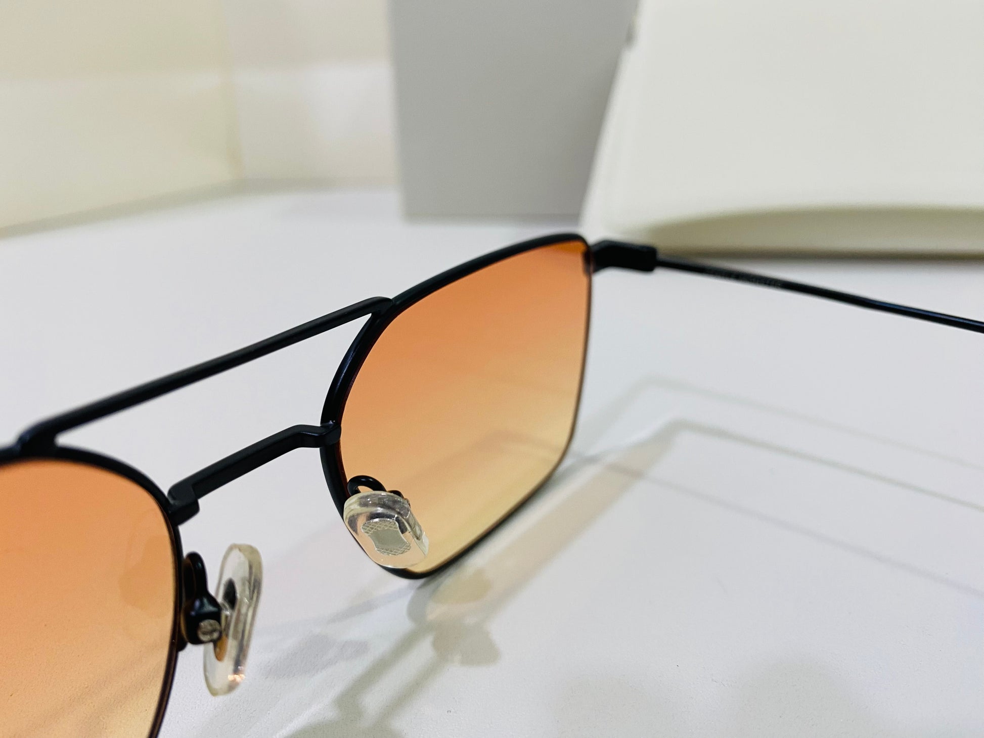 Maron M01 features a compact aviator style frame with 99.9% UV protected orange gradient lenses. This black metal frame is highlighted by the triangular temple tips presented in the 2021 Collection.